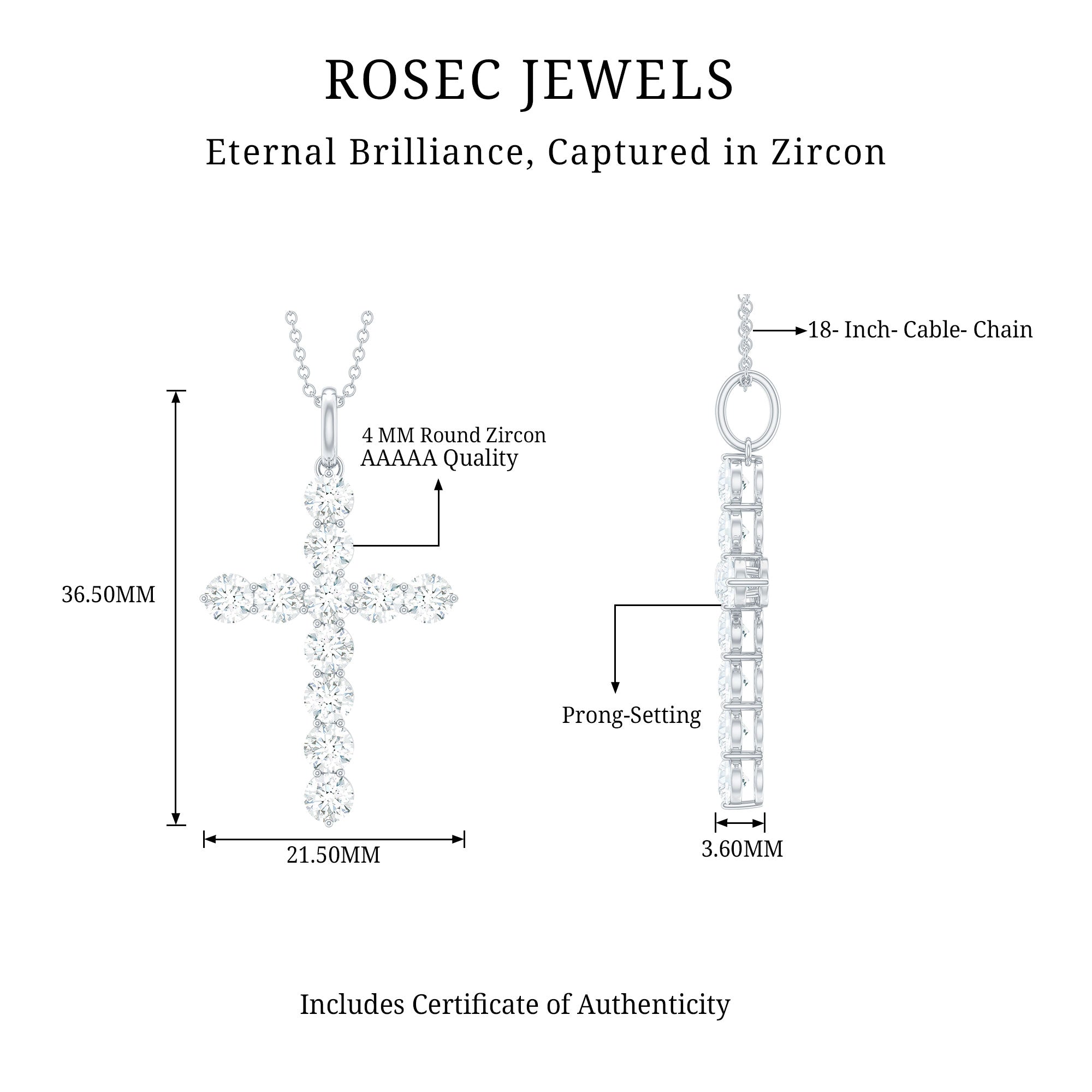 This Cubic Zirconia Cross Pendant represents spirituality, faith, and a divine connection. Made from White Gold Plated Silver, this necklace features round shape cubic zirconia stones set to form a simple cross design. This Christian Necklace merges spiritual meaning with modern style, providing a significant accessory for personal interpretation while exuding understated elegance. Symbolizing hope, faith, and everlasting love, this Catholic Religious Pendant possesses a unique charm and appeal. The simple cross design embodies belief and protects you from evil spirits, embracing a minimalistic style and simplicity. Shine with sophistication as this signature style enhances your look. With a sense of charm and allure, this Silver Cross Necklace perfectly balances prominence and elegance. The AAAAA quality zircon makes a striking statement with its beauty and brilliance, capturing attention with its style.