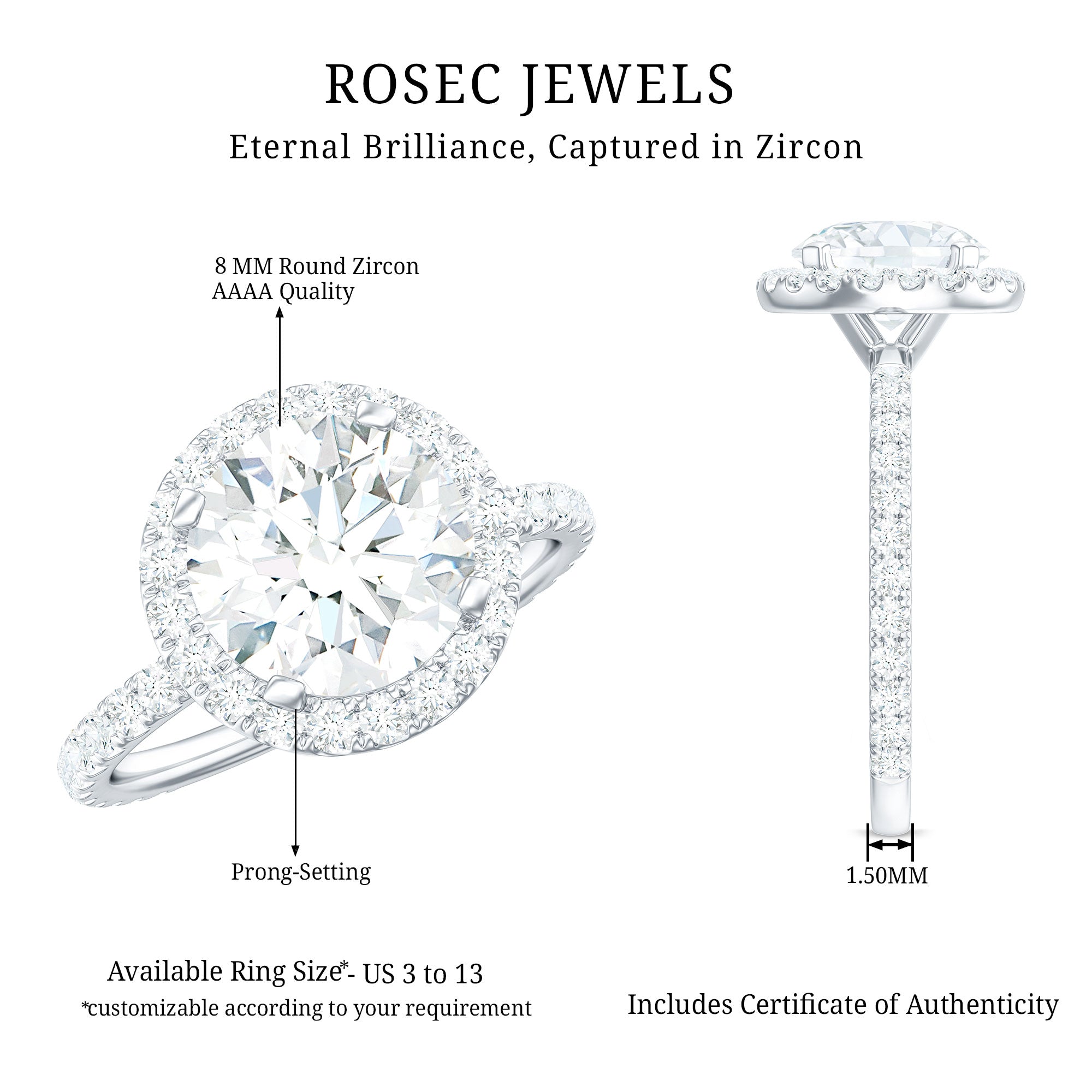 Light up her universe with this dazzling Round Halo Engagement Ring that sparkles like crazy. This absolutely stunning Zircon Engagement Ring will make her fall in love all over again. The Bliss features a gorgeous Round Cut Cubic Zirconia cradled in an absolutely gorgeous halo and side stones.