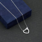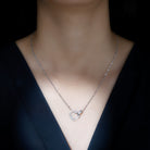Fall in love with the delicate charm and sparkle of this Cubic Zirconia Heart Necklace - a timeless expression of elegance and romance. Crafted in 14K White Gold Plated Silver, this piece features a beautifully sculpted open heart and an interlocked open circle, both are embedded with dainty round cut simulated diamonds pave setting. Together, the motifs create a graceful, flowing design that feels both classic and stylish. This lovely Layered Silver Necklace hangs from a fine cable chain that complements the design without taking attention away from the centerpiece. The chain is adjustable to suit different necklines, making it perfect for daily wear or special occasions. This CZ Diamond Necklace is a fantastic choice for both everyday wear and special events, thanks to its timeless beauty that will be treasured for years to come. Whether you are gifting it to someone special or treating yourself, this Open Heart Necklace is a symbol of love and connection that you can wear close to your heart. It comes beautifully packaged in a velvet pouch, making it ready for gifting on birthdays, anniversaries, or Valentines Day.