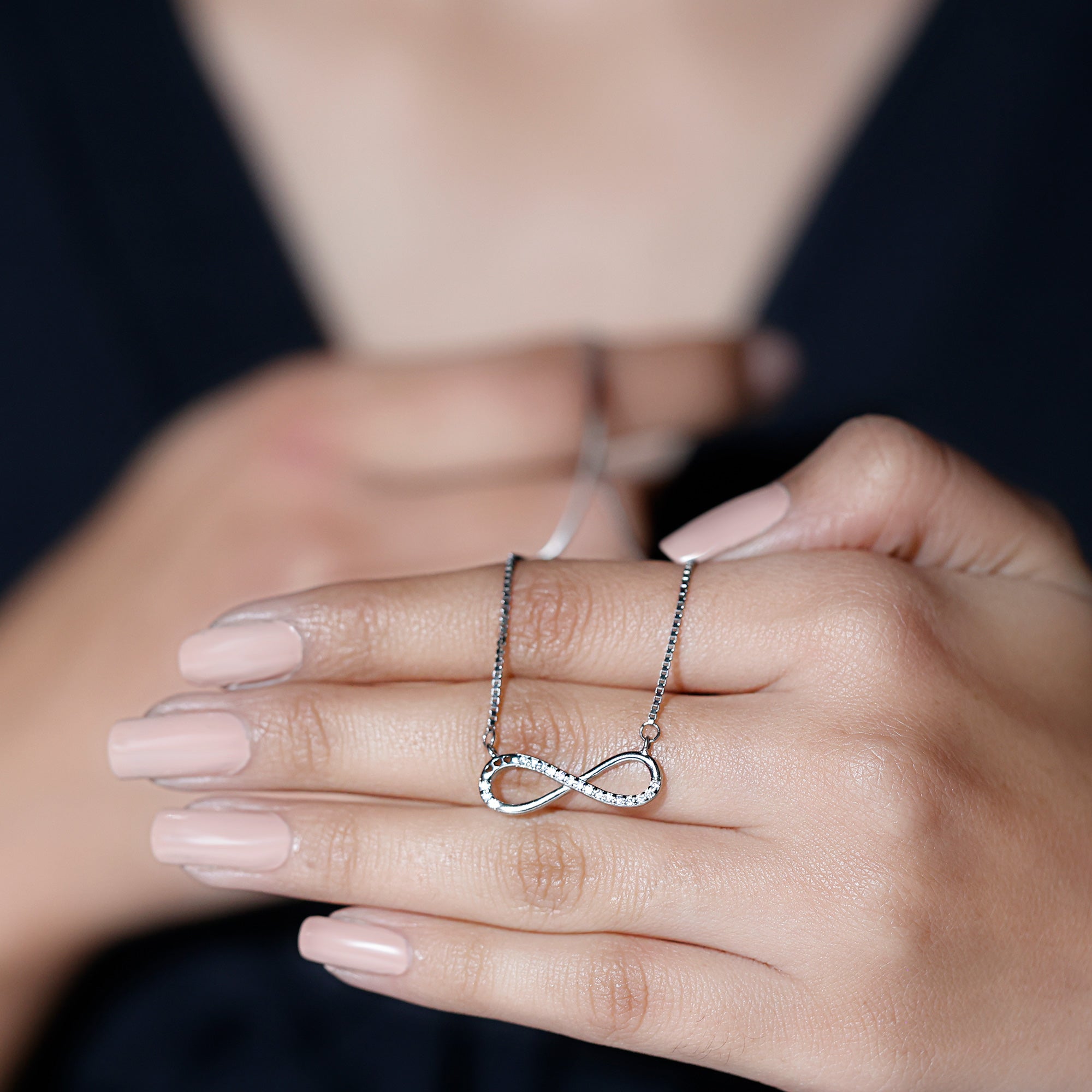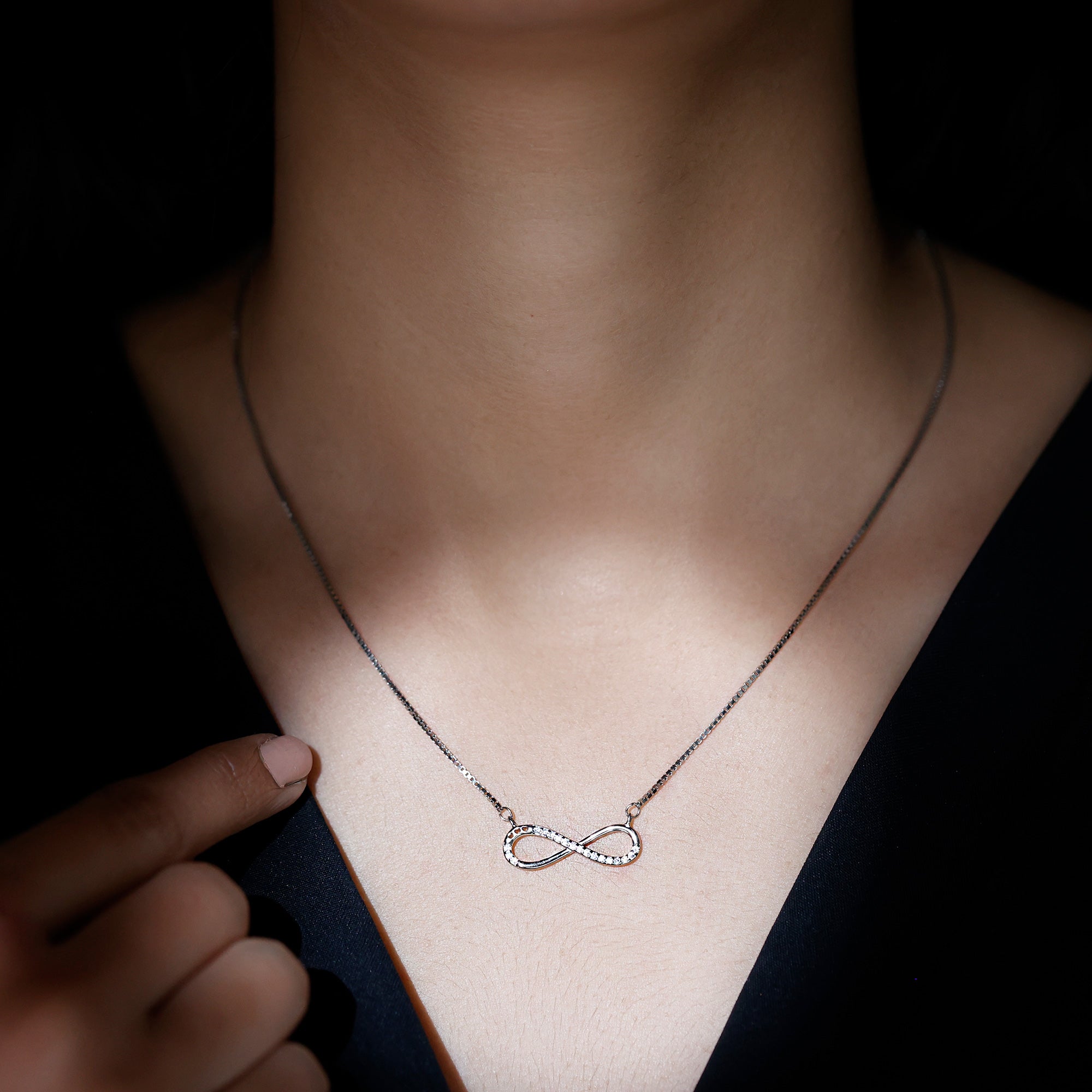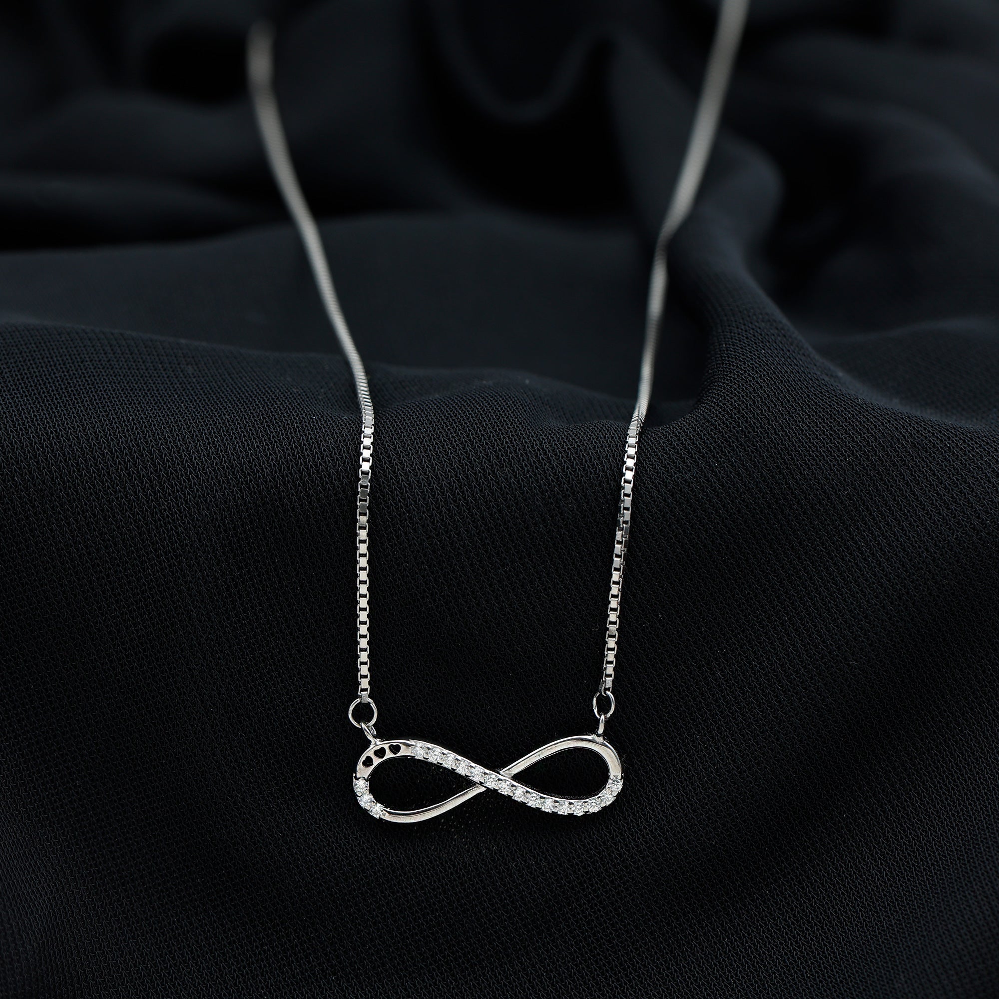Eternal elegance meets everyday style with this sparkling Infinity Necklace, crafted to symbolize love, strength and connection that lasts forever. Made in 925 Sterling Silver, the iconic infinity symbol is lined with shimmering Zircon stones that shimmer beautifully with every step you take. Its modern design brings just the right amount of shine, eye-catching yet effortlessly refined, making it a perfect accessory for both casual outfits and more dressed-up looks. The comfortable chain sits gracefully along the neckline, making this Cubic Zirconia Necklace ideal for daily wear. Presented in a lovely jewelry box, this Love Knot Necklace is ready to gift for valentines day, birthdays, anniversaries, holidays or any moment you want to show someone how much they mean to you. Thoughtful, timeless and easy to wear, this Silver Infinity Necklace is a beautiful reminder of bonds that never fade. Perfect for anyone who loves accessories with a message, it is sure to become a cherished favorite in any jewelry collection.