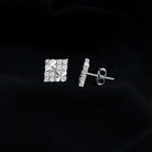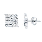 Certified Cubic Zirconia Square Stud Earrings in Silver