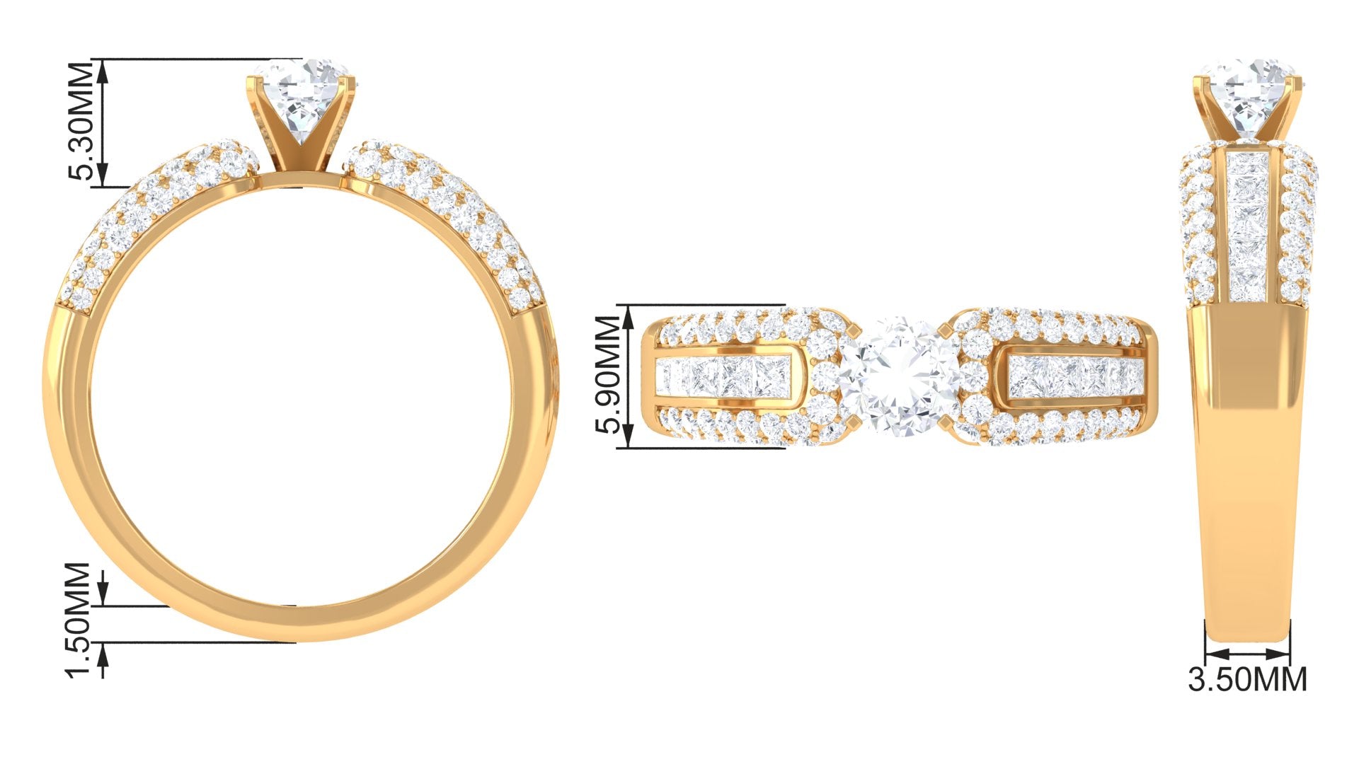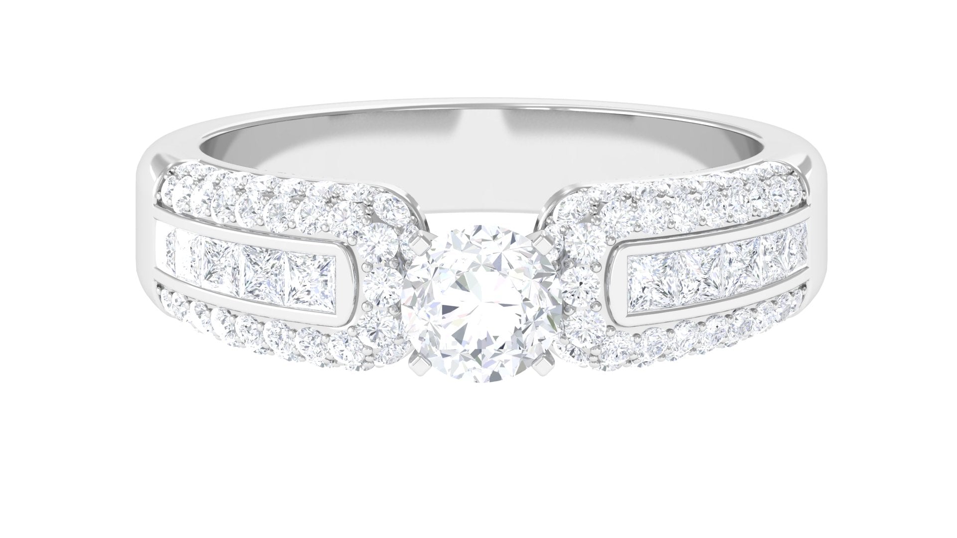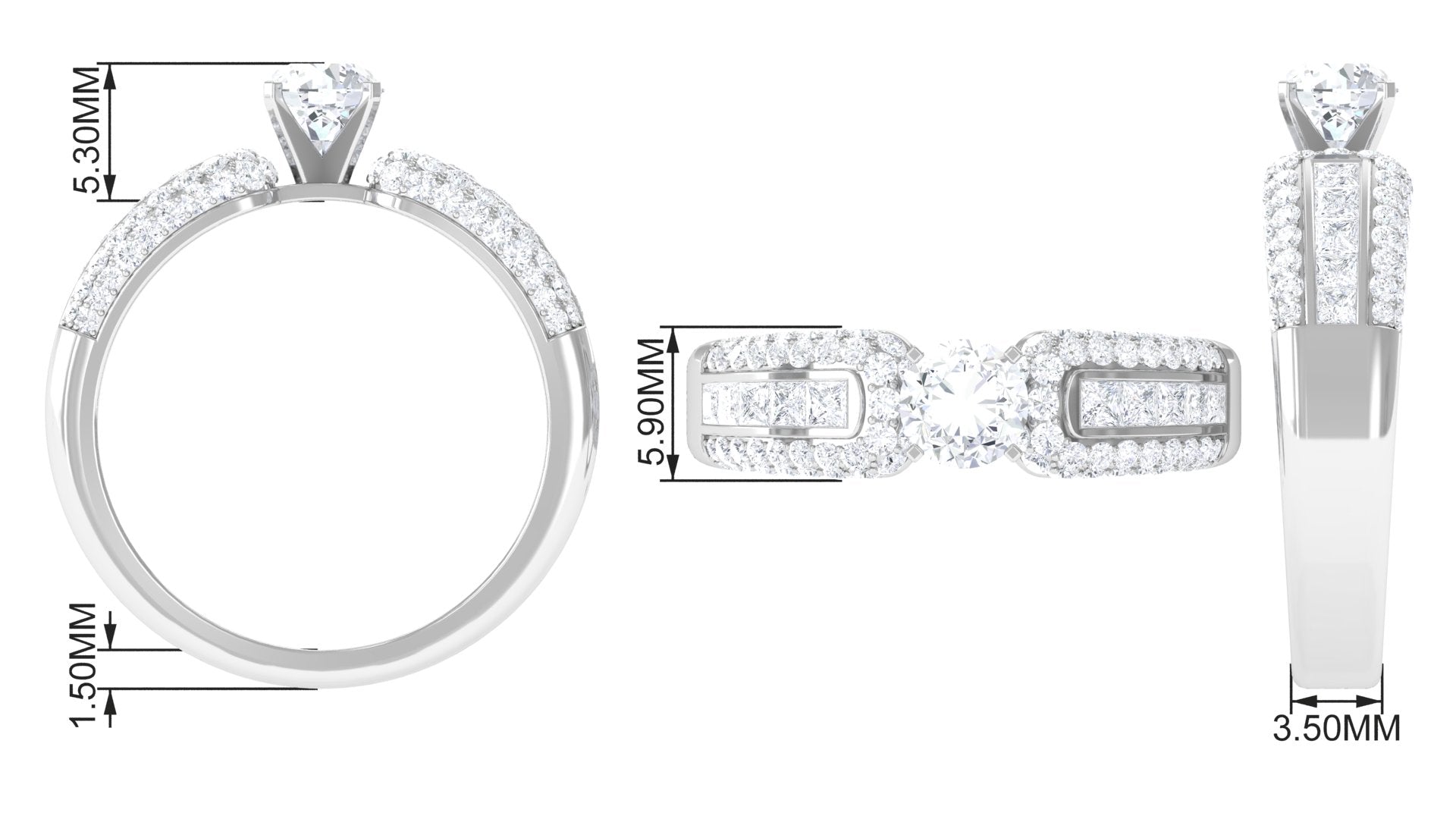 This Statement Engagement Band Ring is embellished with Round Cut Zircon in Prong Setting with Accent. Present this resplendent ring to your beloved.