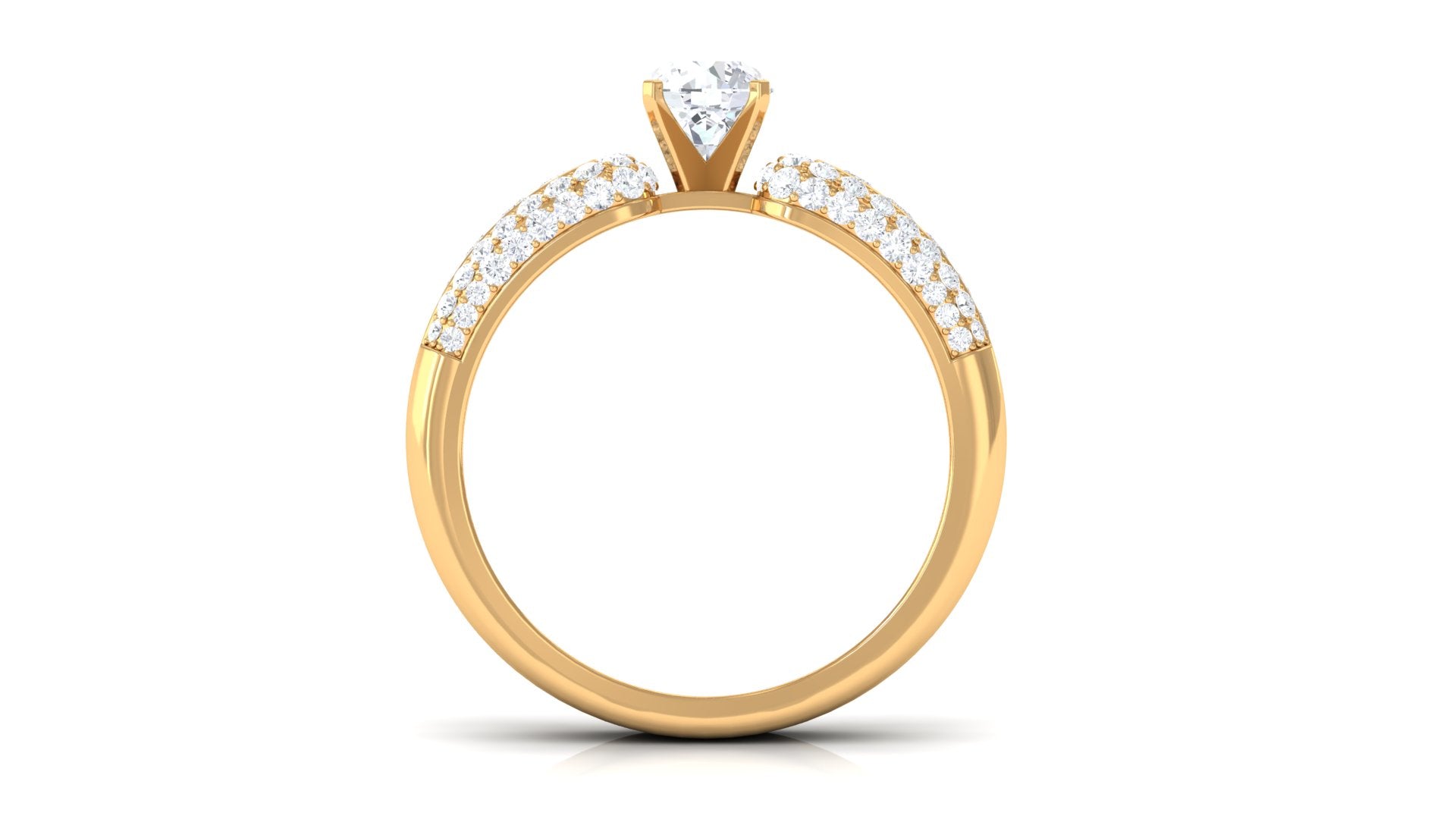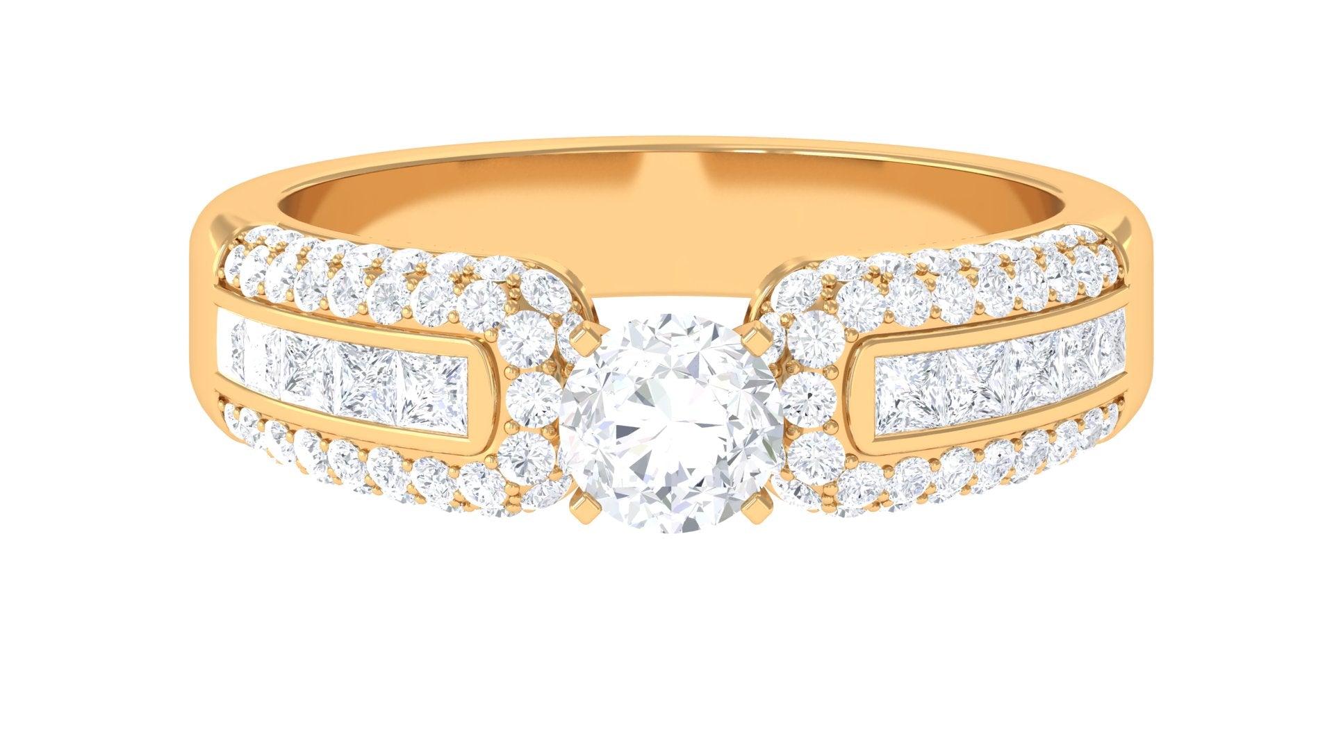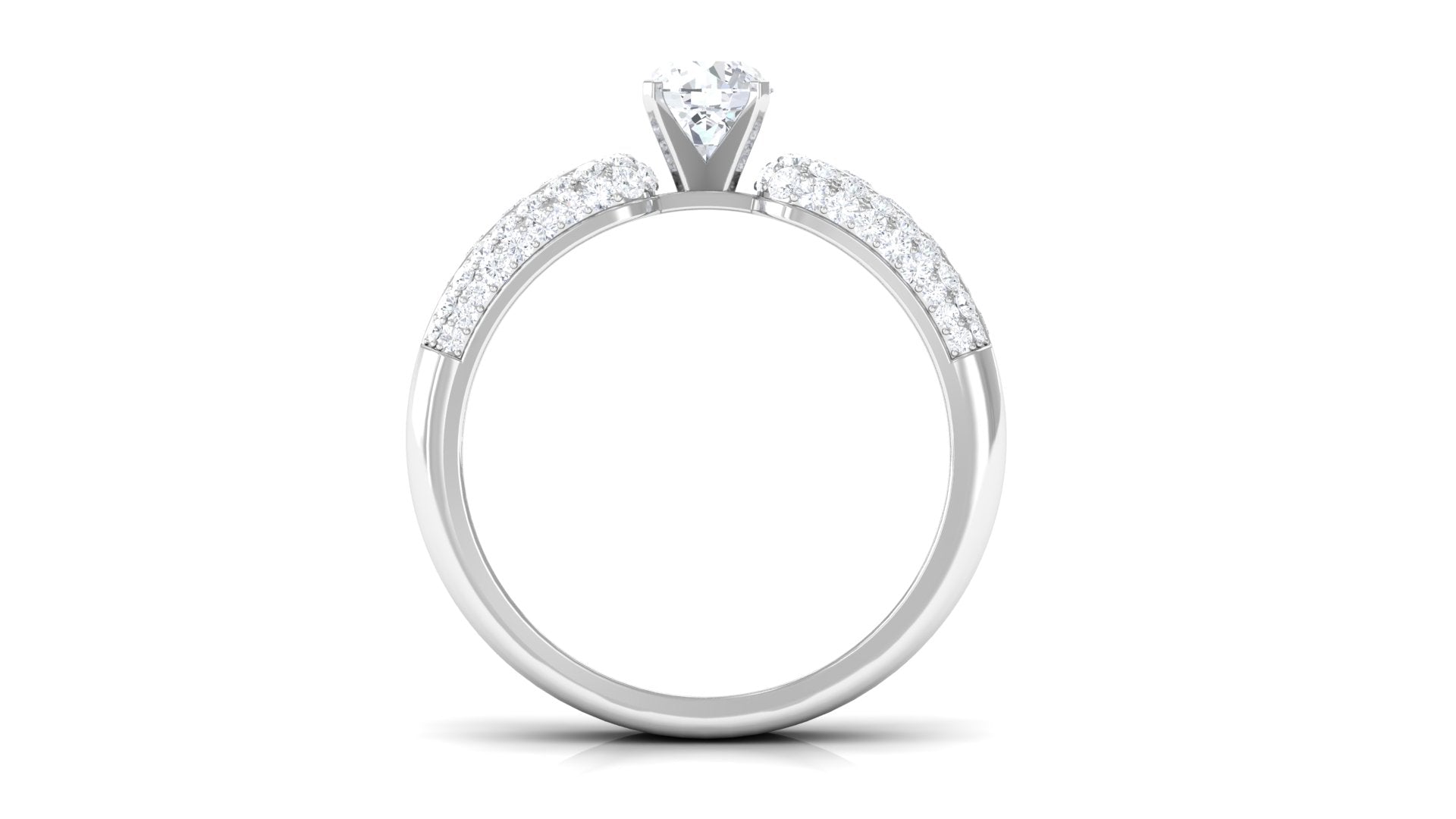 This Statement Engagement Band Ring is embellished with Round Cut Zircon in Prong Setting with Accent. Present this resplendent ring to your beloved.