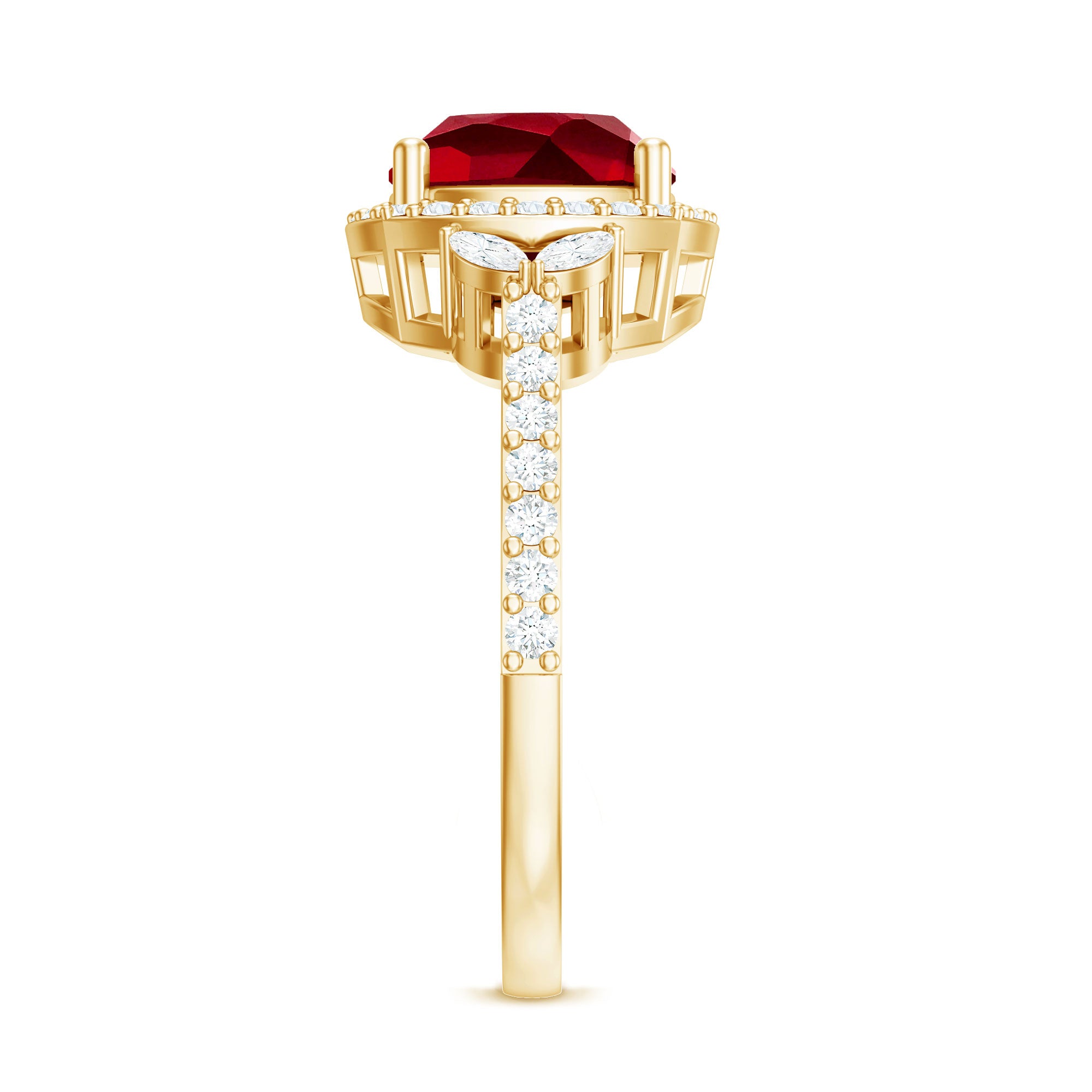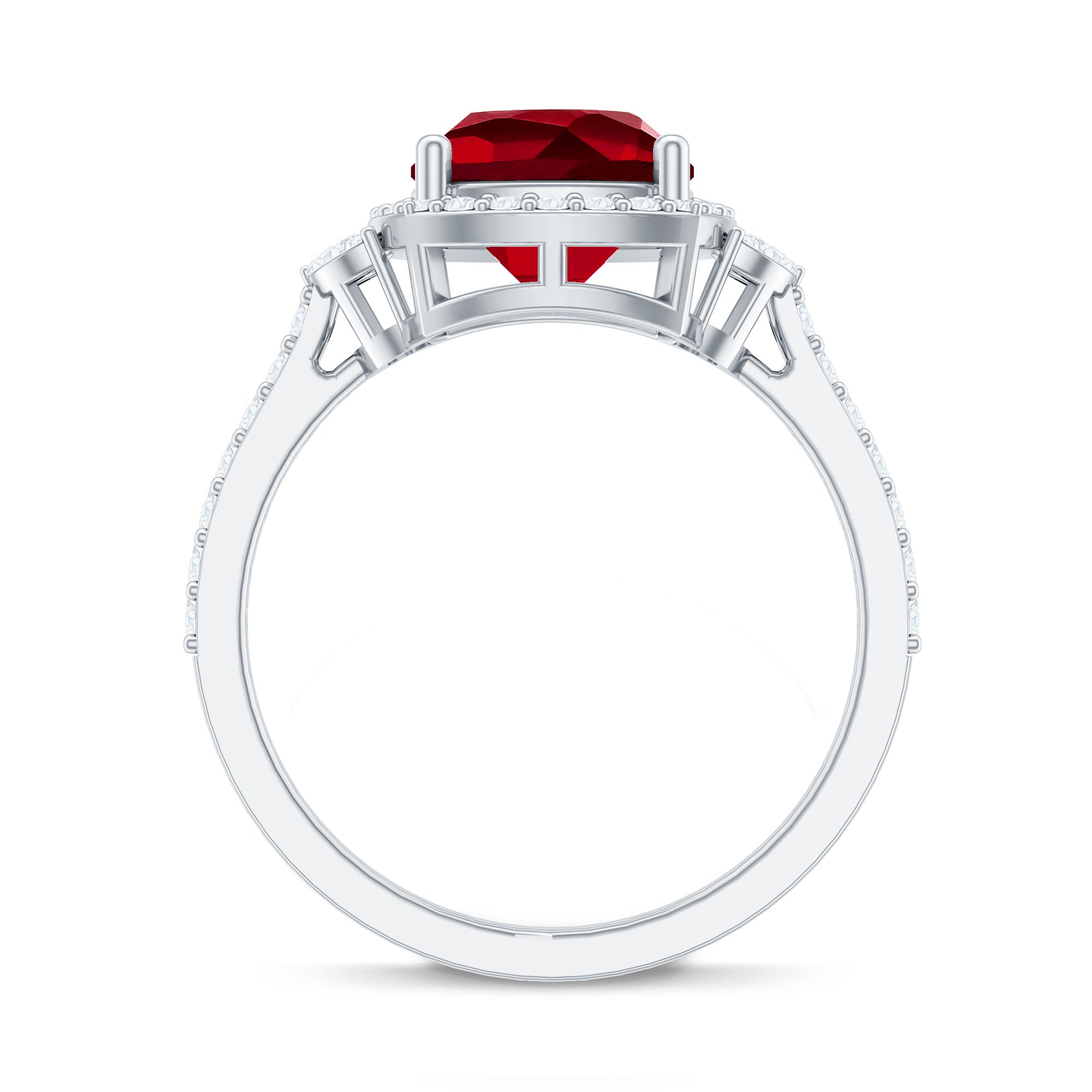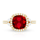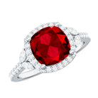 Certified Cushion Cut Lab Ruby and Diamond Halo Engagement Ring