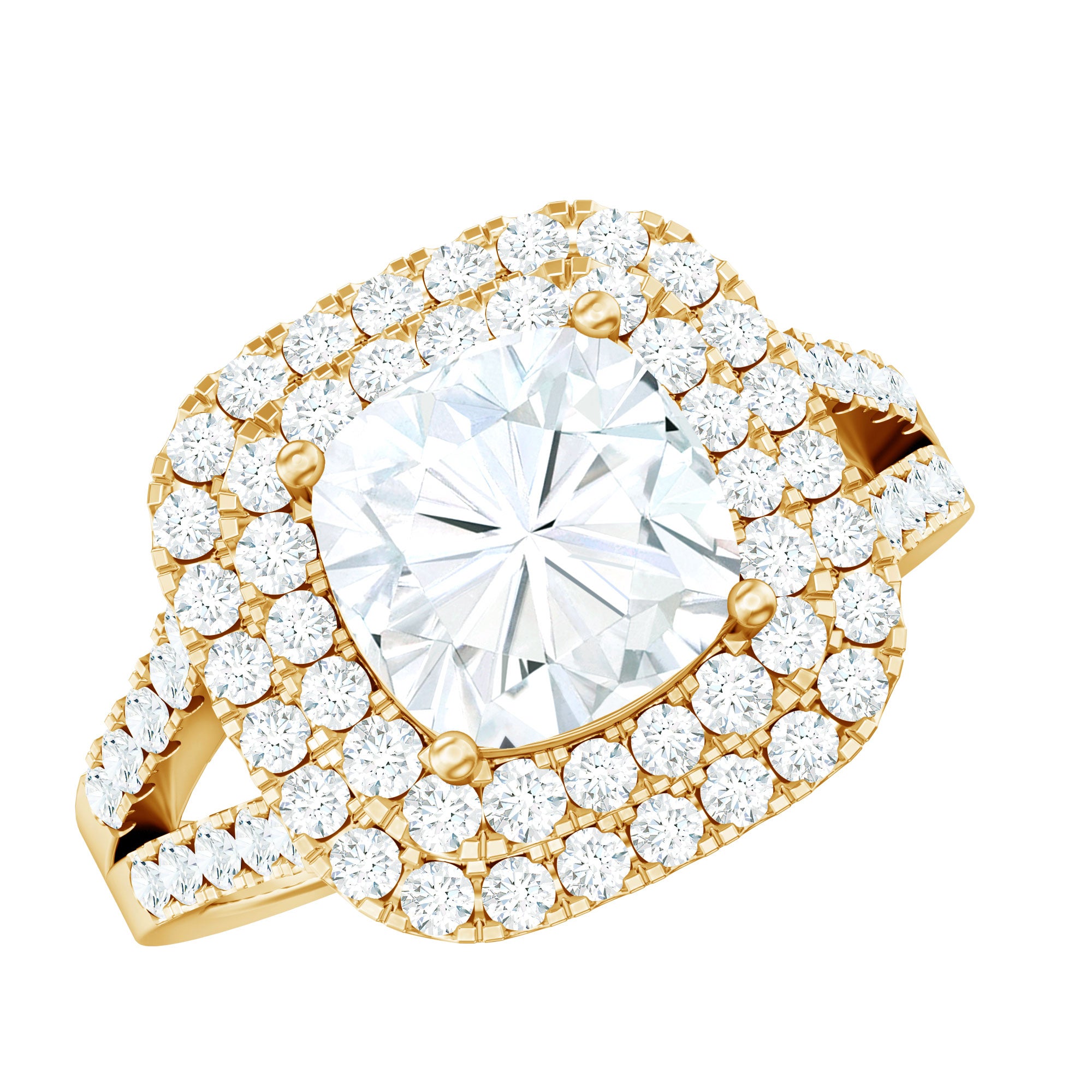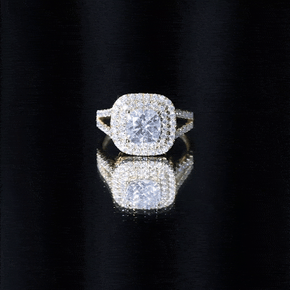 Certified Cushion Cut Moissanite Double Halo Engagement Ring