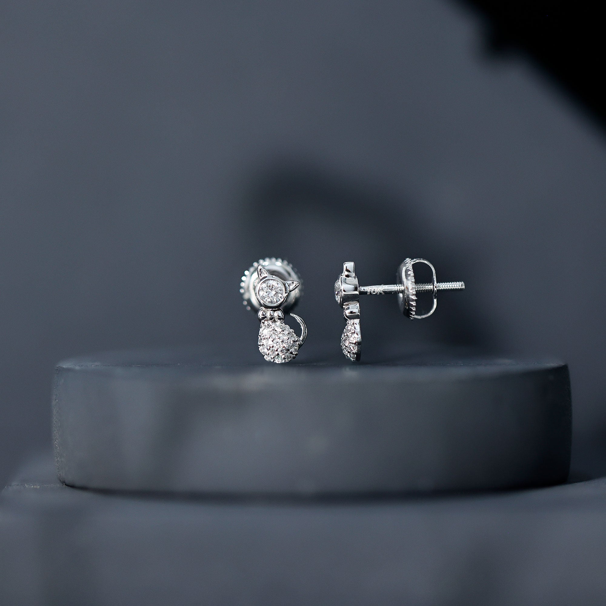 Certified Diamond Cat Kitty Earrings