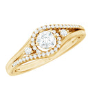 This Diamond Engagement Ring is a way of stealing hearts with its enduring style. Focusing on craftsmanship and versatile classic design, this Timeless Engagement Ring balances tradition with a touch of romance. Simple yet striking design of the timeless sparkle, this Ring is a symbol and extra sparkle that makes it unforgettable. This ring is embellished with Round Shape Diamond in Prong Setting, complemented by a Halo of Diamonds. The uniqueness bypass design, along with a Split Shank, makes this elegant Engagement Ring adds a touch of glamor while staying true to its timeless elegance. With its unmatched sparkle and sophisticated design, this amazing ring is sure to elevate any outfit and add a touch of glamour to your look. The classic with modern minimalist, this Simple Engagement Ring has a light return, with utmost brilliance and fire. A minimalist and excellent way to showcase your promise or mark your milestone. It is also an exquisite and distinctive piece that offers a fresh twist on the classic design.