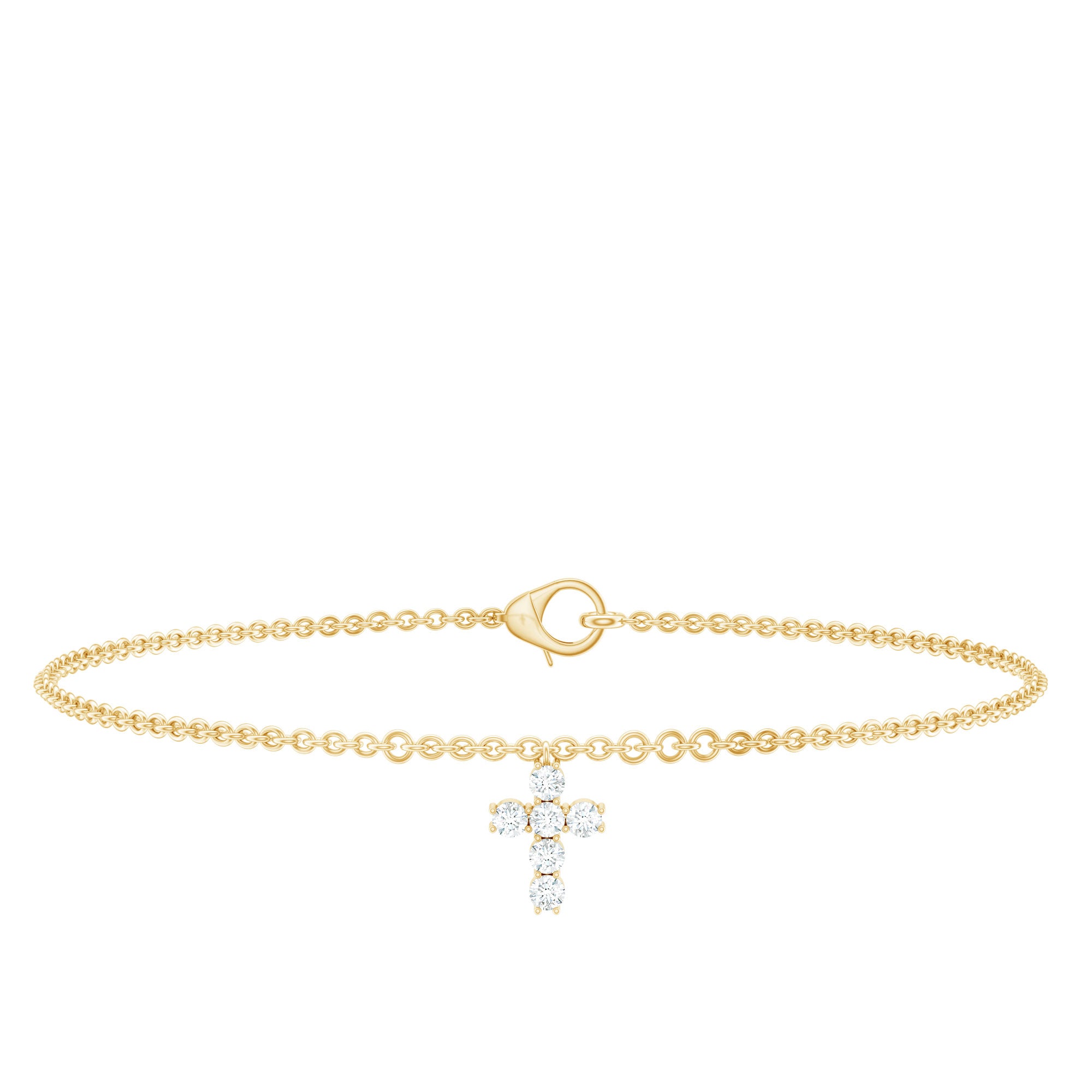 Embrace the timeless symbol of faith, spirituality, and devotion with this exquisite Diamond Cross Bracelet, which is inspired by the sacred cross. With its unique design and meticulous attention to detail, this Bracelet offers luxury and elegance. Exuding sophistication and grace, this Cross Bracelet is adorned with a Round brilliant cut Diamond on the cross. Its design is crafted to honor the significance of the religious symbol and serve as a beautiful reminder of ones beliefs and values. This spiritual accessory has a perfect Cross charm on the Chain Bracelet that blends tradition with modernity. As a timeless piece of jewelry, it is a minimalist accessory that represents themes and religion and is perfect for any special event. Its minimalist design highlights a striking cross charm which resonates with refined elegance. Whether worn solo for a subtle statement or layered with other pieces for a bolder look, this Cross Charm Bracelet is classic simplicity through every moment, reminding you of the spiritual significance it embodies.