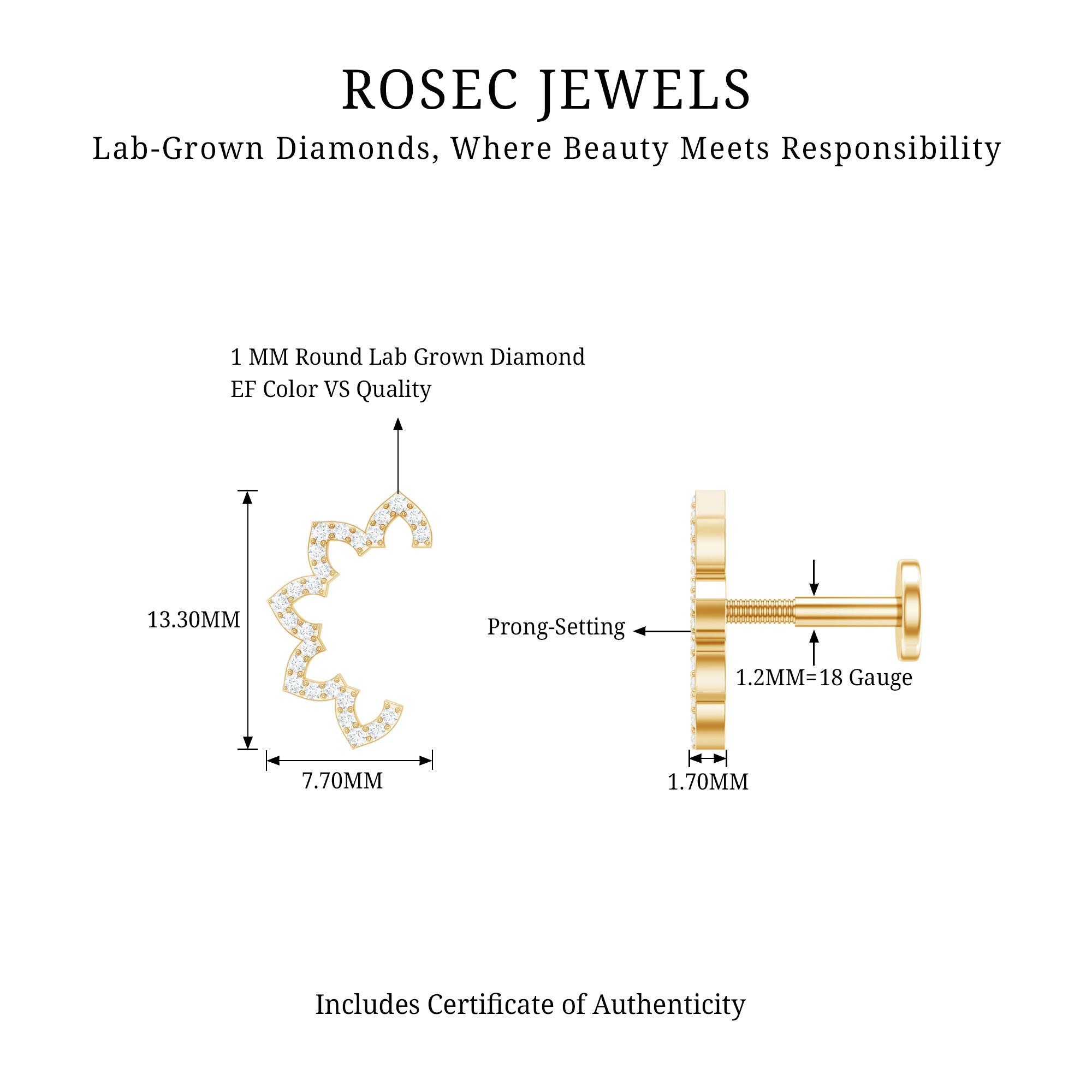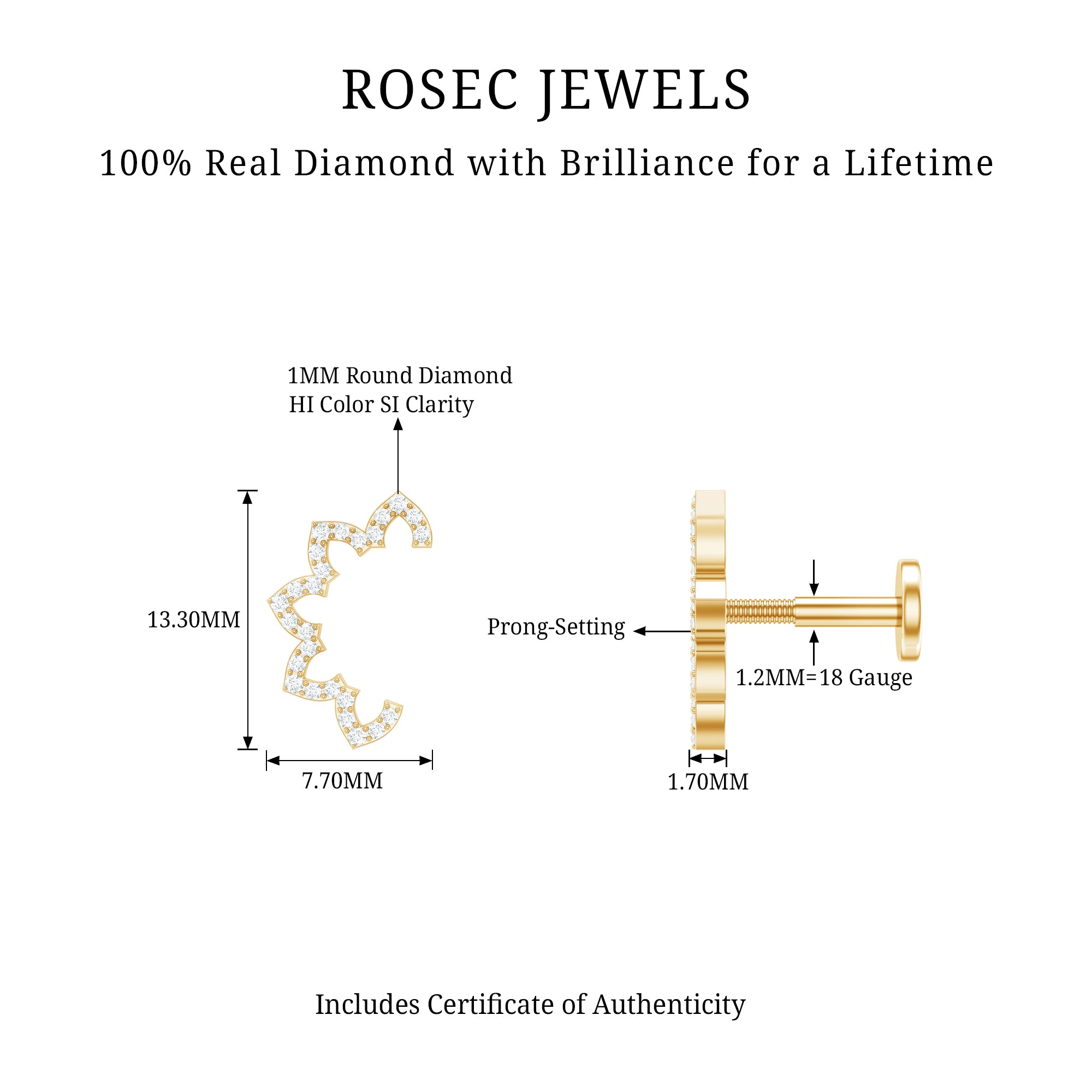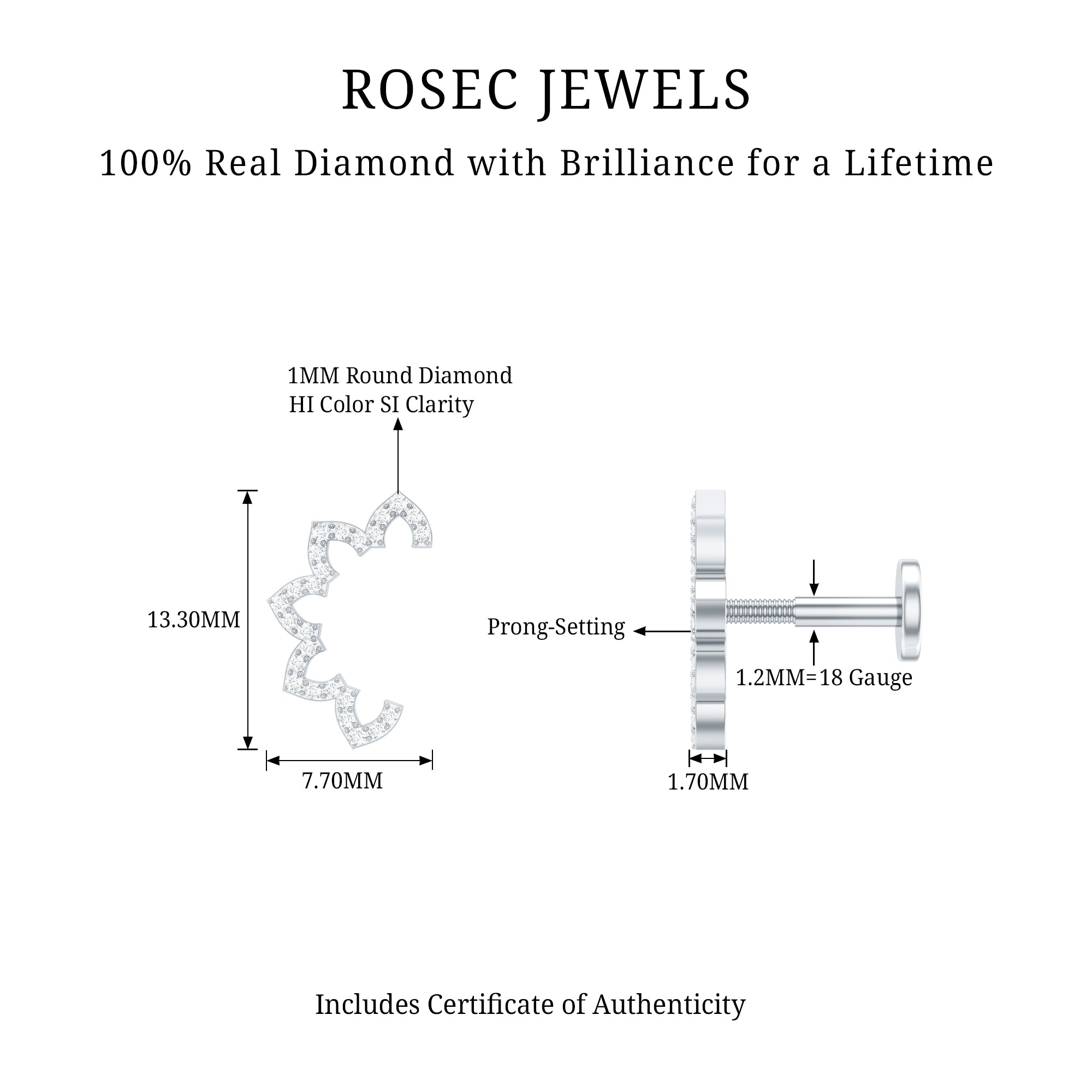 Certified Diamond Curved Floral Earring for Cartilage Piercing