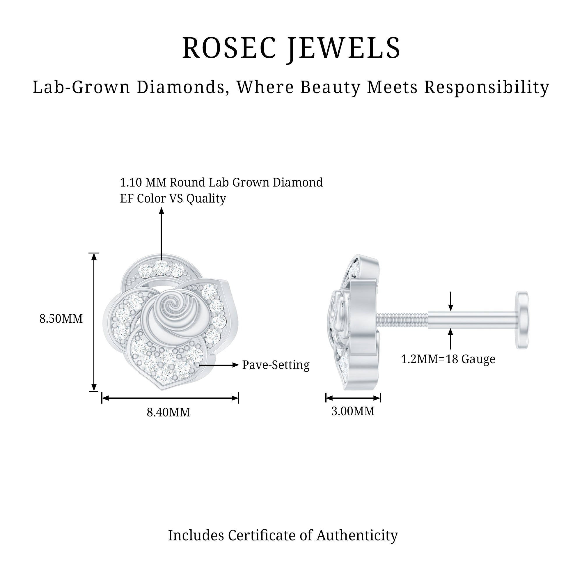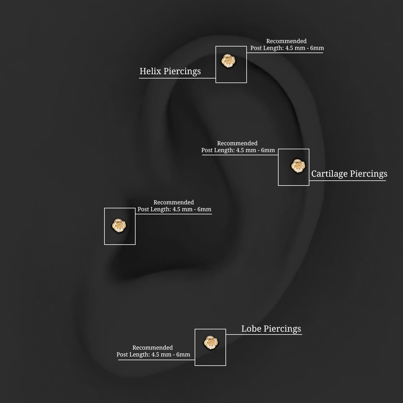 Are you bored of wearing your studs with your attire every day? Then, it’s time to jazz it up! Check out our Diamond Floral Earring embellished with petite Round Diamonds set in Pave Setting on a lotus flower shaped design. Style this Lotus Earring on your Helix, Cartilage, Conch, or Upper Lobe Piercing. Perfect for stacking with your other favorite pieces of jewelry. Crafted with precision using Hallmarked Metal, this Diamond Earring features a flat back closure for maximum comfort and security. Count on this Floral Earring, to infuse oodles of style and peppiness into whatever you wear for your next brunch or barbecue party.