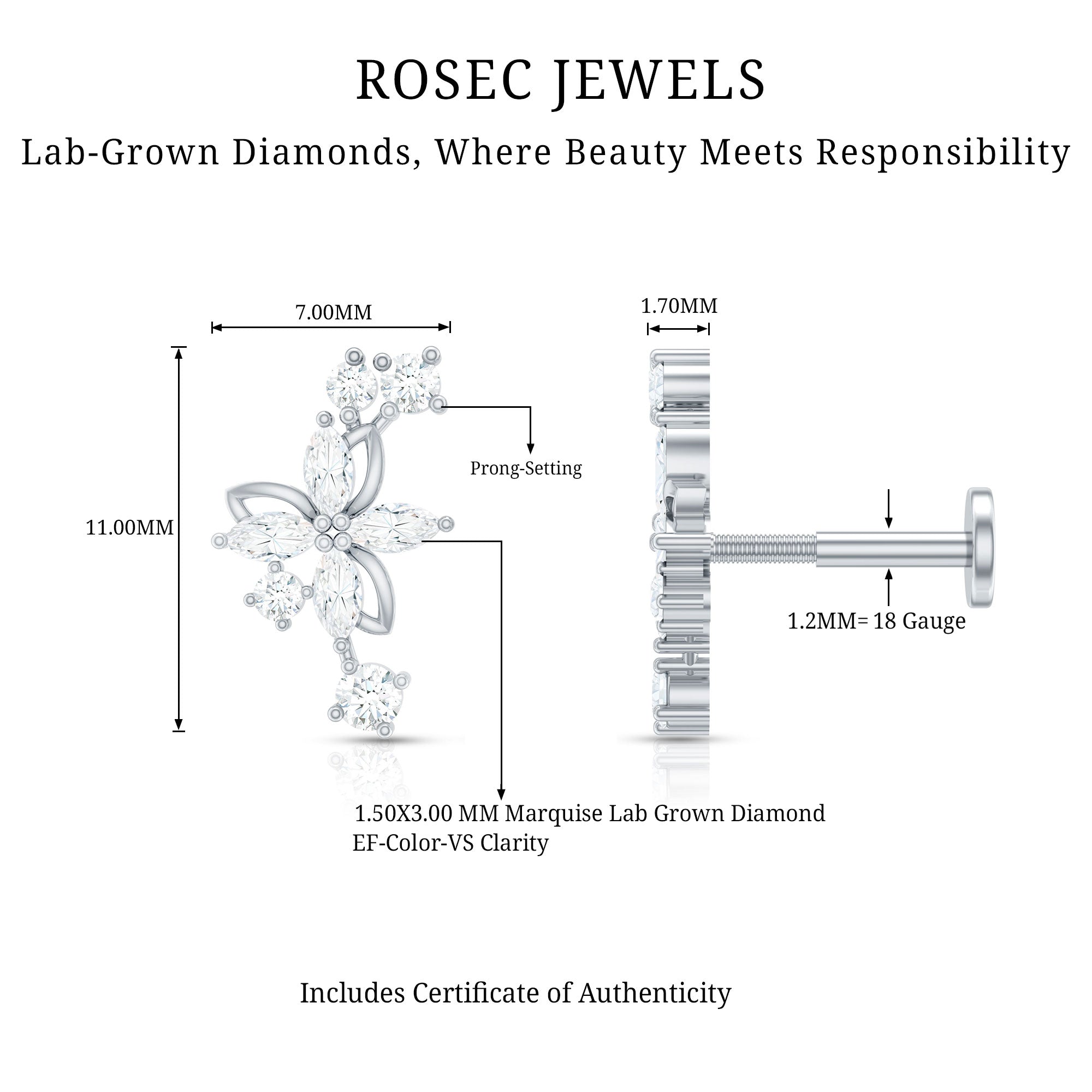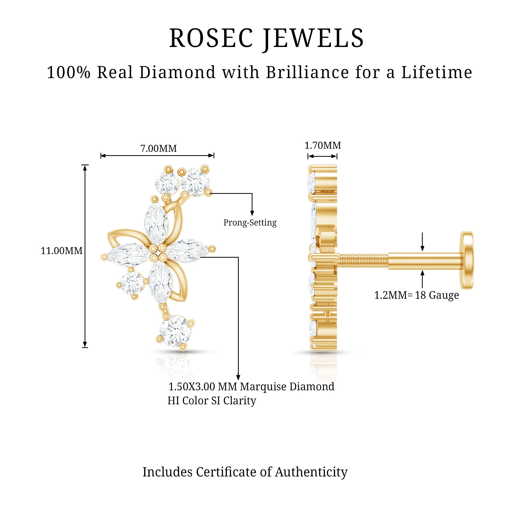 - Adorned with shimmering marquise and round diamonds secured by prong set that is encrusted as flower petals, this earring exudes timeless charm.