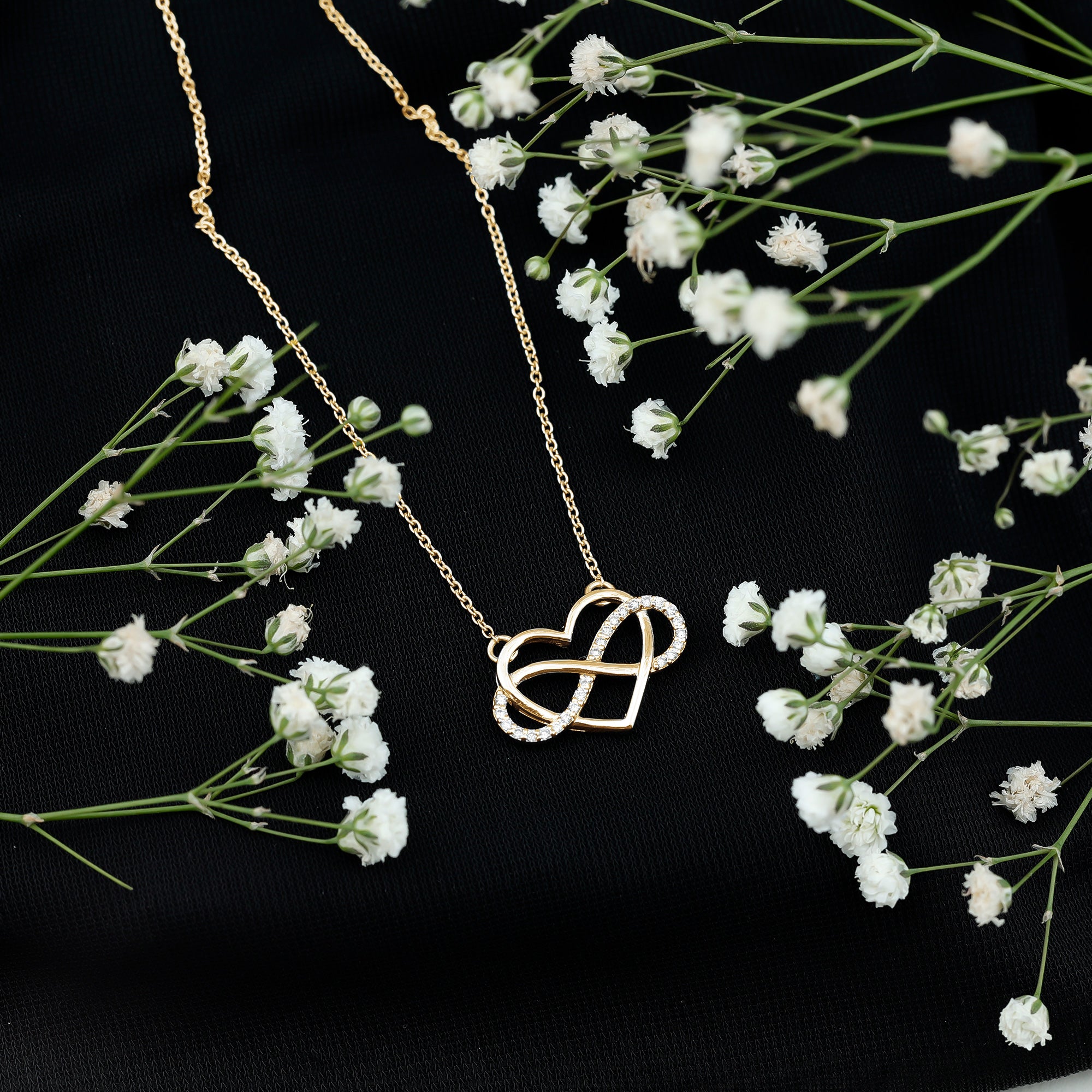 As proof of your everlasting love, this Diamond Necklace shimmers with meaning. This pretty Infinity Heart Necklace is a lovely way to show her how much you treasure her. Attached to a chain, this Necklace is adorned with a heart that is interwoven in the middle to form an infinity symbol, which is then decorated with Round brilliant cut Diamond. As a symbol of endless, enduring love, memories, and devotion, this Necklace shows that it only beats for you. This Infinity Knot Necklace showcases that love is forever with the unbreakable bond. Its endless loop is the timeless nature of true love, which is elegant and stylish. The beautiful entwines of Heart and Infinity is a wearable symbol of eternity and connection. It is also a unique blend of sophistication and sentimentality. Its minimal yet intricate design ensures that its craftsmanship is versatile and timeless. Standing in the test of time, this Infinity Symbol Necklace steals the spotlight as time transcends. AlSo, it is a cherished emotional artifact.