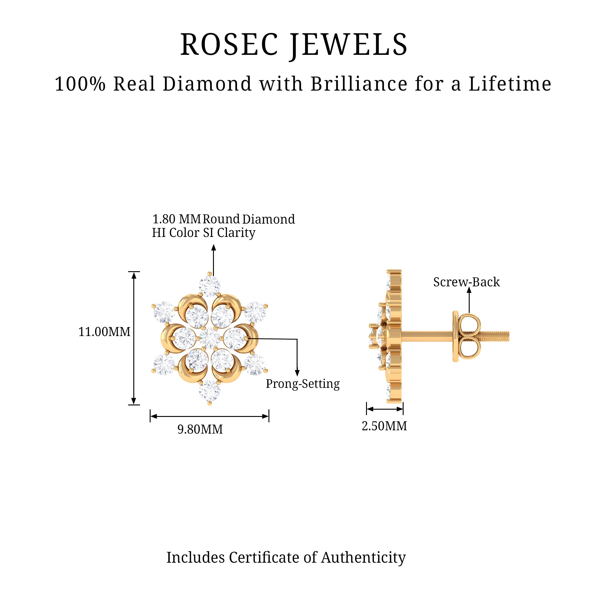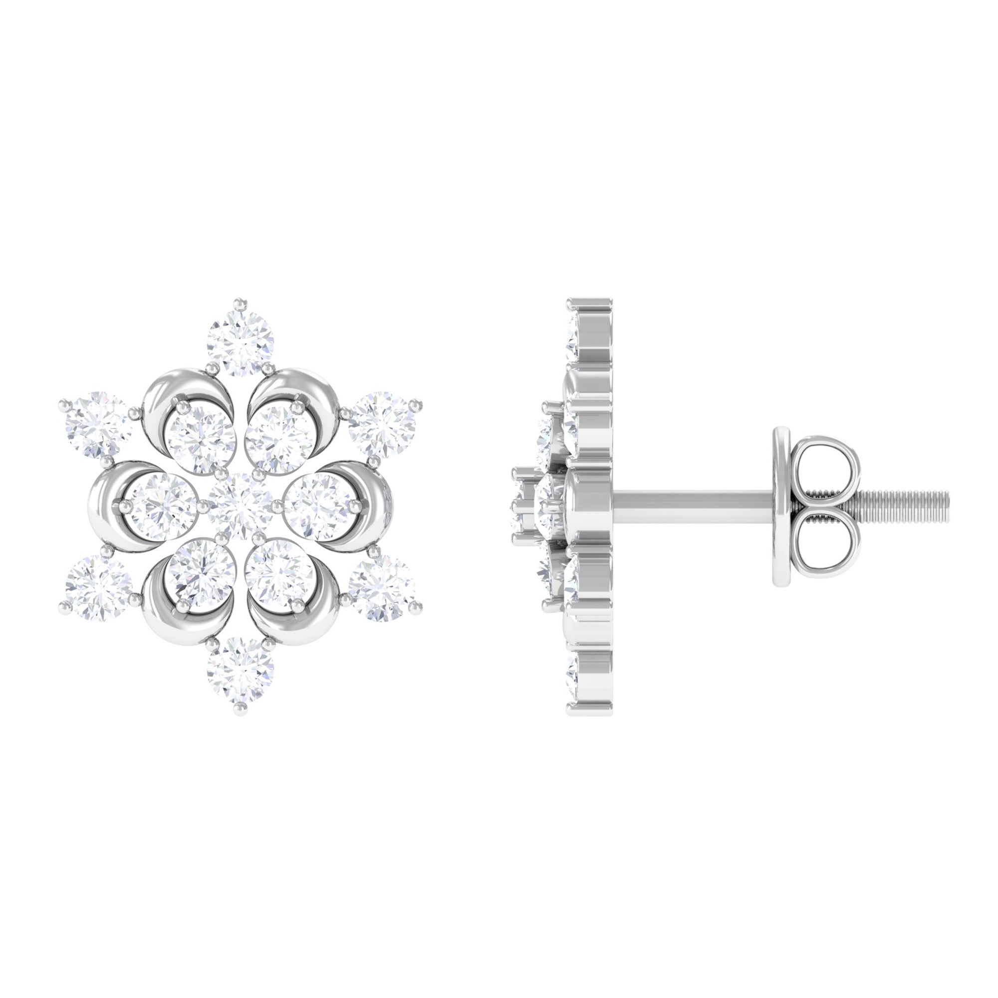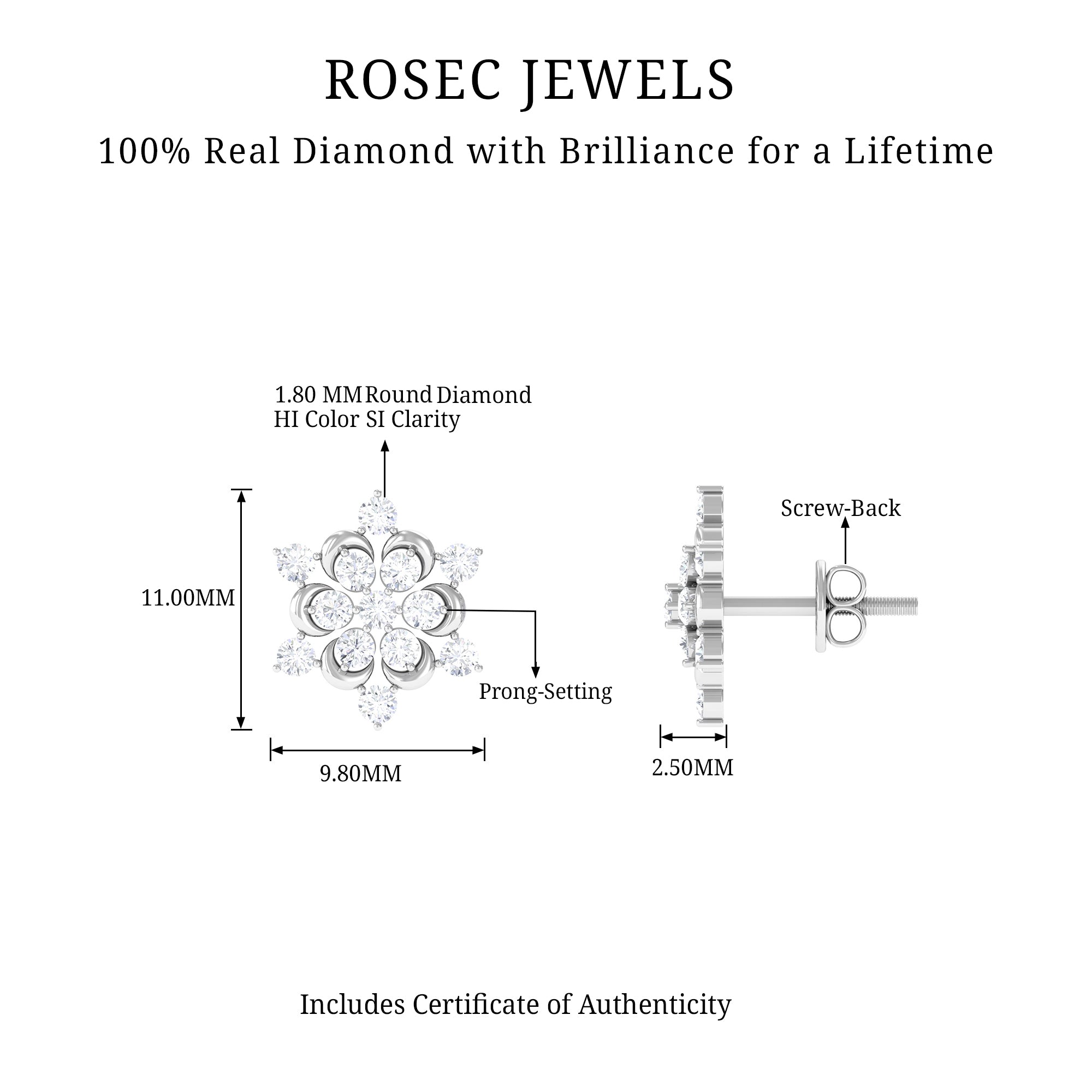 These beautiful Diamond Stud Earrings show the glamorous rendition of nature-inspired theme. Simple yet stunning, these Snowflake Earrings evoke the beauty and wonder of winter and are embellished with Round Shape Diamonds, which are scattered on the design, making the unique Snowflake. Inspired by the delicate and intricate details, these Diamond Snowflake Earrings add elegance and sophitication. As a unique way to commemorate the season and the crisp appeal of winter, these Earrings serve as a reminder of the beauty of individuality and the value of accepting ones own identity. They are secured with Screw back closure that would keep them intact all day long. As a fresh beginning, these Snowflake Stud Earrings are an ideal present for the one who appreciates the beauty of winter or has a connection to the snow. These snowflake-themed jewelry, have a delicate design that provides a magical and elegant touch that embraces the season and makes your look glow. Mystical and mesmerizing, these Snowflake Christmas Earrings let you mimic its beauty and lightness falling from the sky.