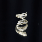 Step into the spotlight with this Statement Diamond Ring for Women - a design that effortlessly blends bold structure with artistic elegance. This Cocktail Ring is not just a piece of jewelry, it is a conversation starter wrapped around your finger. Crafted in a unique split-wrap style, this beauty features round brilliant cut diamonds that instantly catch the light and add a dazzling shine to the ring. The textured finish adds a modern and artistic touch to the overall design, making it look rich and detailed from every angle. What makes this Diamond Wrap Ring truly special is how the multiple strips are connected to one band. So, while it looks like stacked rings, it is actually one piece that is easy to wear and super stylish. This Diamond Cuff Ring is the perfect mix of sparkle and texture. Whether you are heading to a party or just love making a statement with your jewelry, it is sure to grab attention and compliments with every move.