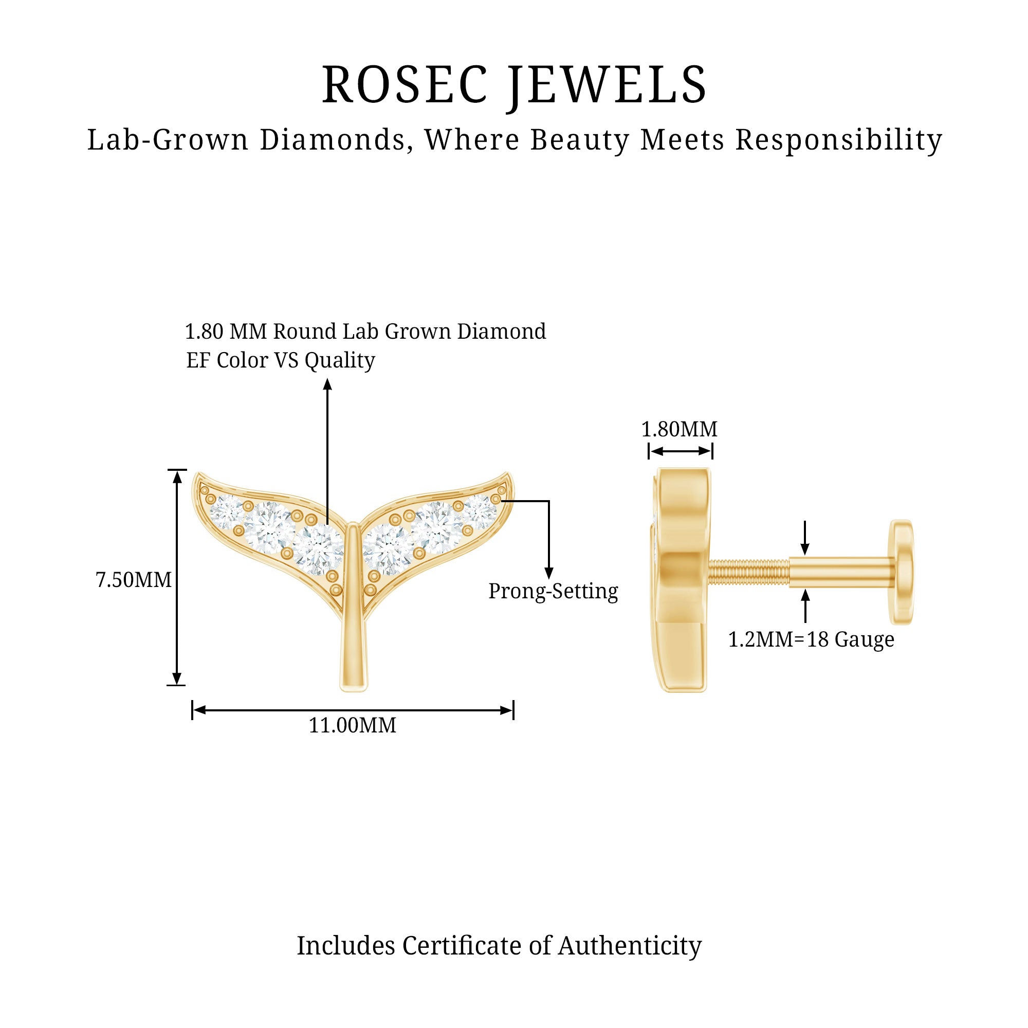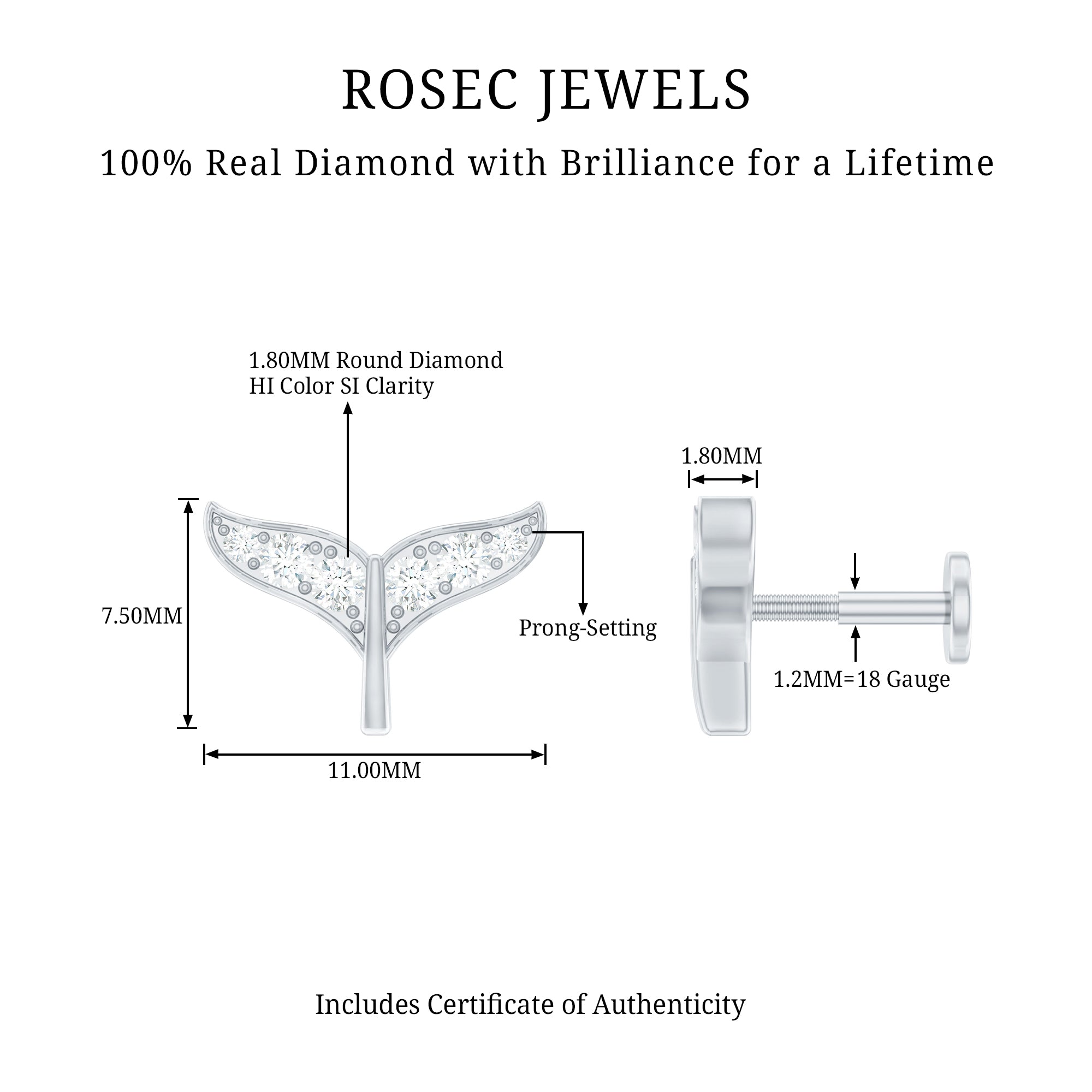 Certified Diamond Whale Tail Earring for Helix Piercing