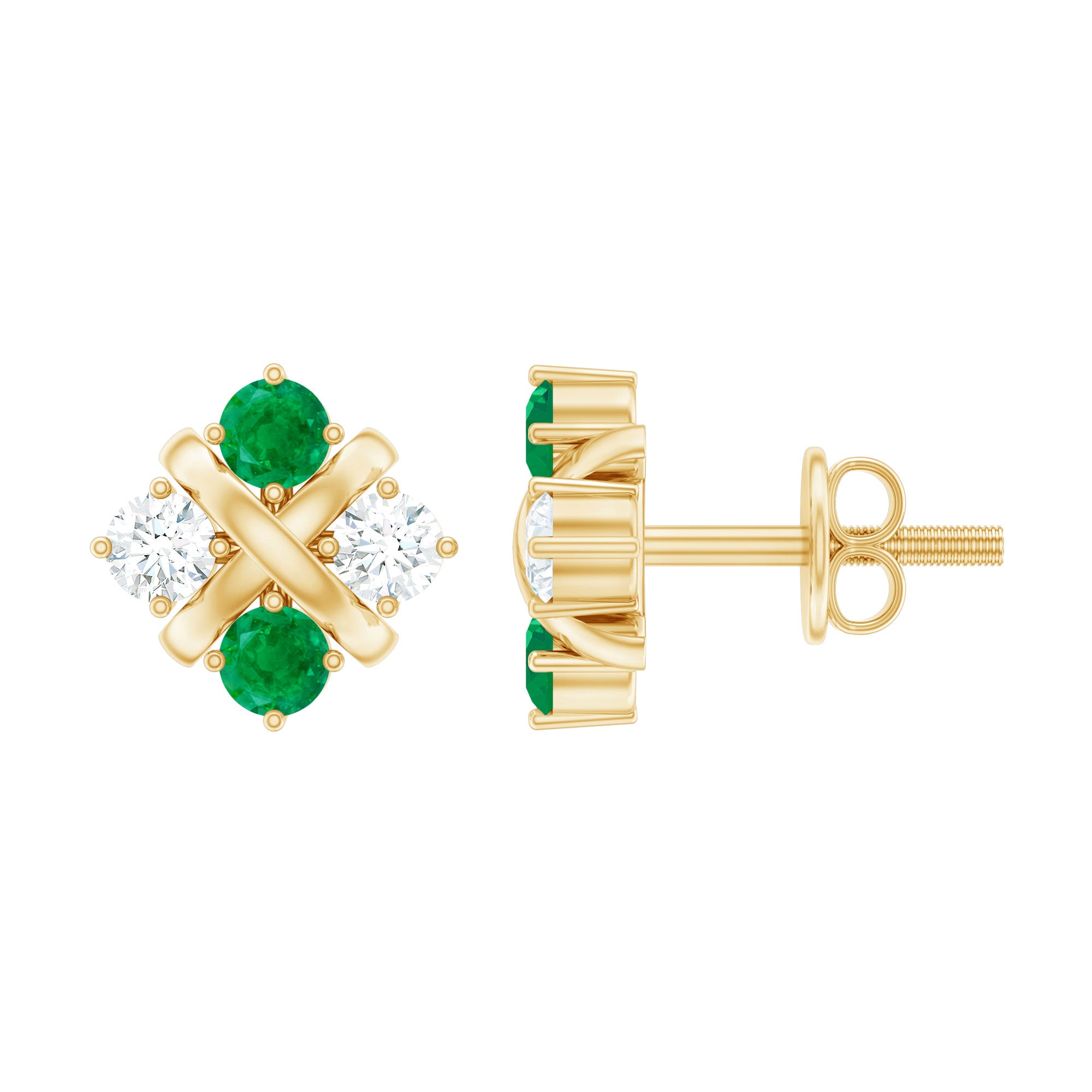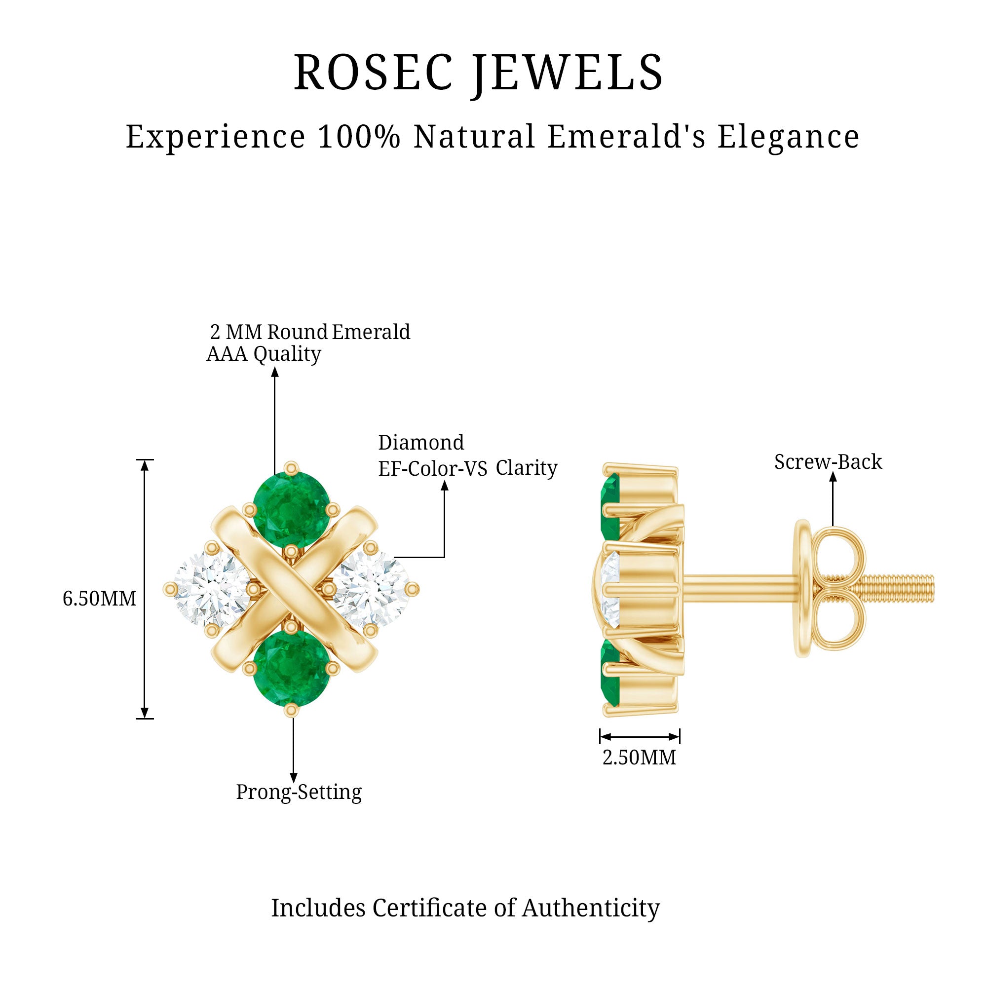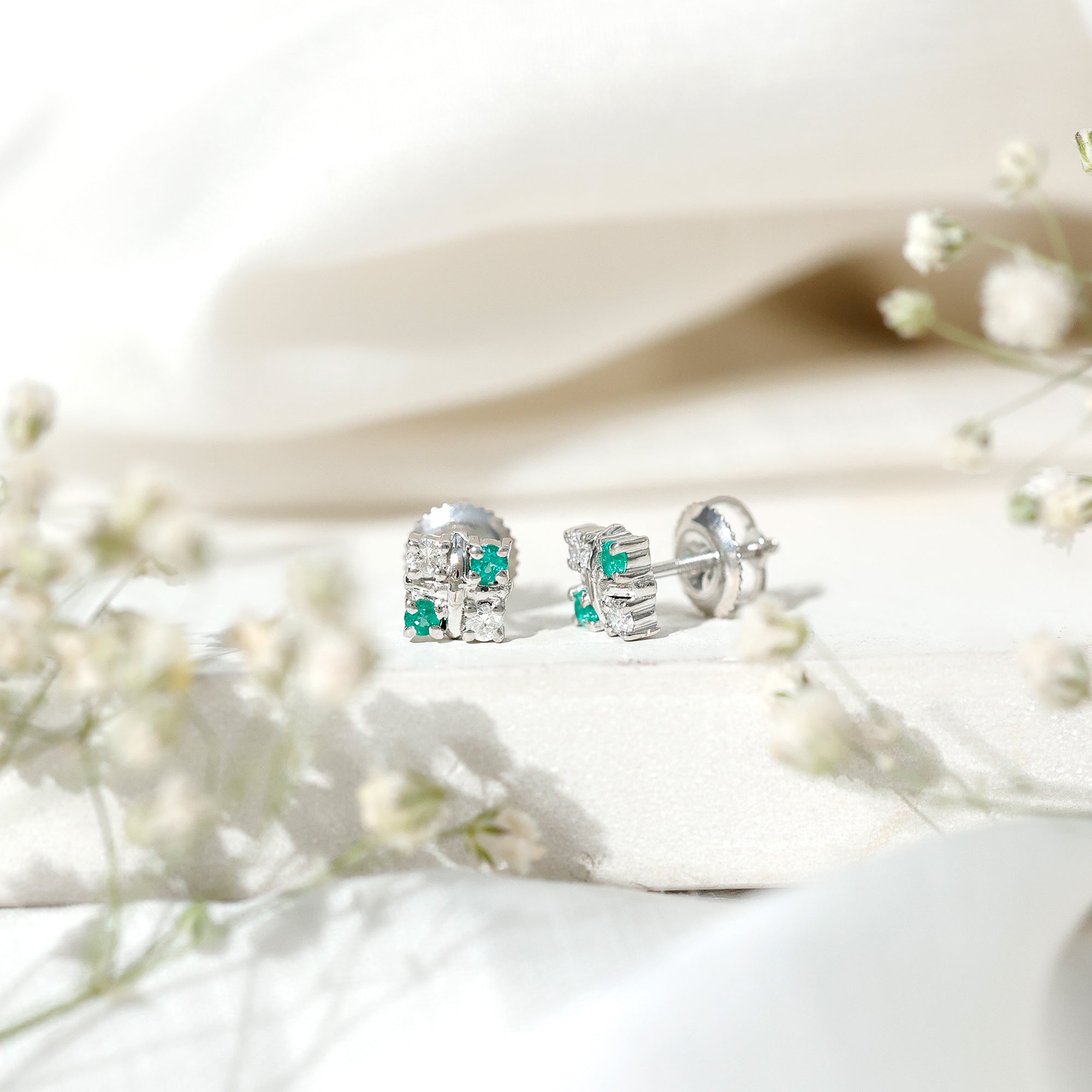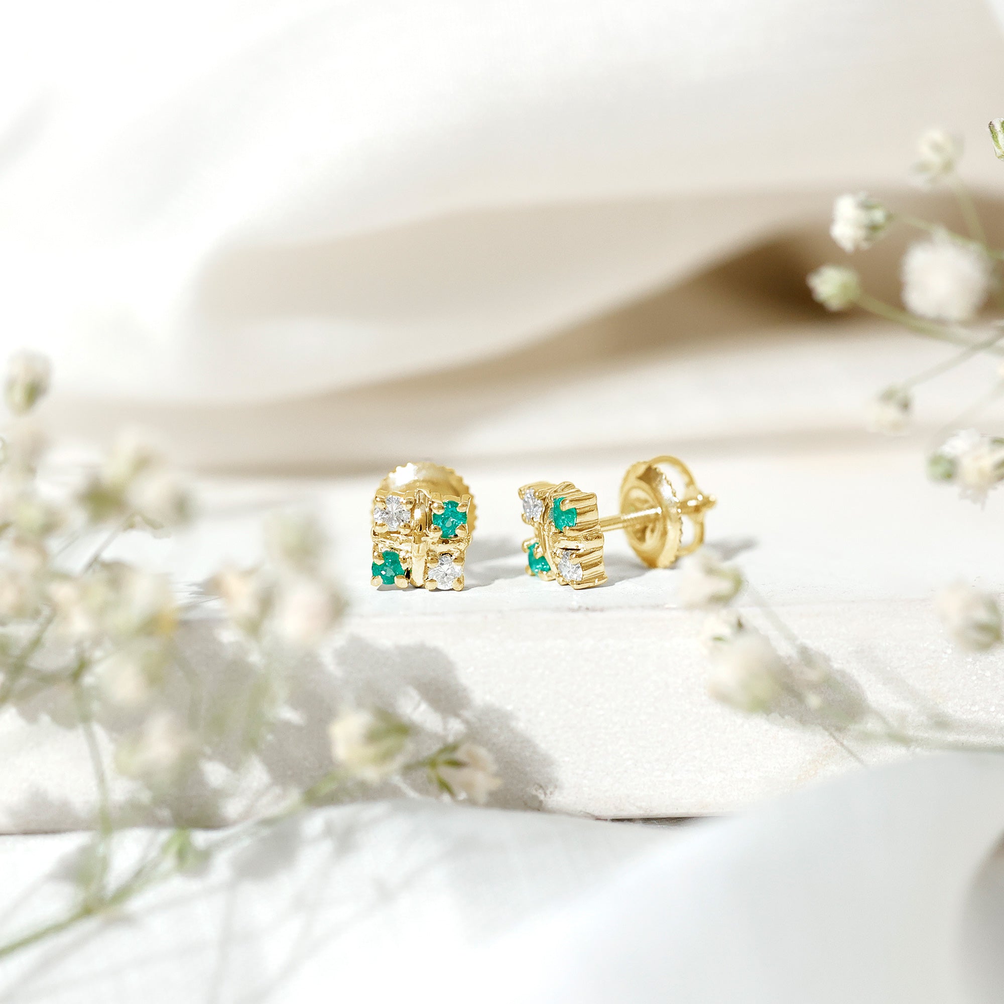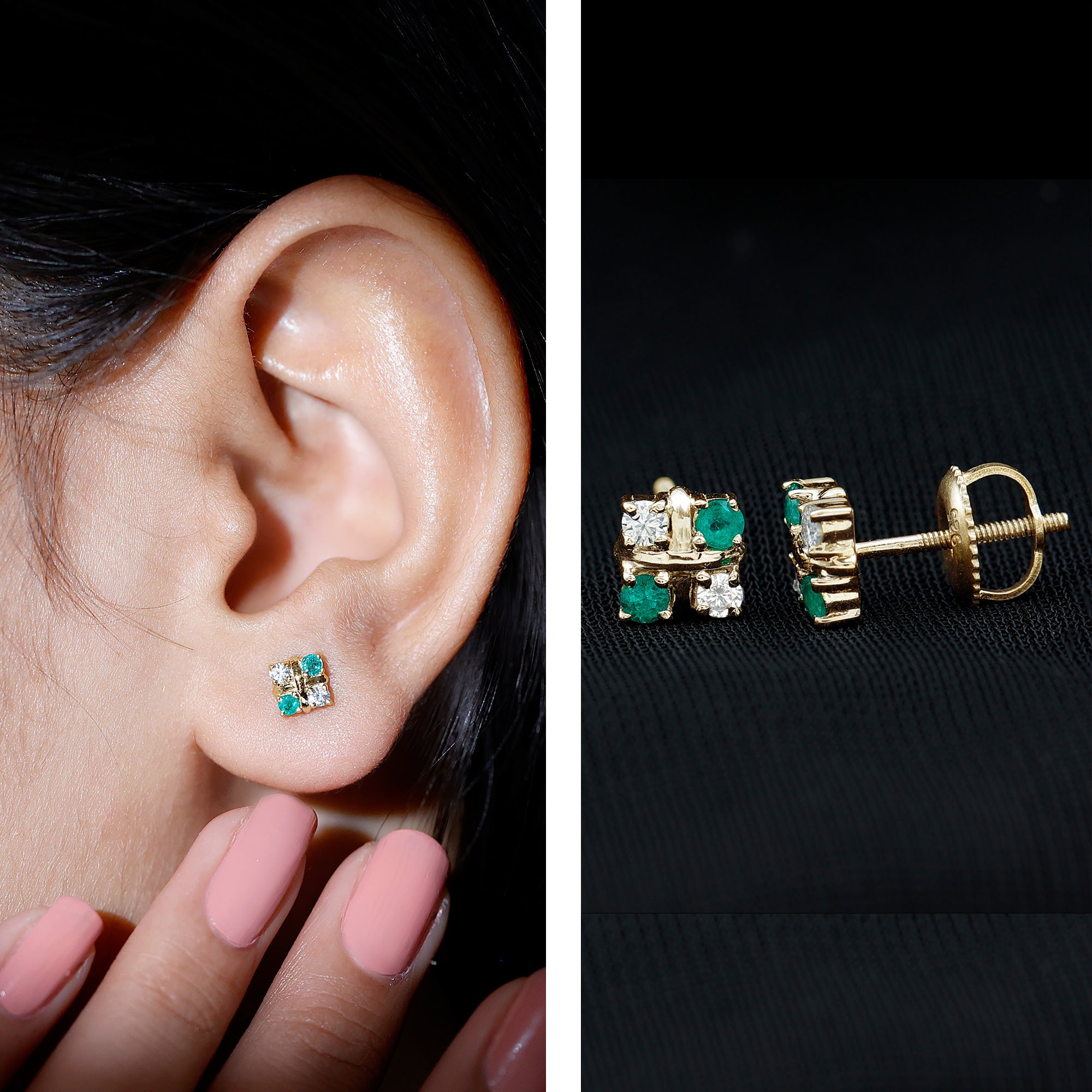 Create an atmosphere of excellence by showcasing the glamour of these elegant Real Emerald Stud Earrings. Their minimalist design features round brilliant cut emeralds and lab-grown diamonds set in prongs, resulting in a unique and timeless aesthetic. The cluster style of these studs gives them a substantial look, making them perfect for everyday wear. With a combination of elegance and sparkle, these Emerald Cluster Earrings boast an impressive design, making them a treasured addition to any jewelry collection. They draw attention to the eyes, radiating a magnetic charm that cannot be overlooked. These Minimalist Earrings enhance your overall appearance, adding a unique and modern twist to a classic style. A perfect blend of luxury and contemporary style, these Emerald and Diamond Earrings elevate your look, bringing a sense of sophistication that stands the test of time. A symbol of love and admiration, these Screw Back Earrings allow you to shine and sparkle for an exquisite and dazzling appearance.