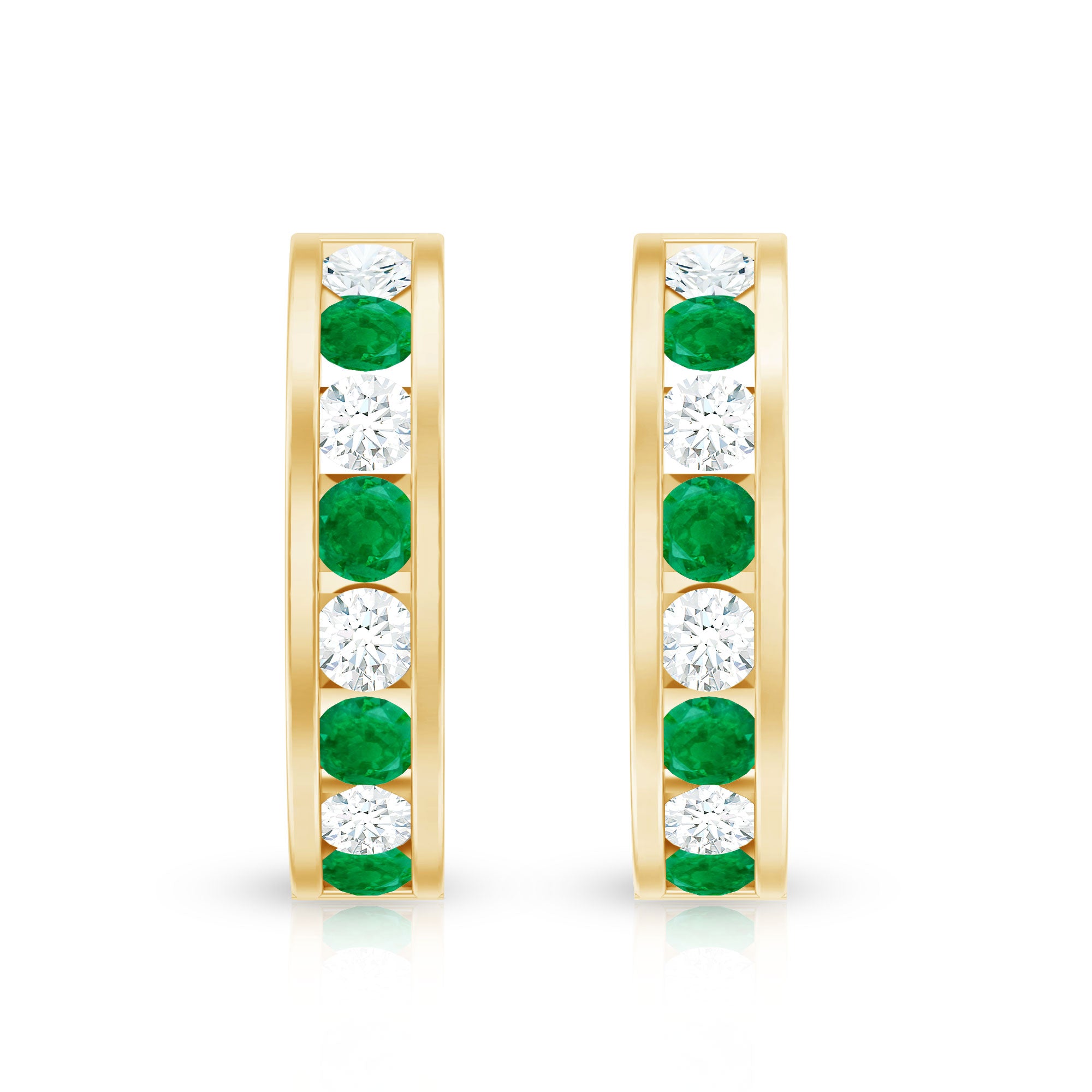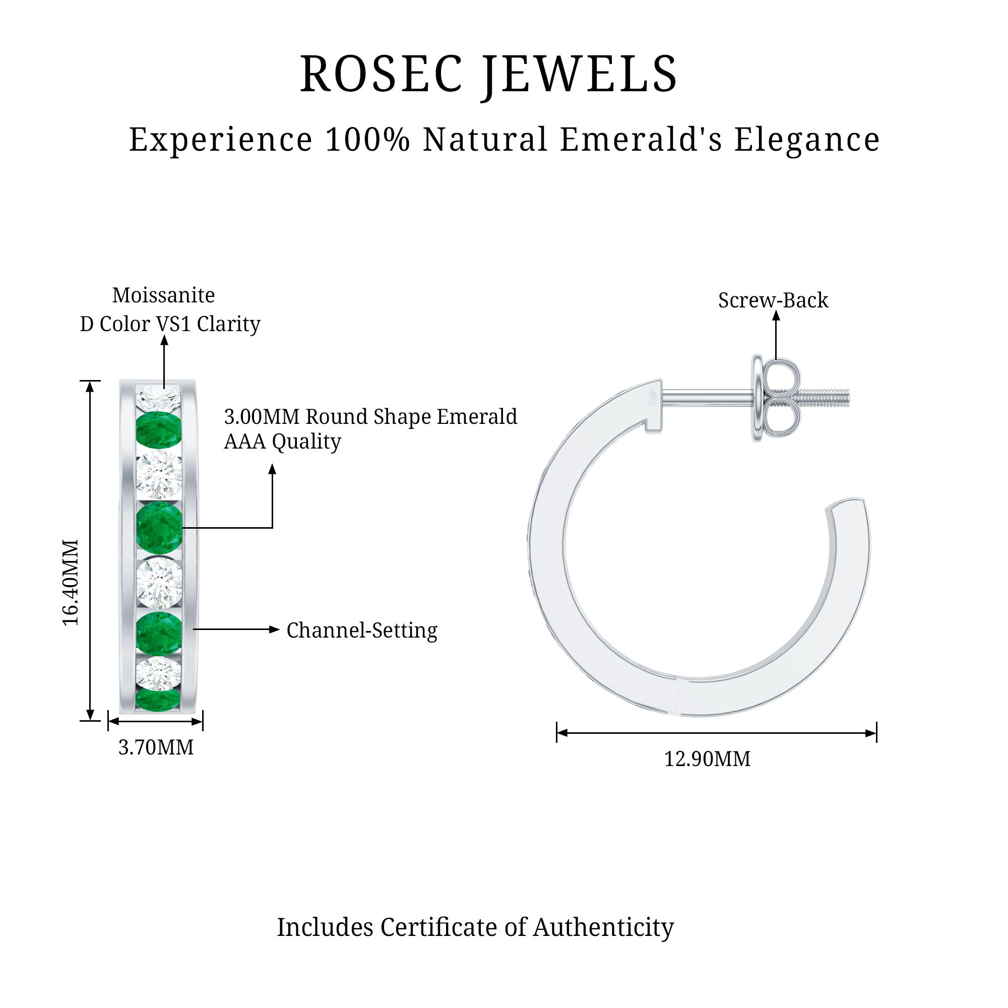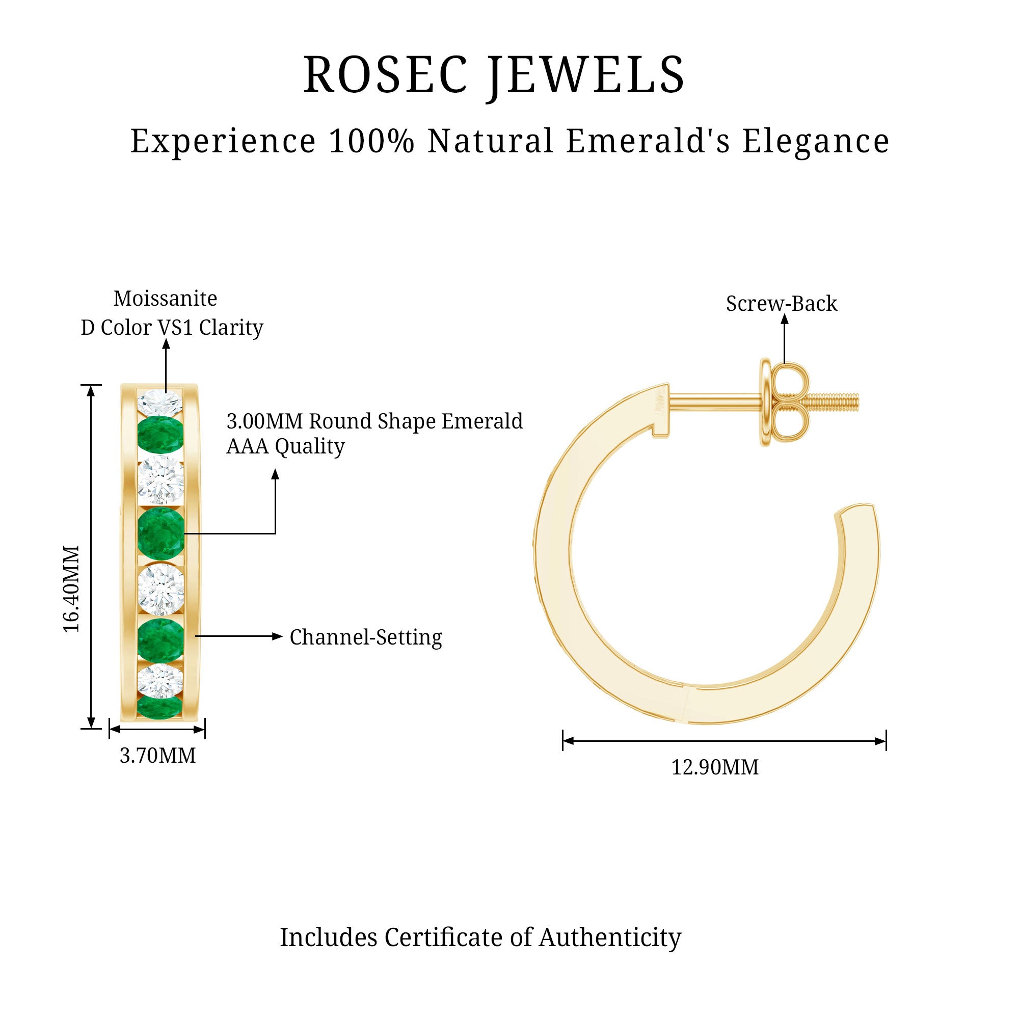 Start a conversation with a touch of elegance by wearing these stunning Real Emerald Earrings. Made from high-quality metal, these Hinged Hoop Earrings feature a beautiful arrangement of Round Cut Emeralds and Lab Grown Diamonds set alternately in Channel Setting across the half hoop. With their vibrant and unique design, these Emerald Hoop Earrings add just the right amount of color to your outfit without being too much. They come with a secure screw back closure, making them perfect for daily wear or special events. Shine effortlessly with these Emerald and Diamond Earrings, which offer a striking and sophisticated look. They strike a perfect balance between harmony and vibrant green, keeping your style sleek and chic. Get ready to turn heads and embrace a trendy vibe with a splash of modern flair in your green dress, adding a hint of sophistication to your ensembles, ideal for evening gatherings or special occasions.