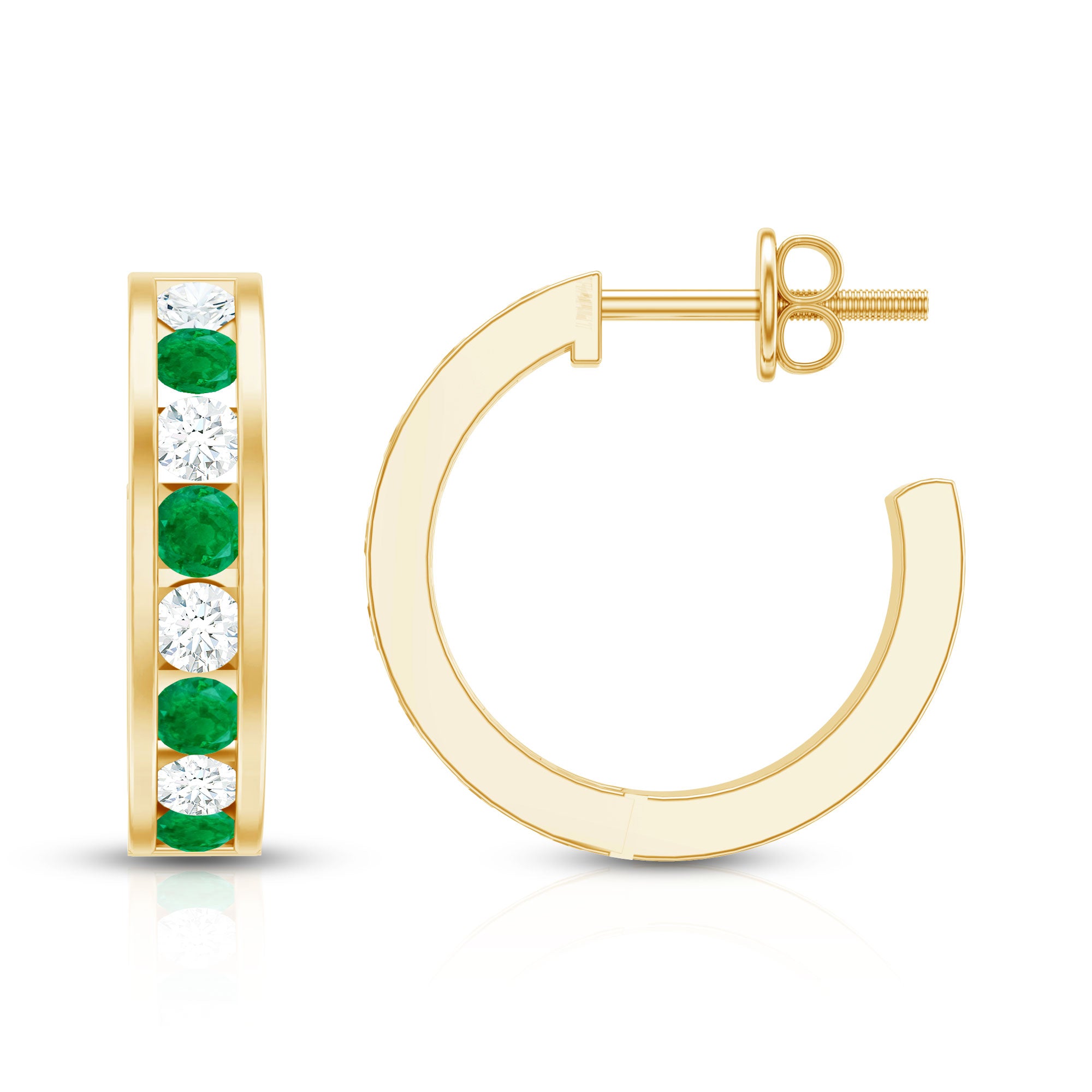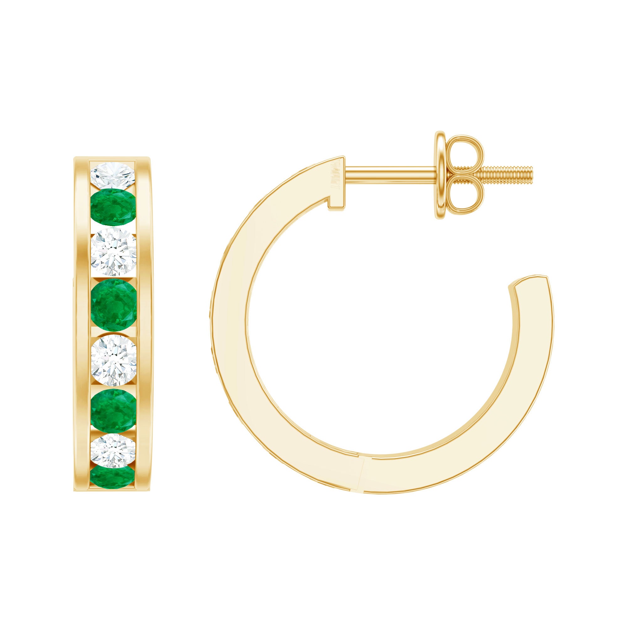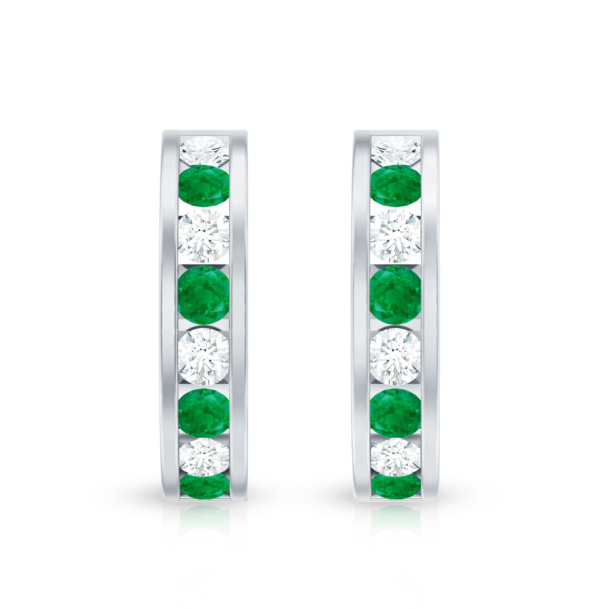 Start a conversation with a touch of elegance by wearing these stunning Real Emerald Earrings. Made from high-quality metal, these Hinged Hoop Earrings feature a beautiful arrangement of Round Cut Emeralds and Lab Grown Diamonds set alternately in Channel Setting across the half hoop. With their vibrant and unique design, these Emerald Hoop Earrings add just the right amount of color to your outfit without being too much. They come with a secure screw back closure, making them perfect for daily wear or special events. Shine effortlessly with these Emerald and Diamond Earrings, which offer a striking and sophisticated look. They strike a perfect balance between harmony and vibrant green, keeping your style sleek and chic. Get ready to turn heads and embrace a trendy vibe with a splash of modern flair in your green dress, adding a hint of sophistication to your ensembles, ideal for evening gatherings or special occasions.