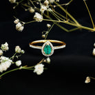Make a striking statement with this beautiful Emerald Engagement Ring, perfect for those who love elegance and style. At the heart of the Teardrop Engagement Ring lies a breathtaking 5X7 MM pear shaped emerald, securely set in 3-prong setting. Surrounding the emerald is a brilliant moissanite halo that enhances its sparkle and draws attention to the vibrant center stone. The centerpiece is further complemented by a row of round cut moissanite side stones, carefully arranged to highlight the deep green color of the emerald and create a stunning contrast. The combination of AAA quality natural emerald and D-VS1 quality moissanites gives the Pear Shaped Halo Engagement Ring a contemporary yet classic appeal, setting it apart from traditional styles. This Emerald and Moissanite Ring is designed to celebrate love and comes in a luxurious jewelry box, making it ready to delight someone special or commemorate your own unforgettable moment. Available in various sizes for the perfect fit, its elegant design makes it ideal for proposals, engagements, or as a thoughtful gift, symbolizing a significant commitment and cherished moments.