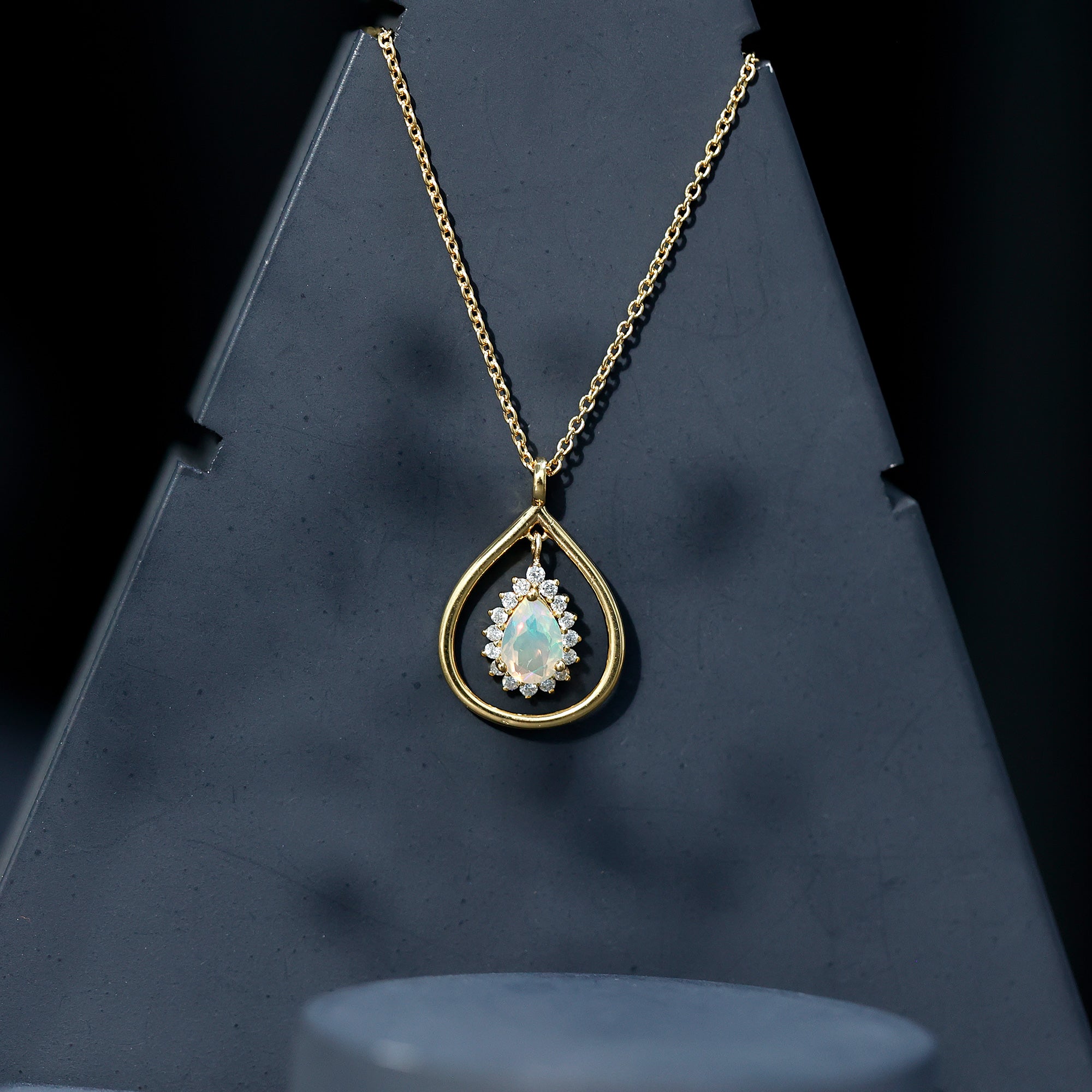 Certified Ethiopian Opal and Diamond Teardrop Pendant Necklace