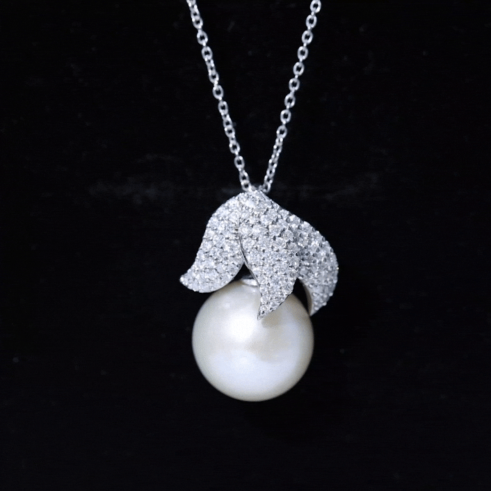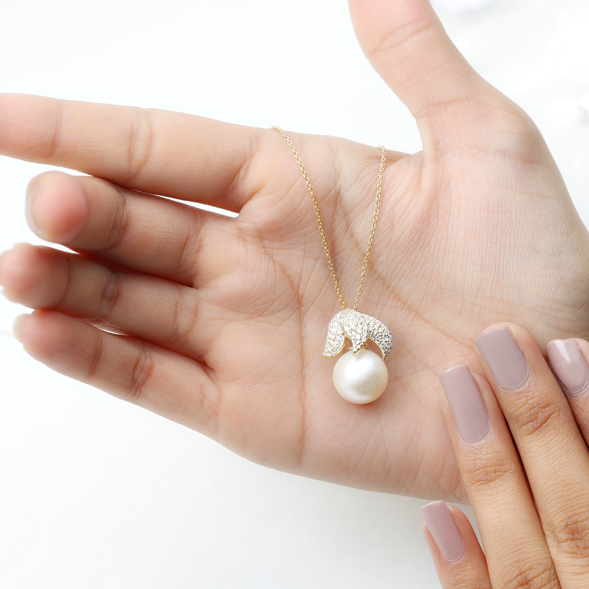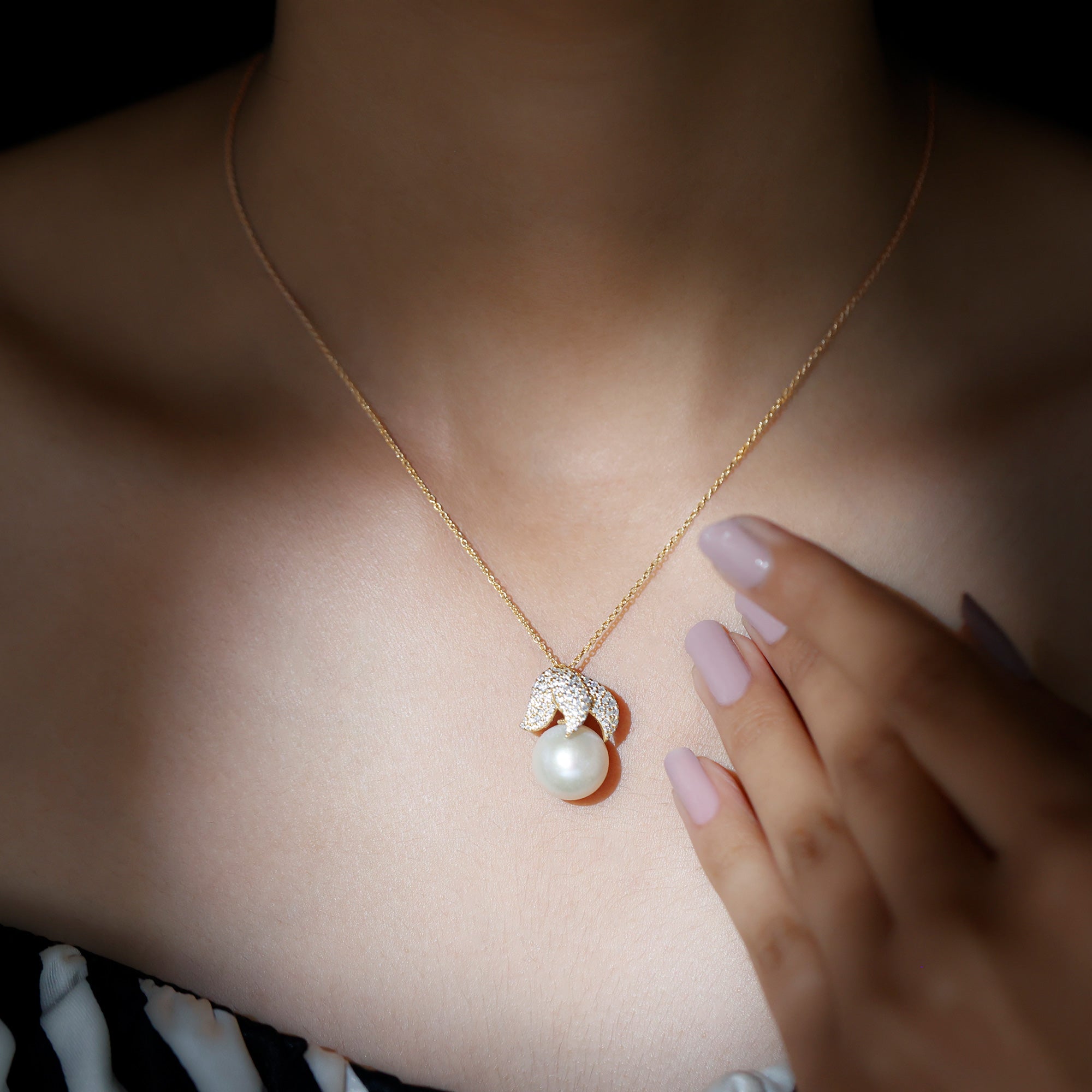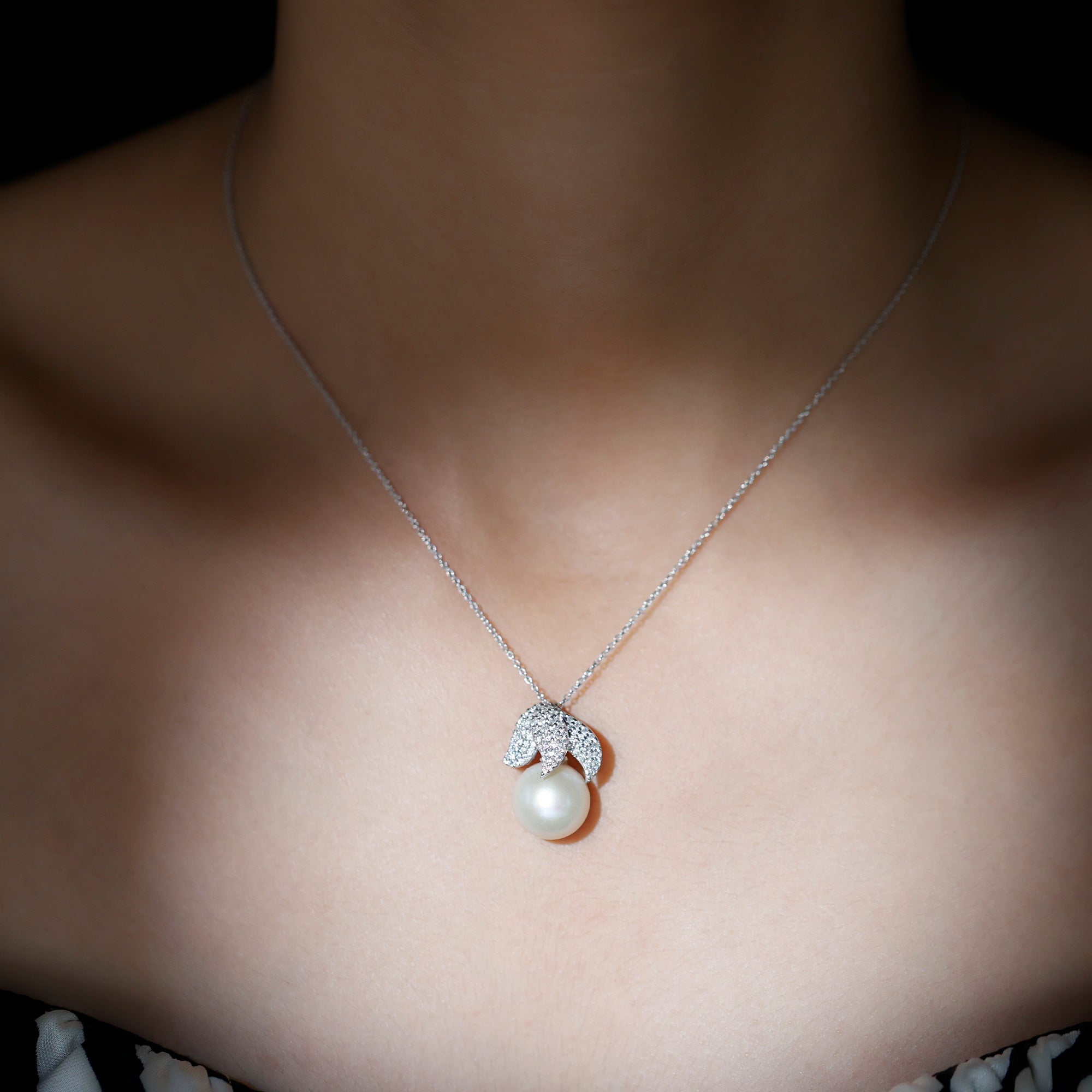 If you are dreaming of something elegant but still unique for your big day, this Pearl Wedding Necklace is basically perfection. The combo of that soft, white pearl with the sparkle of lab-grown diamonds gives major timeless-meets-modern vibes. This Freshwater Pearl Necklace is not overly flashy, but it definitely turns heads in the best way. The huge 12 MM freshwater pearl sits in the center, super smooth and luminous. Flanked by three leaf motifs adorned with clusters of lab created diamonds, catching light with every move. This Pearl and Diamond Necklace has subtle shimmer that hits just right in the sunlight or under soft evening lights. The design feels romantic and a bit whimsical, like something you would wear not just on your wedding day but years down the road - anniversaries, date nights, cocktail parties, or even just to dress up a cozy outfit. Whether you are going classic or modern with your wedding look, this Leaf Necklace fits right in without trying too hard. It is one of those pieces you keep forever and maybe even pass down someday.