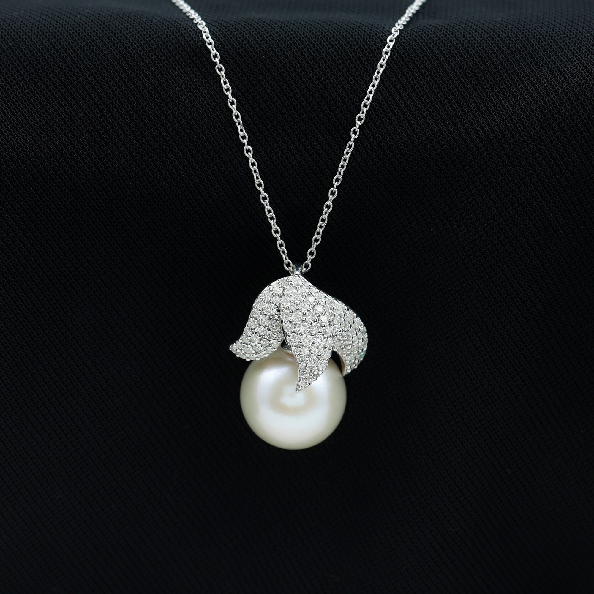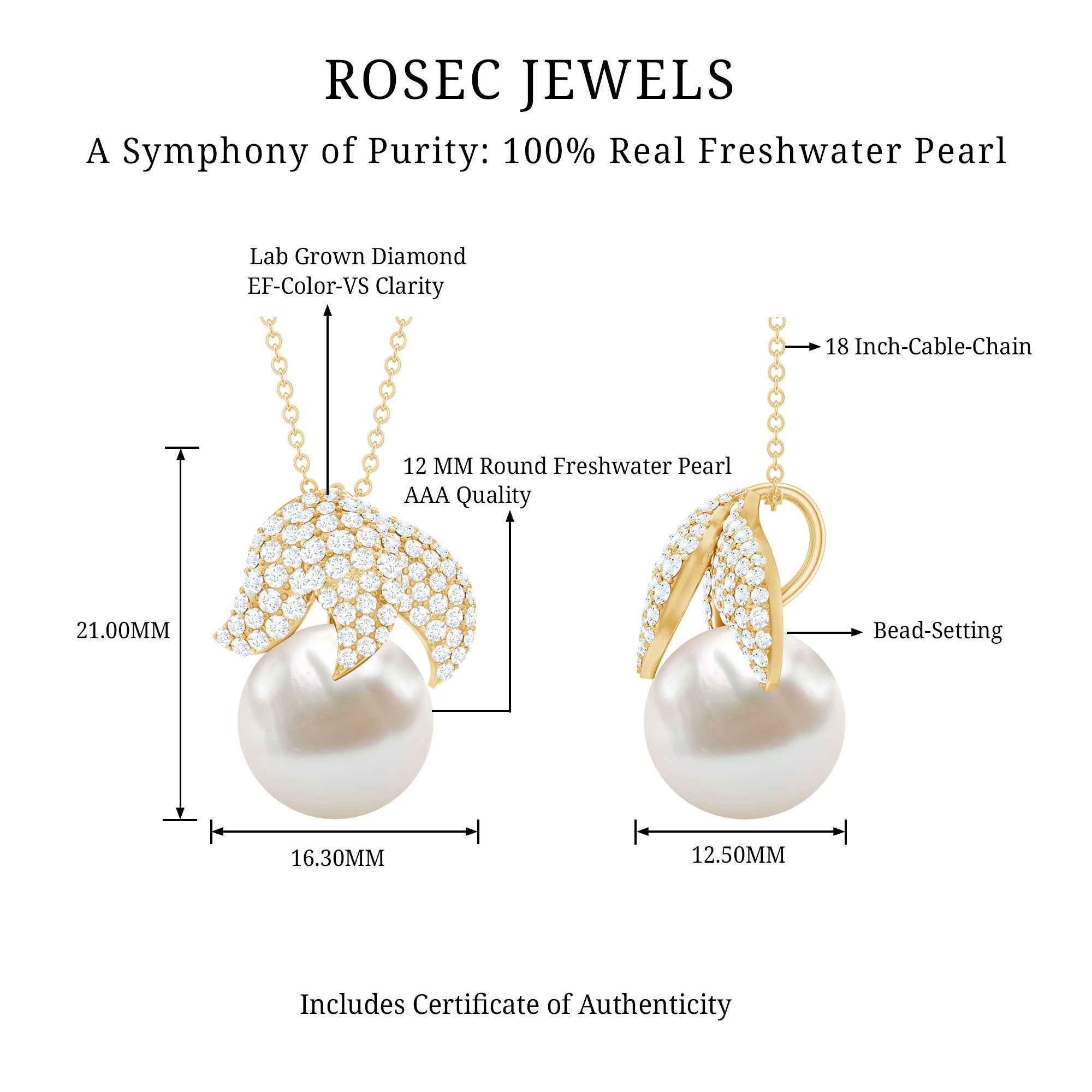Certified Freshwater Pearl Bridal Necklace with Lab Diamond