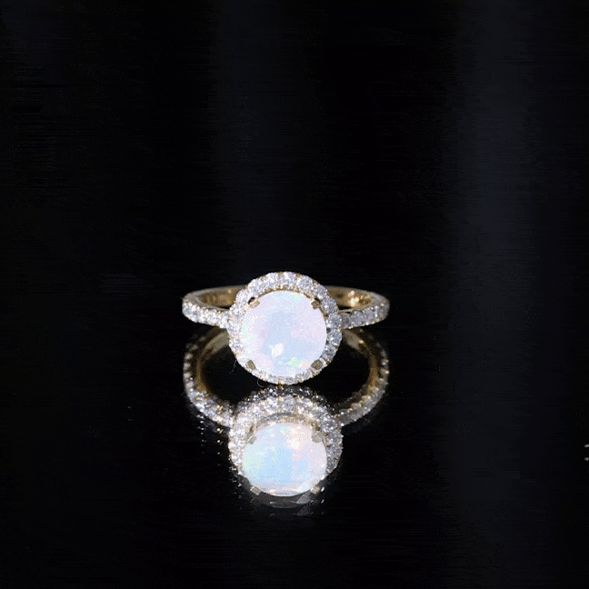 Certified Genuine 8mm Ethiopian Opal Engagement Ring with Halo