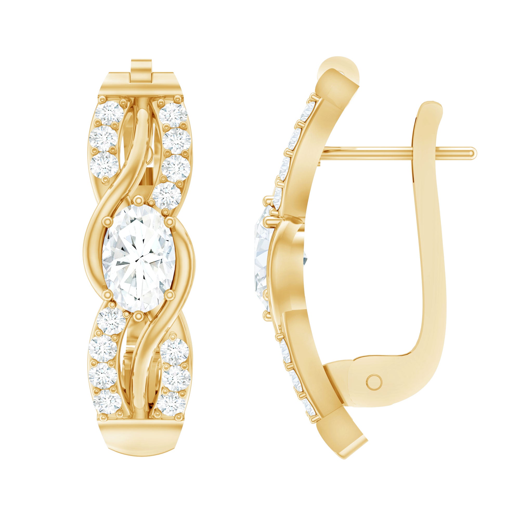 These exquisite Diamond Infinity Earrings beautifully symbolize forever beauty and endless love. At the heart of each earring sits a dazzling 4X6 MM oval shaped lab grown diamond in prong setting. The centerpiece is enhanced by an elegant infinity-inspired design that is adorned with round cut diamonds and adds a layer of sparkle and sophistication. Designed for both comfort and security, the latch-back closure ensures a snug and effortless fit of these Diamond Stud Earrings, making them ideal for everyday wear or special occasions. You can present these Huggies Earrings as a meaningful gift or a personal statement of eternal grace, they are a timeless treasure to cherish lifetime.
