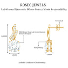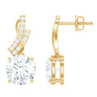 Make a bold statement of love and elegance with these Round Diamond Earrings. An 8 MM round cut diamond (lab-grown) is set in safe prong setting and above this stone are two curved bars adorned with smaller round cut gemstones with twisted metal detail. These Diamond Drop Earrings will make you feel like you are on top of the world, turning heads and catching compliments wherever you go. These Solitaire Earrings make a perfect Valentines Day gift for girlfriend, 1st anniversary gift for wife, a birthday gift for her, and a graduation gift for daughter. Also, they come with a screw back closure, so she doesnt have to worry about them slipping off, providing comfort and security.