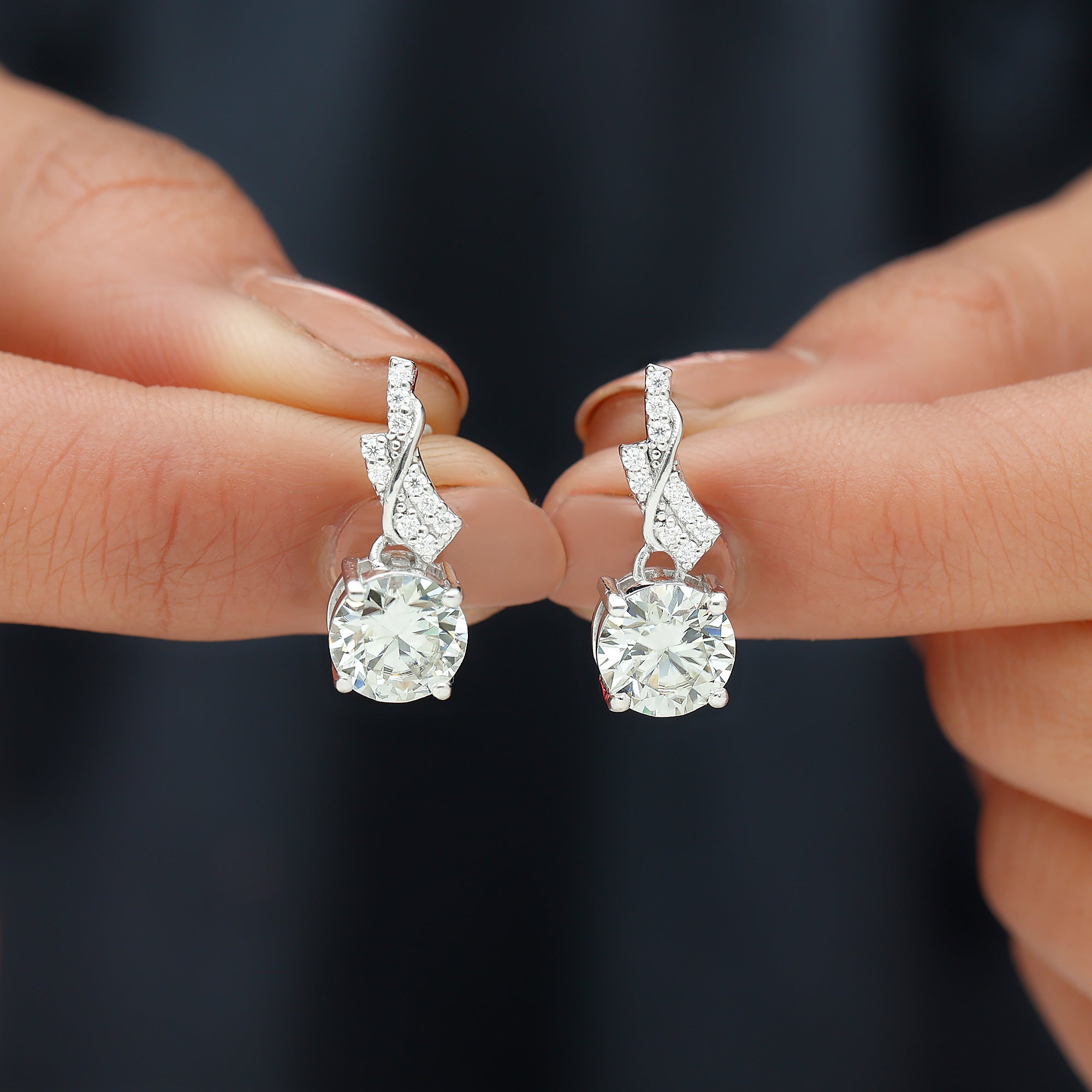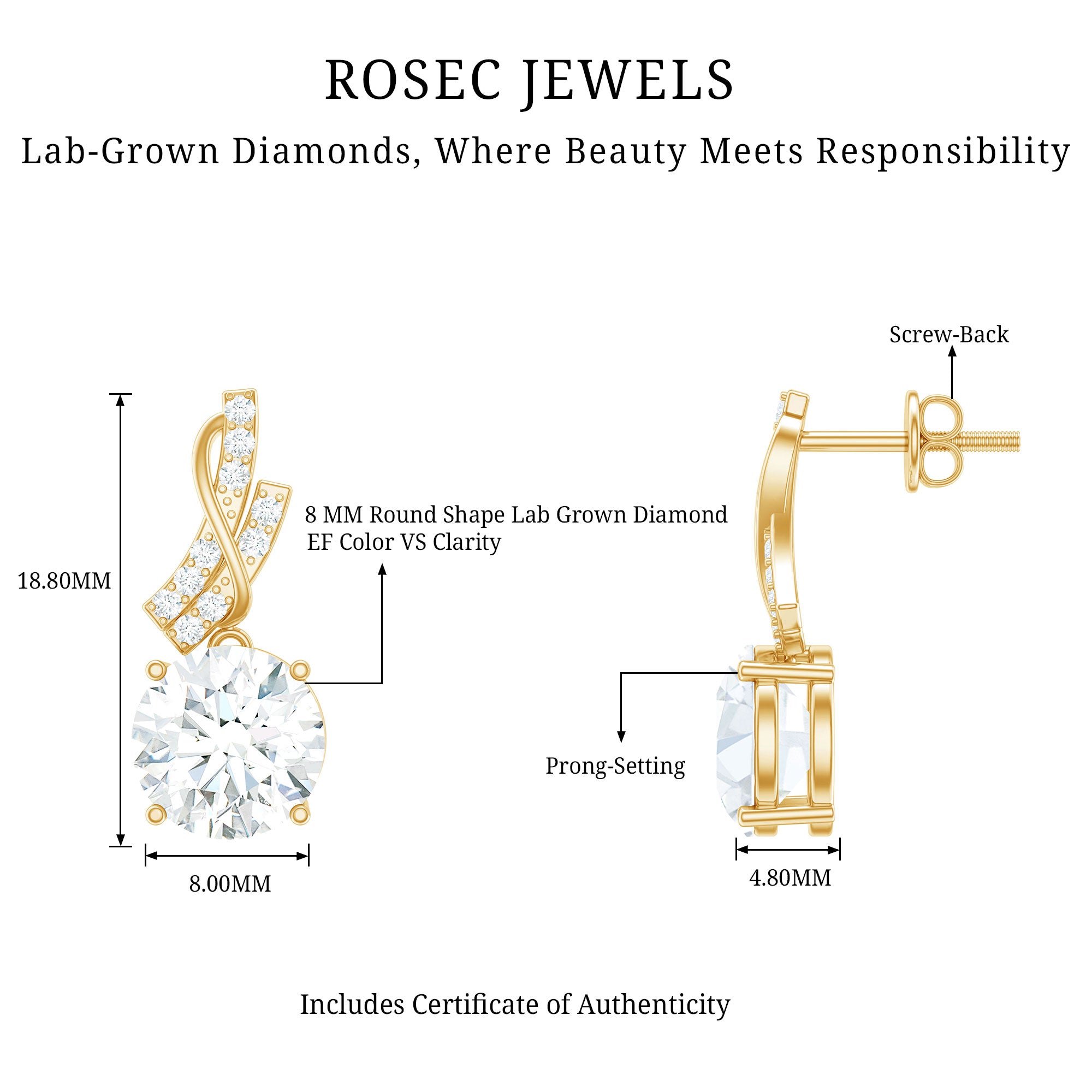 Certified Lab 8 mm Round Diamond Designer Drop Earrings