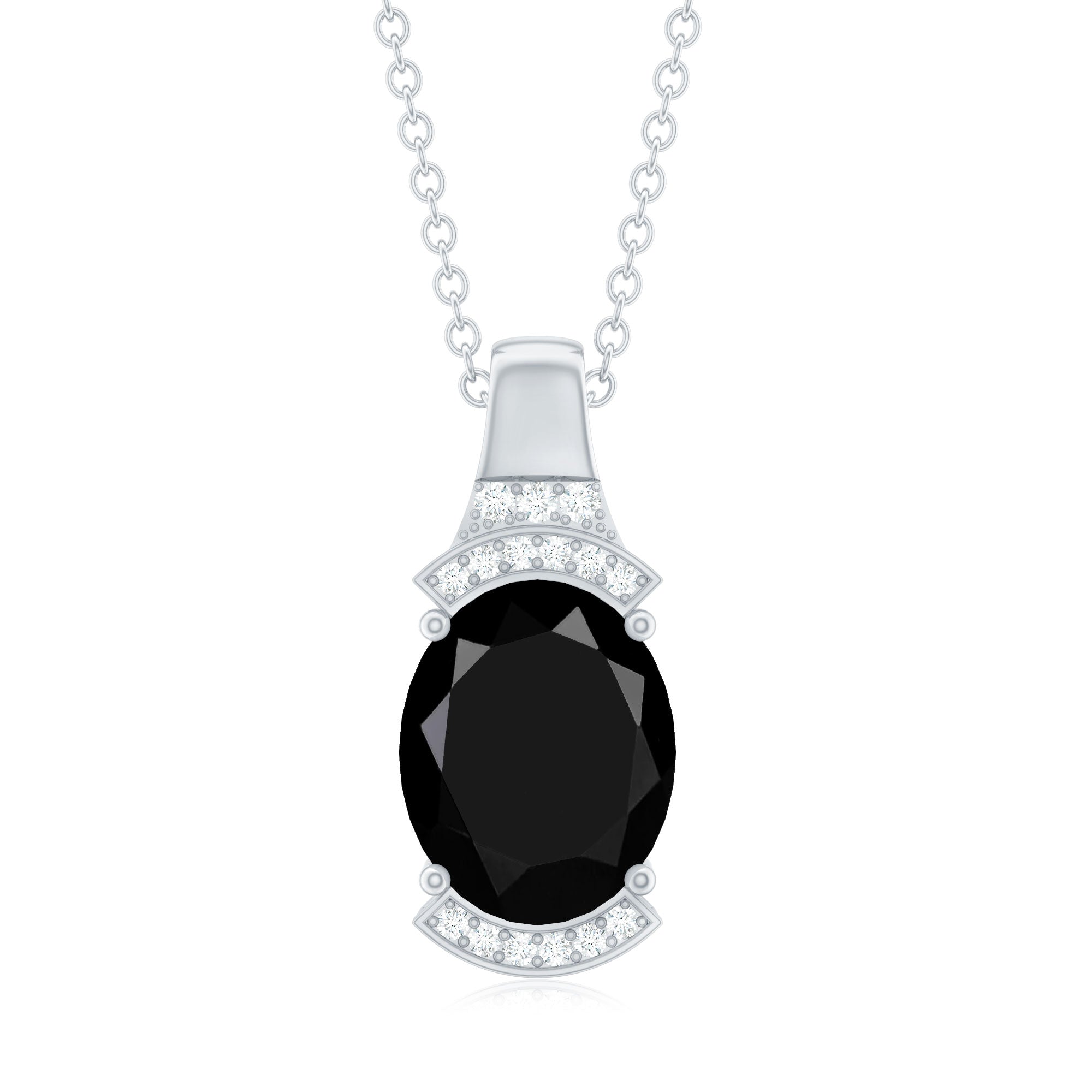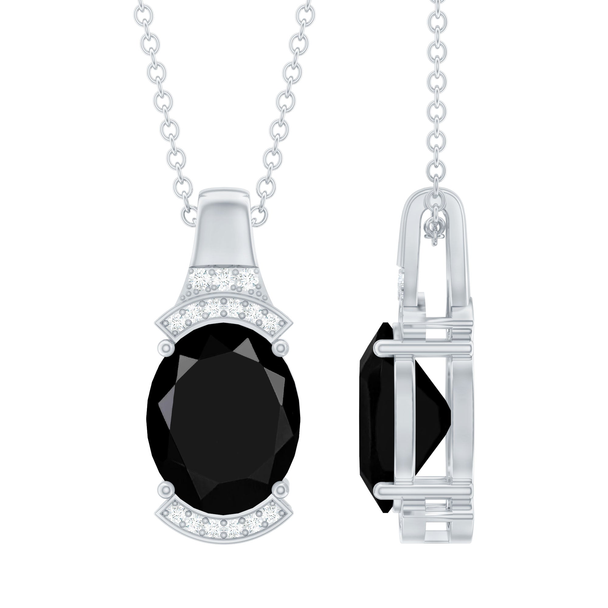 Create a bold fashion statement with this mesmerizing Solitaire Pendant Necklace featuring an 8x10 mm Oval Shape Lab Created Black Diamond set in Prong Setting, accentuated by White Lab Grown Diamond gemstones. The design seamlessly blends modern elegance with timeless beauty with the glares of Aaaa Quality Black Diamond and Ef-Vs Quality Diamond. Elevate your style with this captivating Black Diamond Pendant Necklace (Unnatural) from Rosec Jewels, where innovation meets luxury.