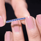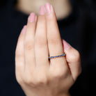 The regal charm of lab created blue sapphire meets the romantic appeal of a stackable design in this exceptional piece of jewelry. This elegant full eternity band ring is encrusted with deep lab created blue sapphires that are mounted in a french pave setting. This Full Eternity Ring for Women is the ultimate tribute to eternity, designed for those who love a bit of sparkle. This Wedding Band serves as a glowing reminder of every shared smile, every significant moment, and all the heartbeats in between. Crafted to catch eyes and ignite conversations, this Stackable Eternity Band comes in a luxurious jewelry box, making it an ideal gift, proposal ring, or a special treat for yourself. Whether for daily elegance or anniversary sparkle, this Wedding Anniversary Ring seamlessly fits into your narrative, your style. Available in US sizes 3 to 13, ensuring every woman can discover her ideal fit. Delicate yet stunning, sophisticated yet bright, this Eternity Wedding Ring is designed to shine just like you.