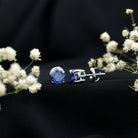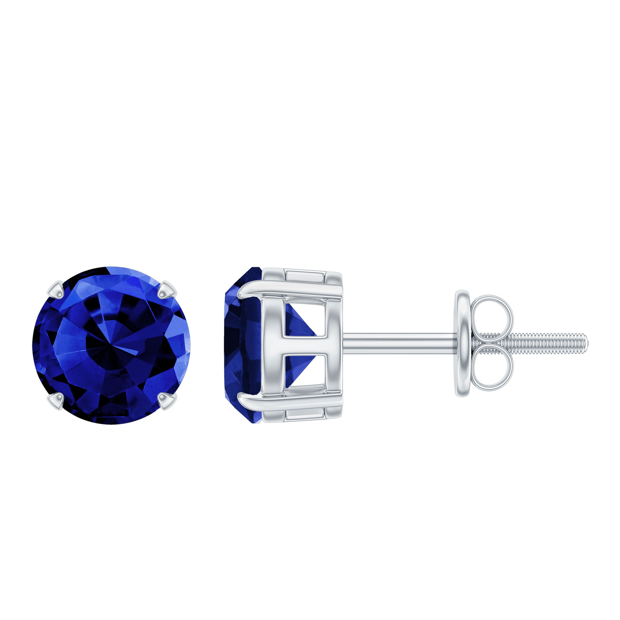 Certified Lab Created Blue Sapphire Stud Earrings in Claw Setting