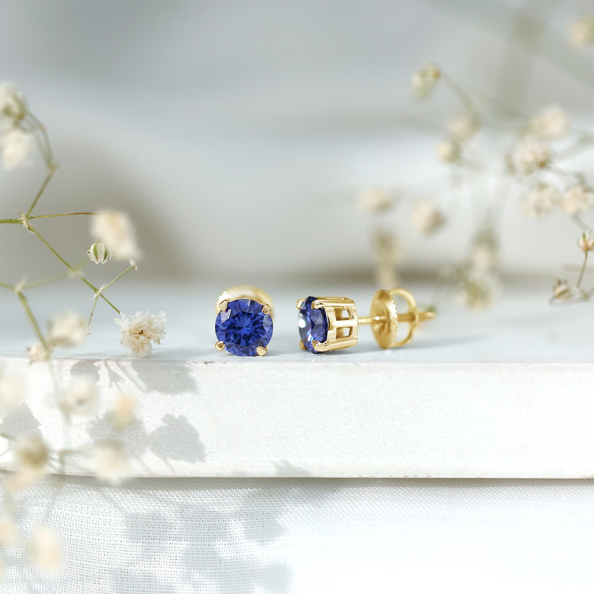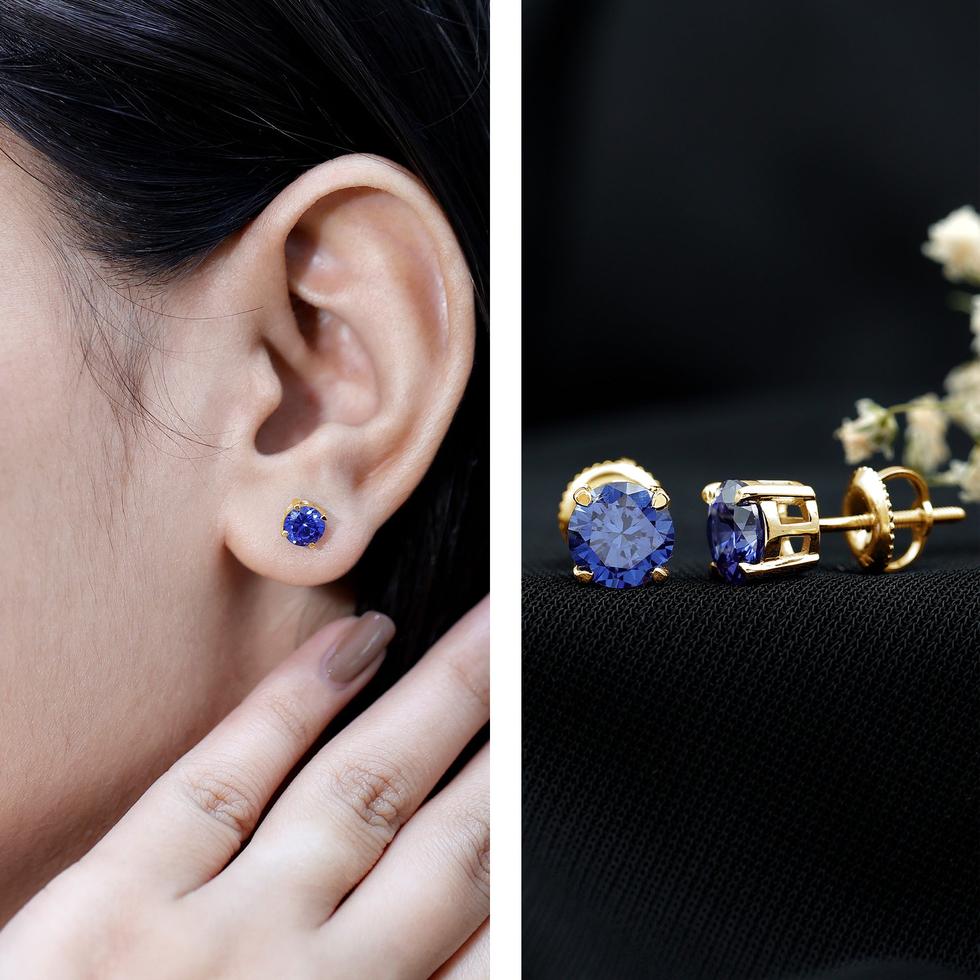 Add a bold touch of color to your style with these Lab Grown Blue Sapphire Earrings. Each earring features a 6 MM round lab created sapphire of AAAA quality, set in secure claw setting. Perfect for everyday wear or special events, these Blue Sapphire Stud Earrings are designed to be both elegant and comfortable. The screw back closure keeps them safely in place, so you can wear them all day without worry. Their simple style makes them easy to pair with any outfit, whether you are dressing up or keeping things casual. Lab grown sapphires offer the same beauty and strength as natural stones, but in a more affordable and eco-friendly way. This pair is crafted with care to give you long-lasting shine and quality you can trust. Beautifully packed in a gift-ready jewelry box, these Blue Stone Earrings make a thoughtful present for birthdays, anniversaries, or any special moment. Sleek, stylish, and full of vibrant color, they are a must-have addition to any jewelry collection.