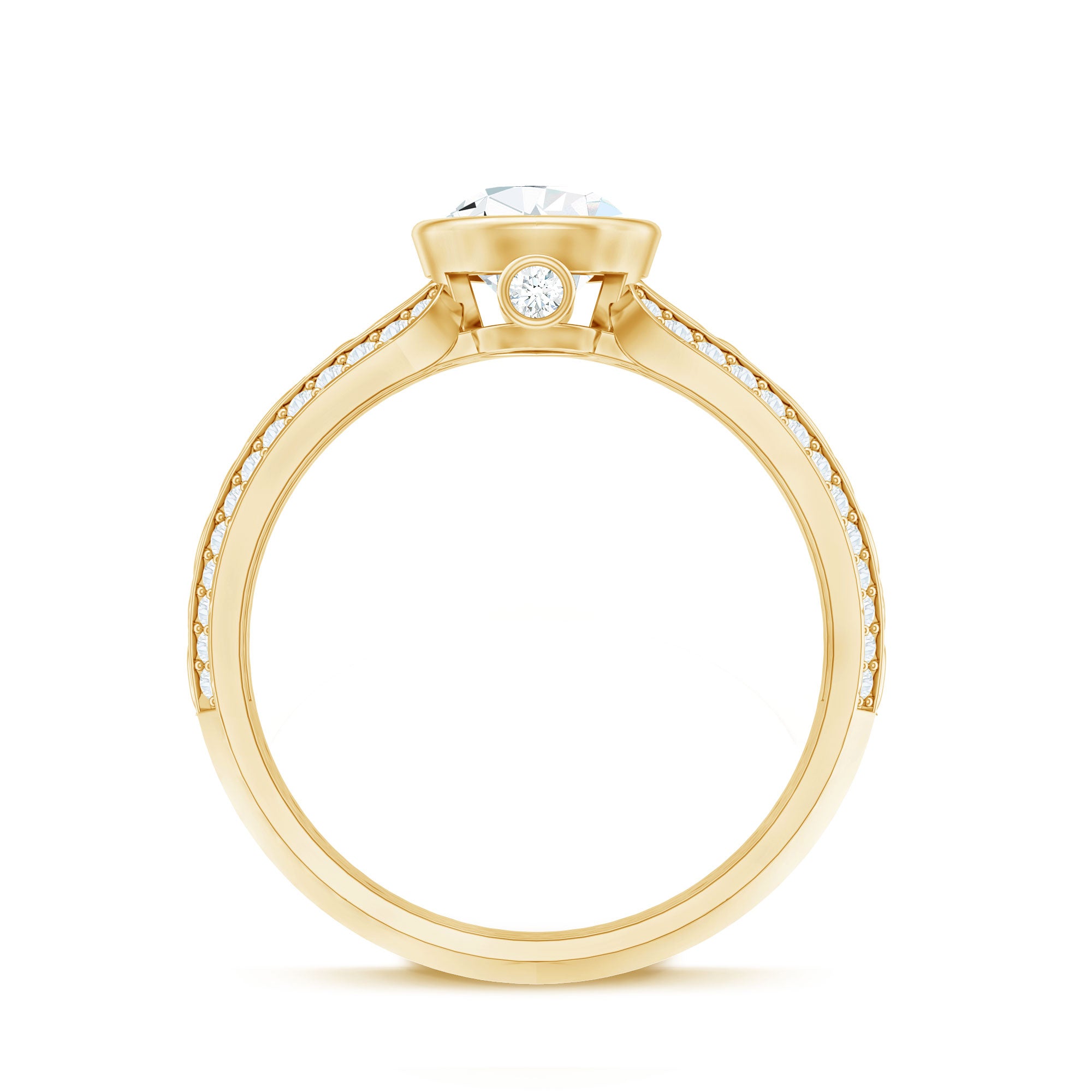 Express the beauty with the intricate features of this breathtaking Lab Grown Diamond Engagement Ring, a timeless representation of your love. Radiating brilliant light, this Solitaire Engagement Ring showcases a 6X8 MM Pear Shape Lab Created Diamond, securely held in Bezel Setting. The distinctive filigree design on the band, adorned with delicate round cut stones, merges classic and romantic elements in this vintage-inspired piece. This Art Deco Engagement Ring sparkles from every angle, making it easy to fall in love with its exquisitely detailed band. As a classic choice, this Lab Created Diamond Teardrop Ring is ideal for any occasion, whether it is an Anniversary, Wedding, Engagement, Valentine's Day, Birthday, New Year, Christmas, Graduation, or Thanksgiving. Our skilled artisans have meticulously crafted this Pear Shaped Engagement Ring using EF-VS Quality Lab Diamonds, ensuring you wear nothing but exceptional quality.