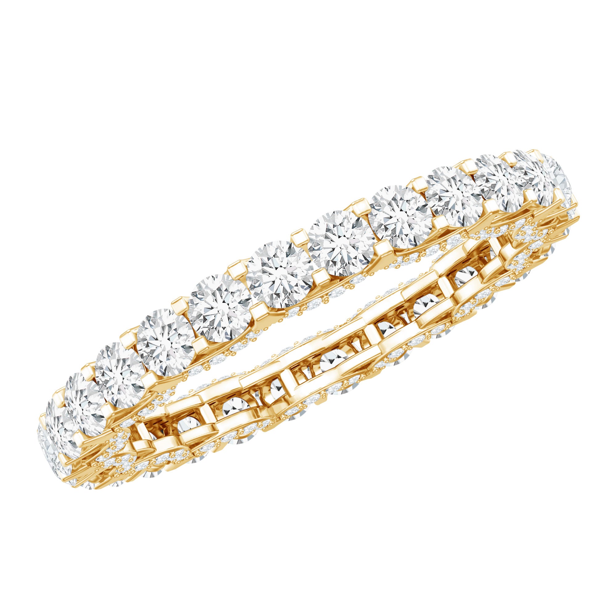 Dazzling yet deeply meaningful, this Full Eternity Ring is designed to celebrate a love with no beginning and no end. Sparkling Lab Grown Diamond stones circle the band in a continuous line of sparkle, reflecting a promise that lasts through every chapter of your journey together. What makes this ring truly special is its hidden beauty, dainty Diamond stones also adorn the inner shank, creating a soft shimmer that stays close to the skin, like a secret reminder of the love you share. Each diamond is meticulously set to create a seamless flow of brilliance, ensuring exceptional sparkle from every angle. Thoughtfully crafted to feel luxurious, romantic and lasting. The EF-VS Quality Lab Grown Diamond stones catch the light from every angle, offering a glow that feels effortless and timeless. It is a ring meant to be worn every day, growing more meaningful with each memory you create together. Presented in a signature jewelry box, this Lab Diamond Wedding Band arrives ready to mark one of the most important moments of life. With various ring sizes available, finding the perfect fit is simple. This Eternity Wedding Band is a vow, one that says your love is endless, inside and out.