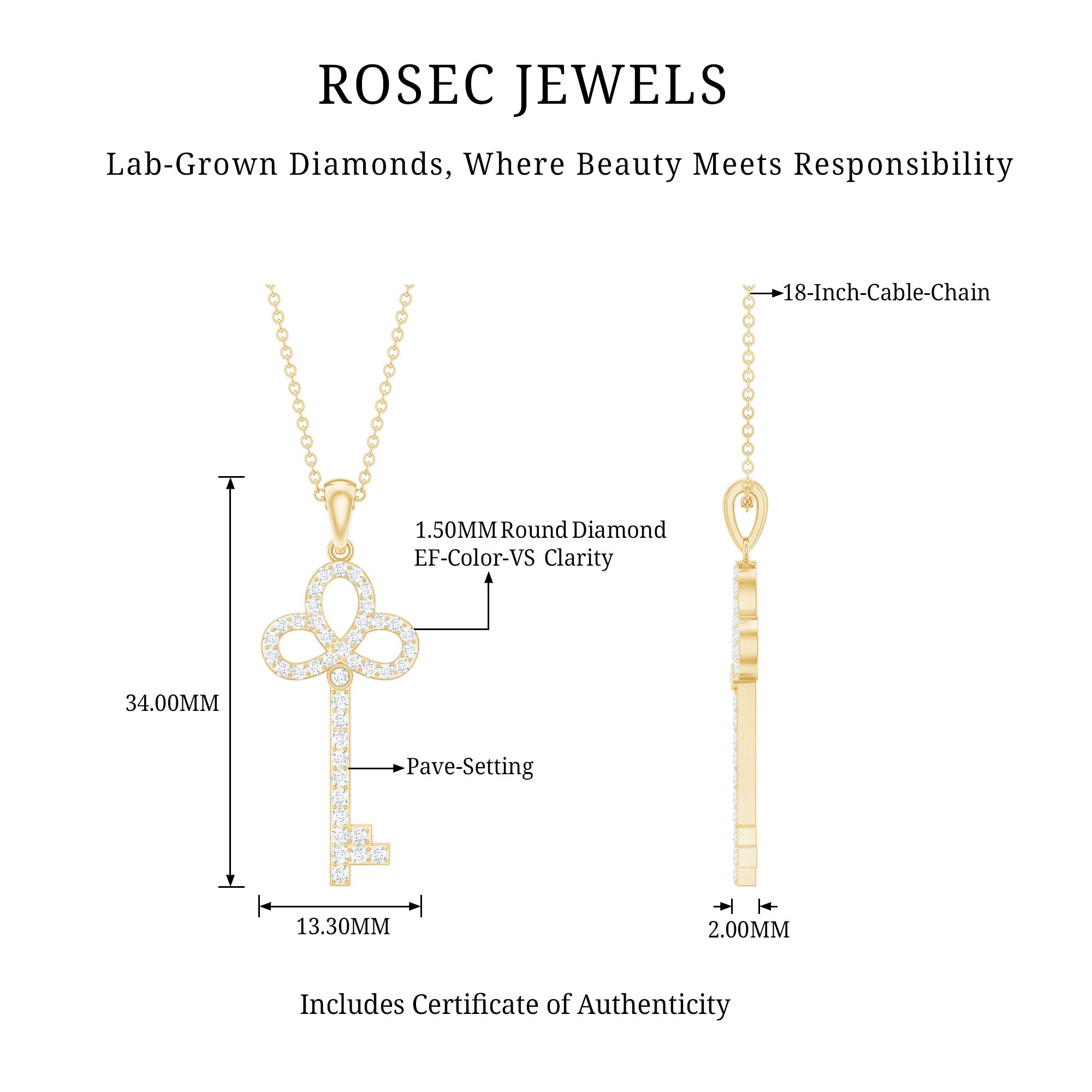 Unlock elegance with this adorable Key Pendant, a timeless piece that carries meaning and sparkle in every detail. Designed for women who love delicate jewelry with a deeper touch, this Fine Necklace features a beautifully crafted Key Shape Pendant that symbolizes new beginnings, dreams, and possibilities. The sparkling Lab Grown Diamond stones are carefully studded over the Key design to add a subtle yet stunning shine. Made with EF-VS Quality stones, each Lab Diamond reflects clarity and brilliance while being an ethical and thoughtful choice. The key design feels modern yet classic, simple enough for everyday wear, but special enough to dress up for meaningful occasions. Whether it is a gift for someone starting a new journey or a personal reminder of strength and growth, this Lab Diamond Necklace holds more than just beauty. It is easy to style and comes with a delicate chain for a complete look. This Key Charm Necklace sits perfectly at the neckline and adds just the right amount of sparkle. Beautifully packaged in a jewelry box, this Diamond Key Pendant (Lab Created) is ready to gift or keep as your new go-to piece. Elegant, meaningful, and full of charm, this Lab Grown Diamond Pendant is a symbol of what lies ahead.
