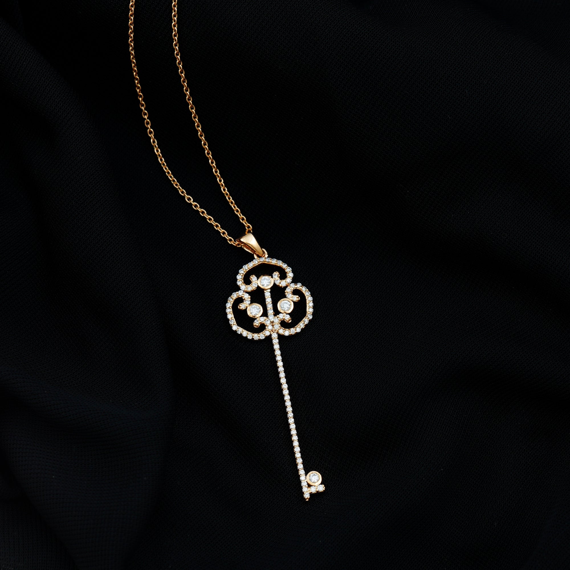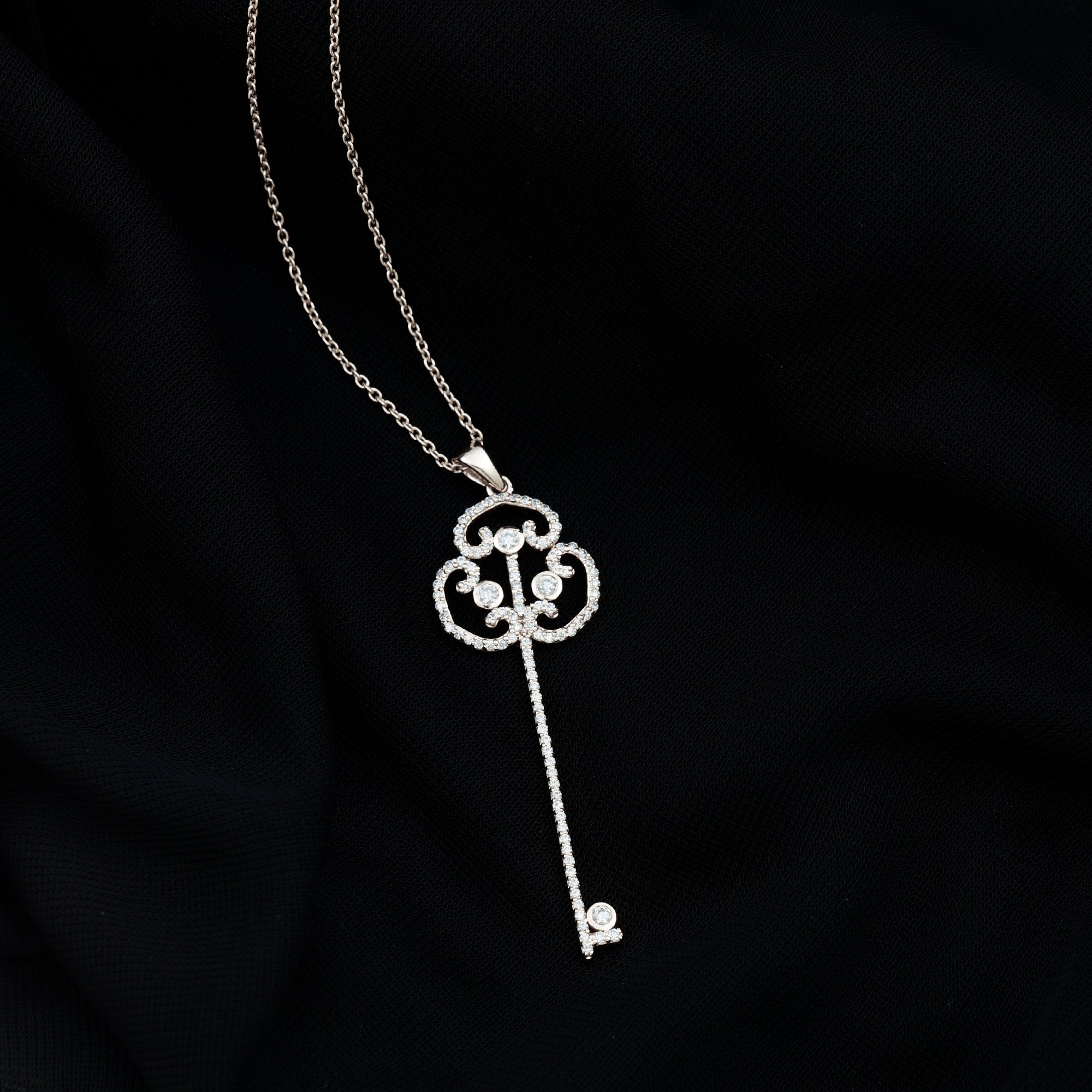 Certified Lab Created Diamond Vintage Style Key Necklace