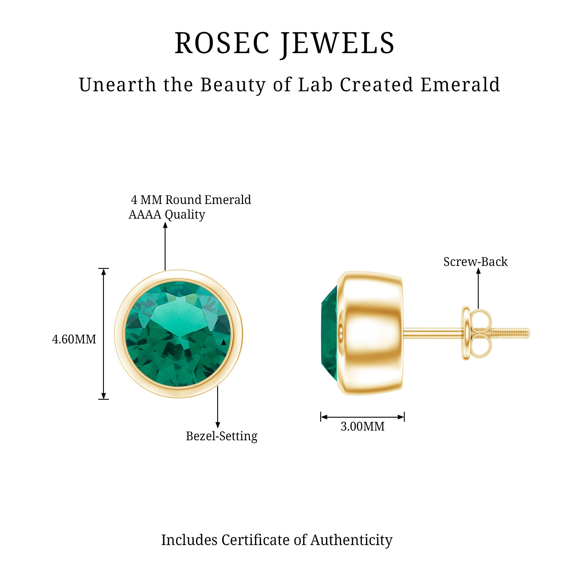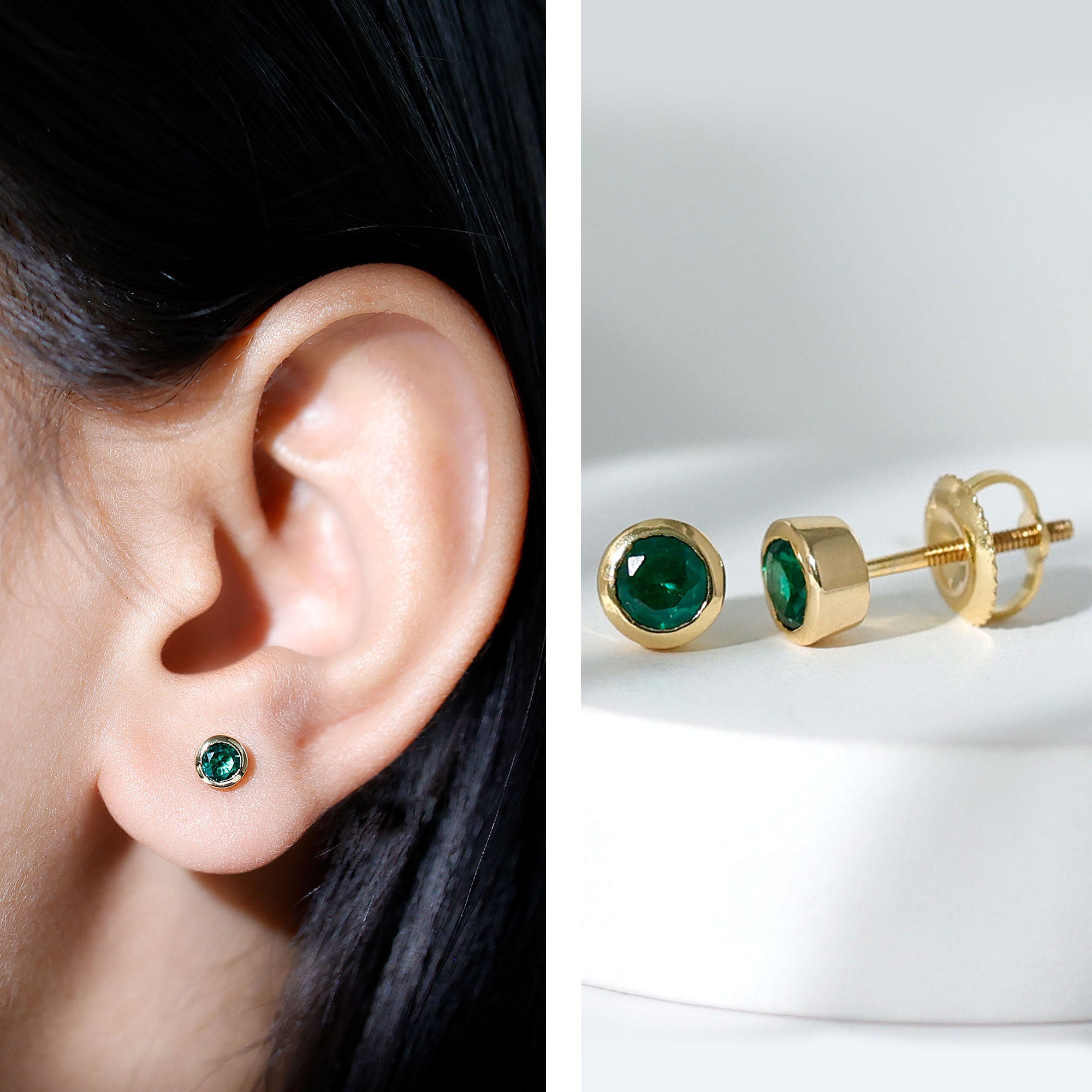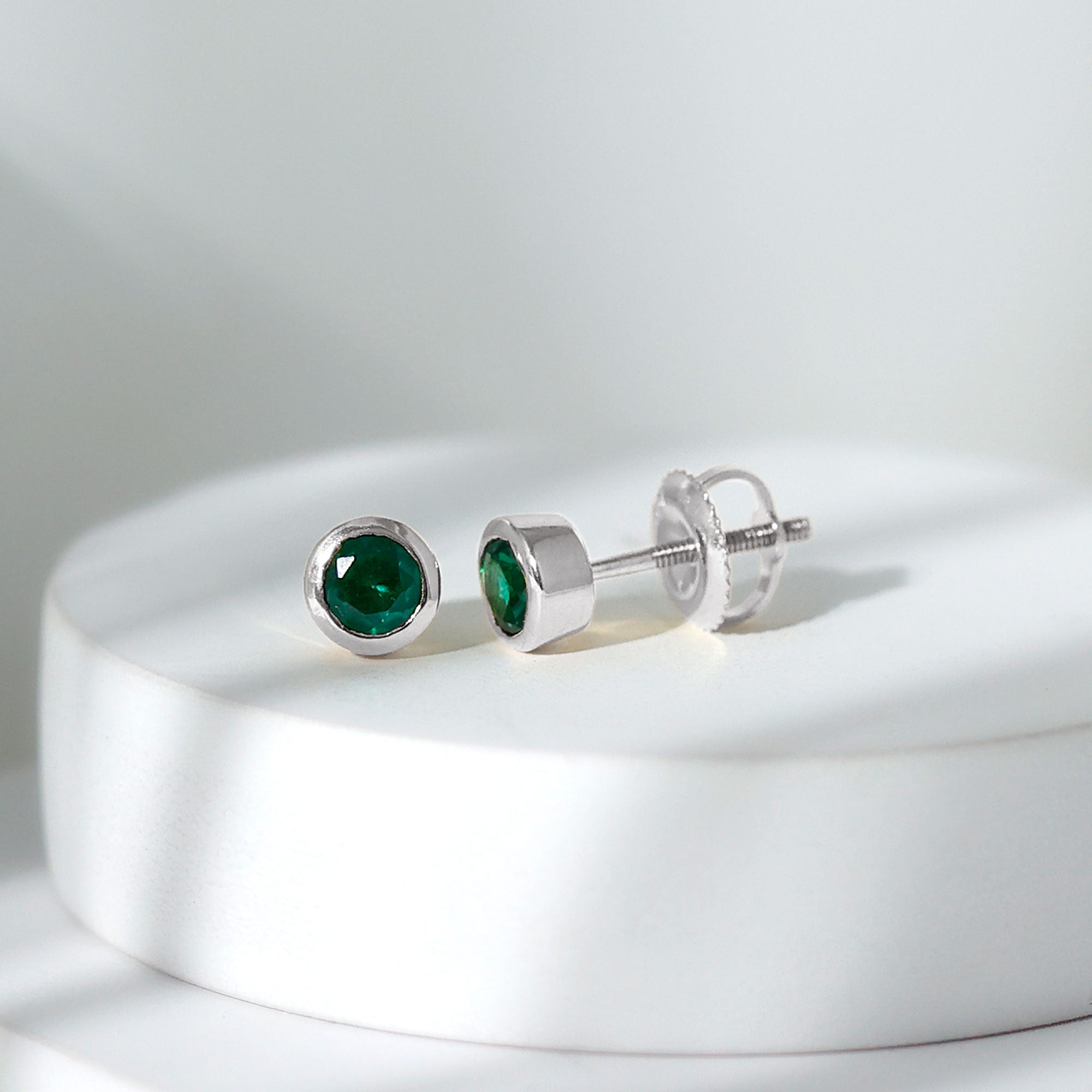 Everyday style feels more special when you have a pair of earrings that fit any moment with ease, and the Emerald Stud Earrings are crafted with that purpose. Each earring holds a 4 MM round lab created emerald, placed neatly in bezel setting. The setting also keeps the stone protected, making the studs perfect for regular wear without any worry. Their minimal design brings a soft elegance that suits simple outfits just as well as dressy ones. The Solitaire Stud Earrings feel light on the ears, and the screw back closures offer a firm fit so you can wear them comfortably all day. Made with AAAA quality lab created emeralds, the studs shine beautifully while staying durable and eco-friendly. If you enjoy dainty and simple designs, these Minimalist Emerald Earrings are sure to become a favorite. They carry a touch of charm, making them easy to pair with other jewelry or wear on their own. Presented in a lovely jewelry box, the Bezel Set Earrings make a sweet and thoughtful gift for someone close to your heart.