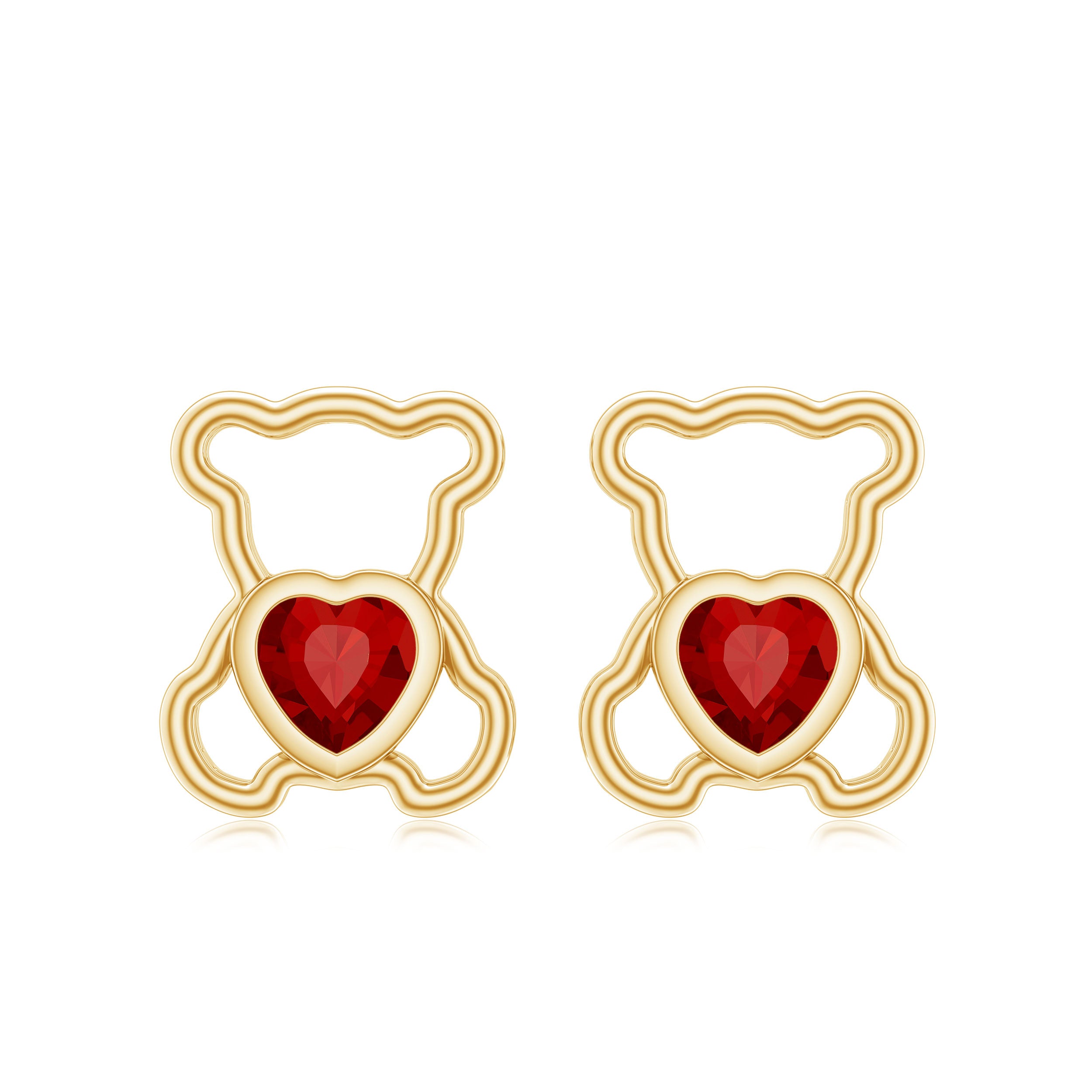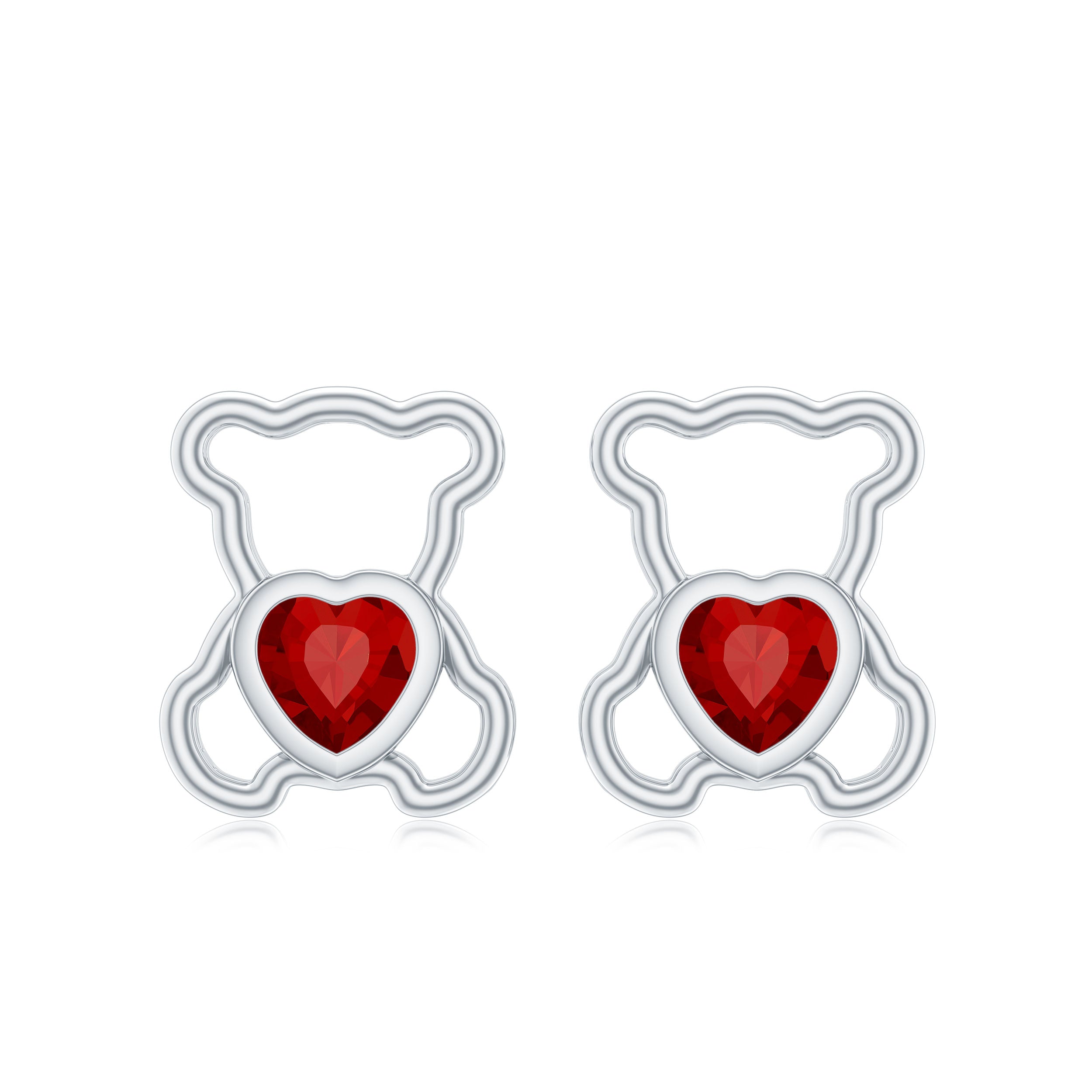 Sweet, playful, and full of charm, these Teddy Bear Earrings bring together whimsy and elegance in one delightful design. The design features a sparkling 4 MM heart shaped lab created ruby of AAAA quality, securely held within a teddy bear shaped frame crafted in shining metal. This adorable outline adds a touch of personality and fun, making these Ruby Stud Earrings a perfect mix of cute and classy. Designed for comfort and everyday wear, these Heart Shaped Earrings feature screw back closures to ensure a snug and secure fit. Lightweight yet eye-catching, they are perfect for adding a touch of playful sophistication to any outfit, whether it is a casual day out or a special celebration. Ideal as a thoughtful gift for a loved one, these Cute Stud Earrings are a beautiful way to express affection and joy. Their unique teddy bear shape and radiant bezel set ruby center make them a symbol of love, innocence, and happiness. Perfect for all ages, these Lab Grown Ruby Earrings are sure to bring a smile and a little sparkle wherever they go.