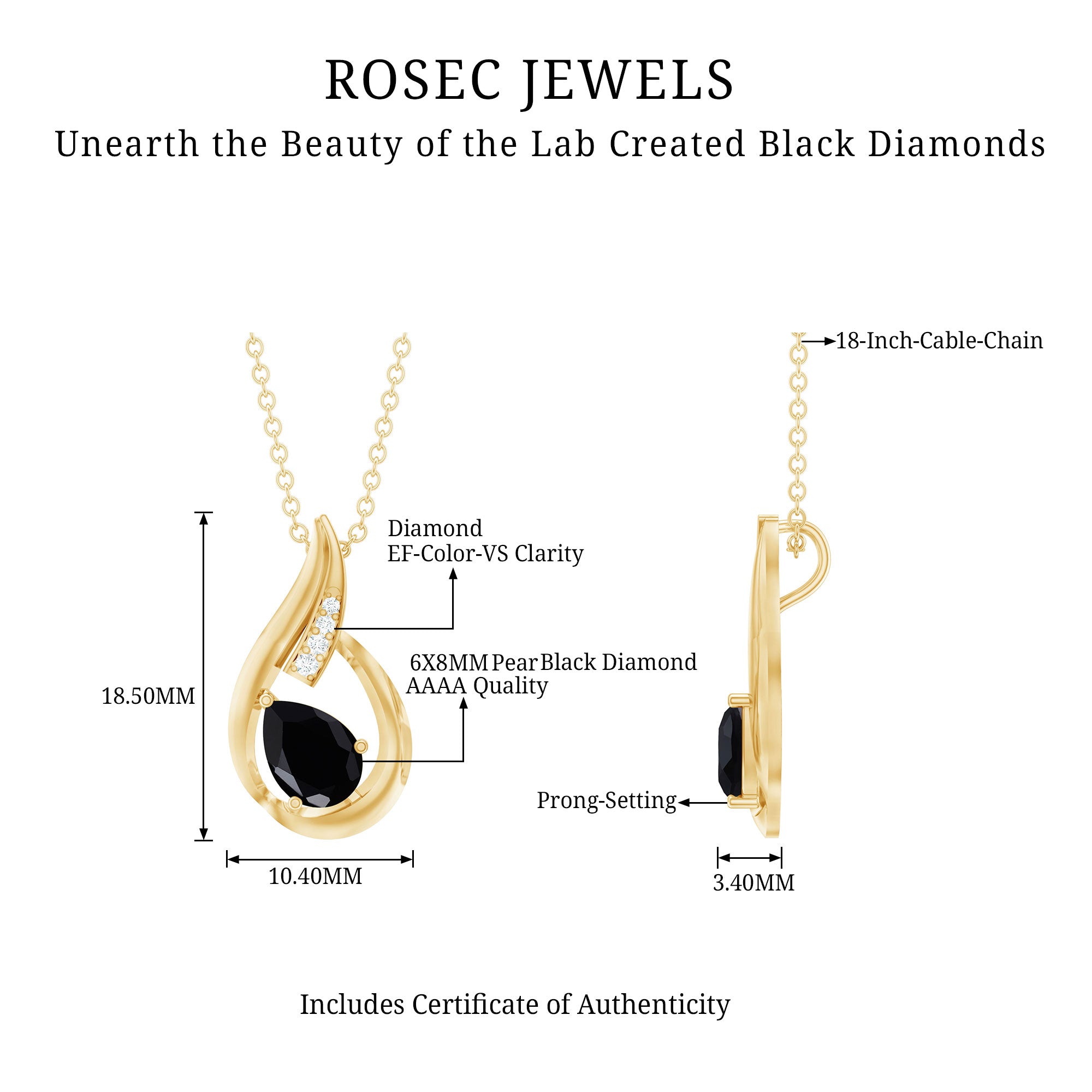 Adorned with understated elegance, this lab grown Black and White Diamond Pendant captivates with its timeless allure. The slantly placed 6X8 MM Pear Shape Black Diamond set in Prong Setting, accentuated by round shaped White Diamond gemstones. This Black Diamond Pendant Necklace (Synthetic) embodies sophistication and modernity, making it a versatile accessory for any occasion. Elevate your style effortlessly with this exquisite Teardrop Pendant from Rosec Jewels.