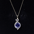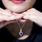 Certified Lab Grown Blue Sapphire Pendant Necklace With Diamonds