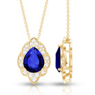 Our Nature Inspired Lab Created Blue Sapphire Pendant Necklace, is not merely jewelry; its an eloquent expression of your affection. The meticulous craftsmanship and thoughtful design make it a symbol of enduring love and admiration. The design features 8x10 mm pear shaped sapphire (lab created) placed in the center adorned with Round shaped Diamonds (lab grown) and beads. This pendant features the sparkle of Aaa Quality Sapphire and Ef-Vs Quality Diamonds. When the deep intertwined of sapphires with diamonds radiance then magic happens. Present her with this Sapphire Diamond Pendant, and witness how its elegance enhances her every moment.