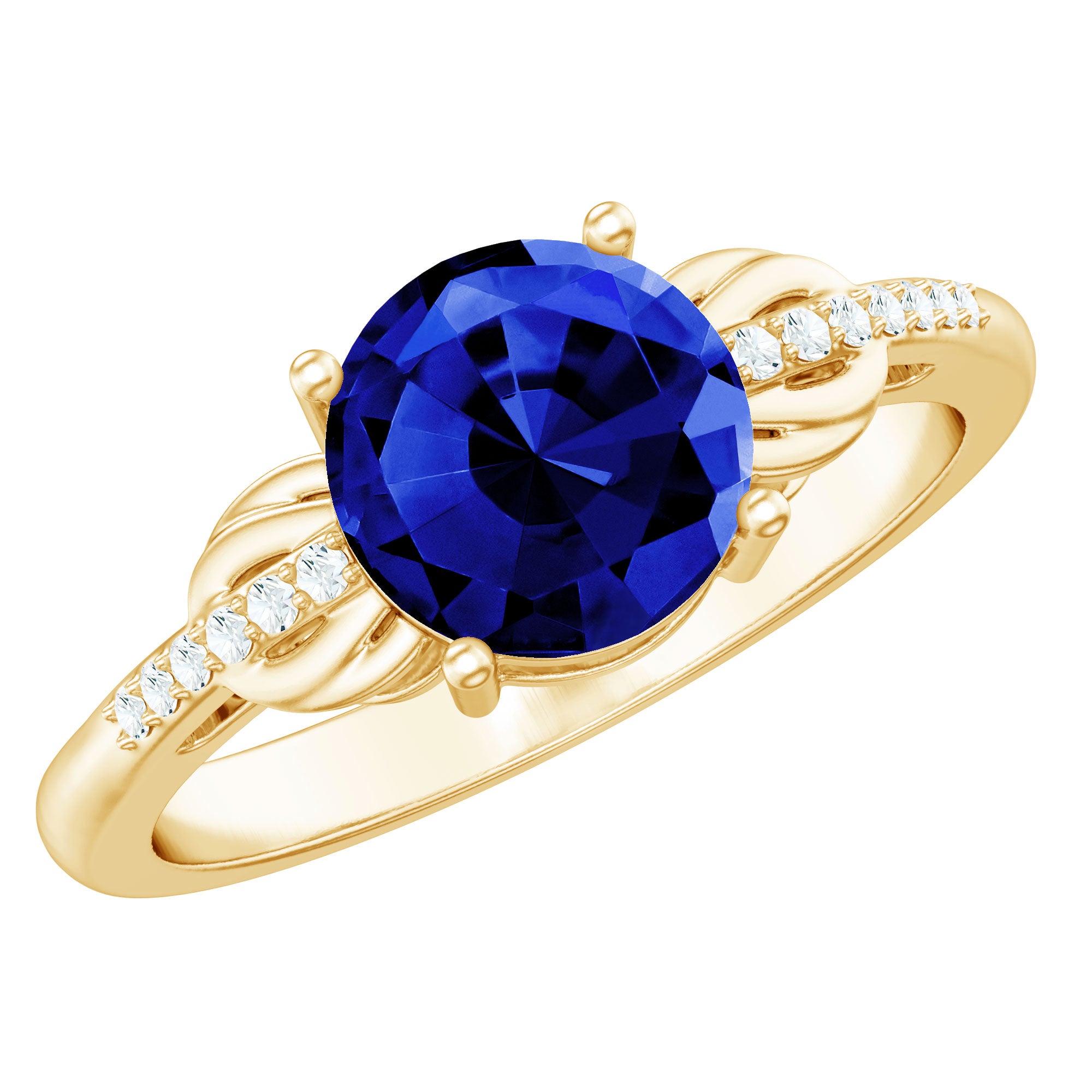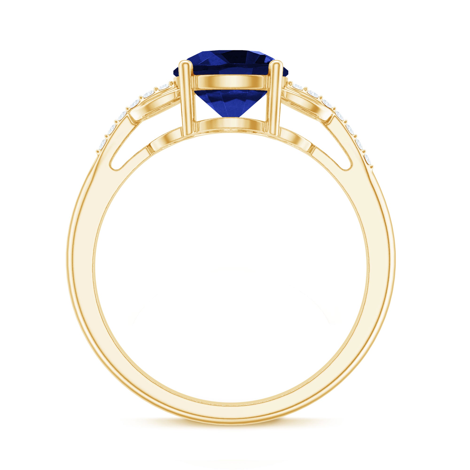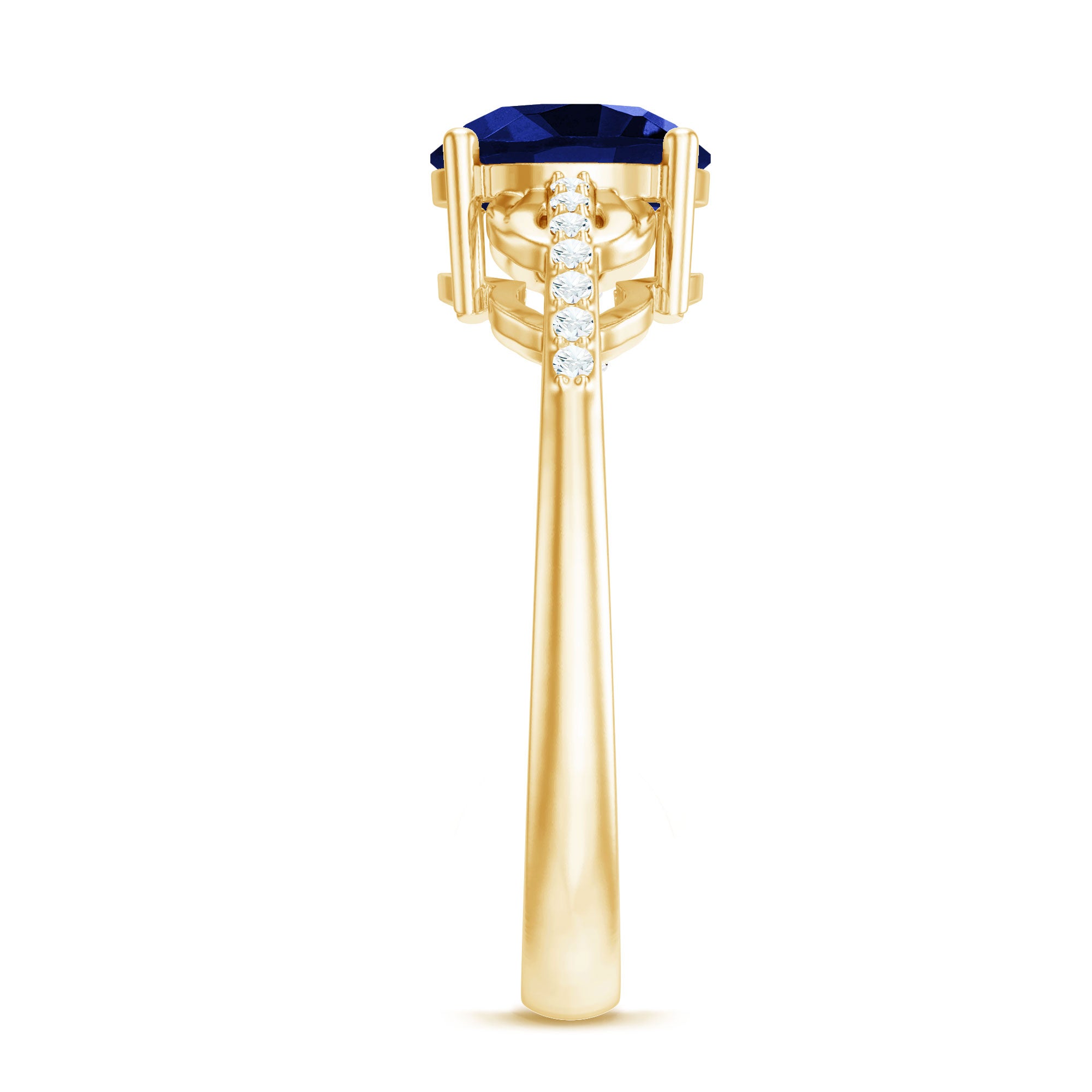 Certified Lab Grown Blue Sapphire Solitaire Ring With Diamond