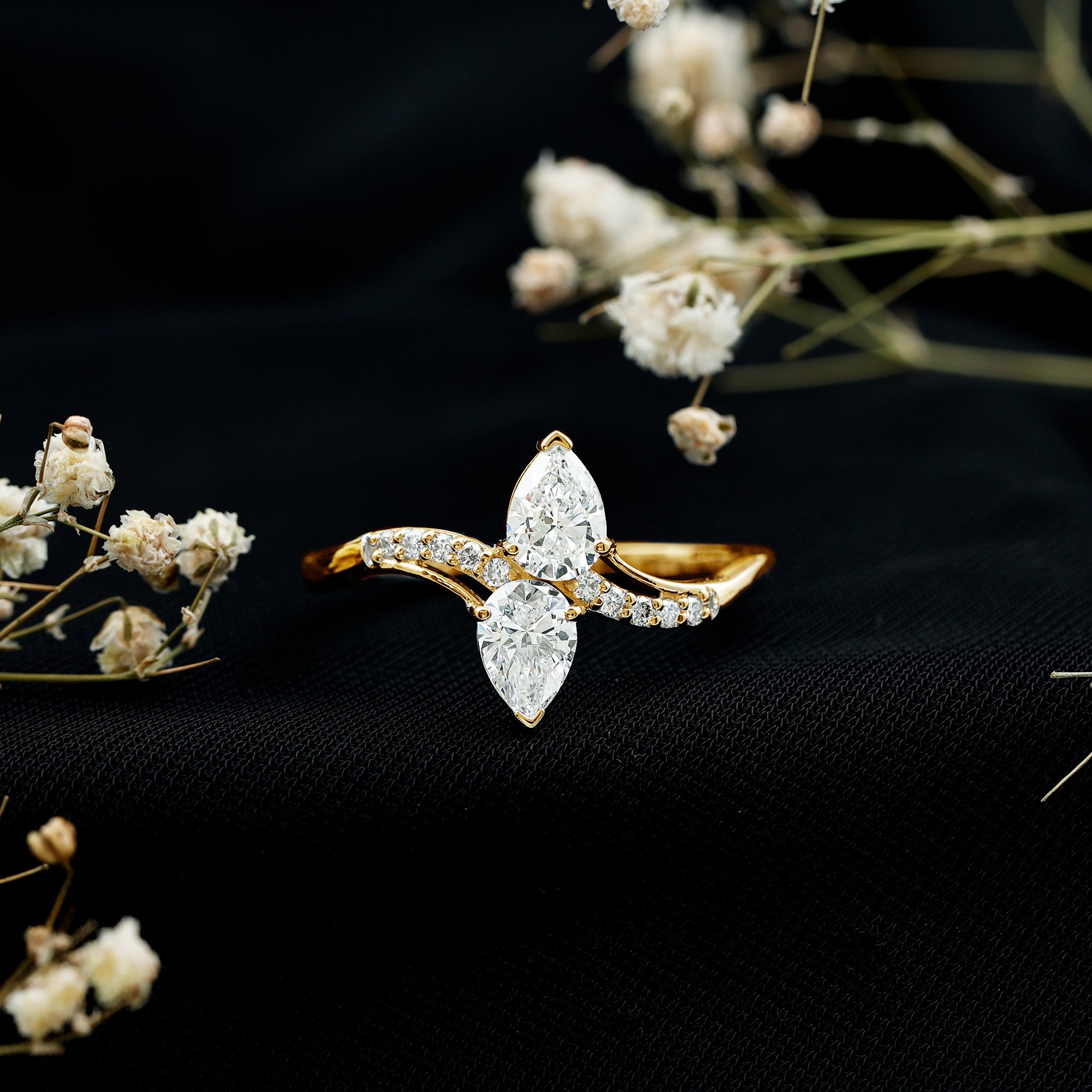 Rosec Jewels presents this stunning forever Two-gether Diamond Engagement Ring. It is embellished with 5X7 MM pear shaped two diamonds set in secure prong setting with a row of sparkling round stones over the curved band. This Two Stone Diamond Ring is handcrafted with ethically sourced, eco-friendly lab created gemstones, its a thoughtful and budget-friendly choice for an Alternative Engagement Ring or any meaningful occasion. Let this Toi Et Moi Ring be a shining reminder of the love you share and the memories yet to be made. Crafted for you, our each jewelry piece is designed with attention to detail, comfort, quality, and longevity.