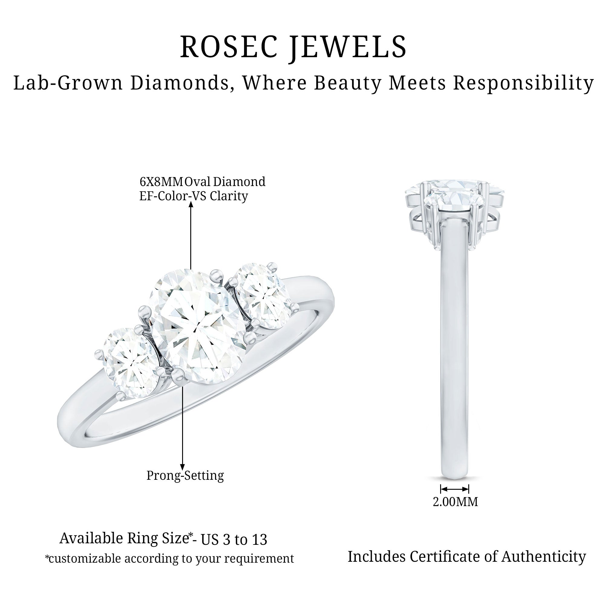 The Certified Lab Grown Diamond 3 Stone Engagement Ring is designed for those who value both symbolism and refined design. The three-stone arrangement represents a balanced composition, offering visual harmony while carrying a deeper significance often associated with past, present, and future.