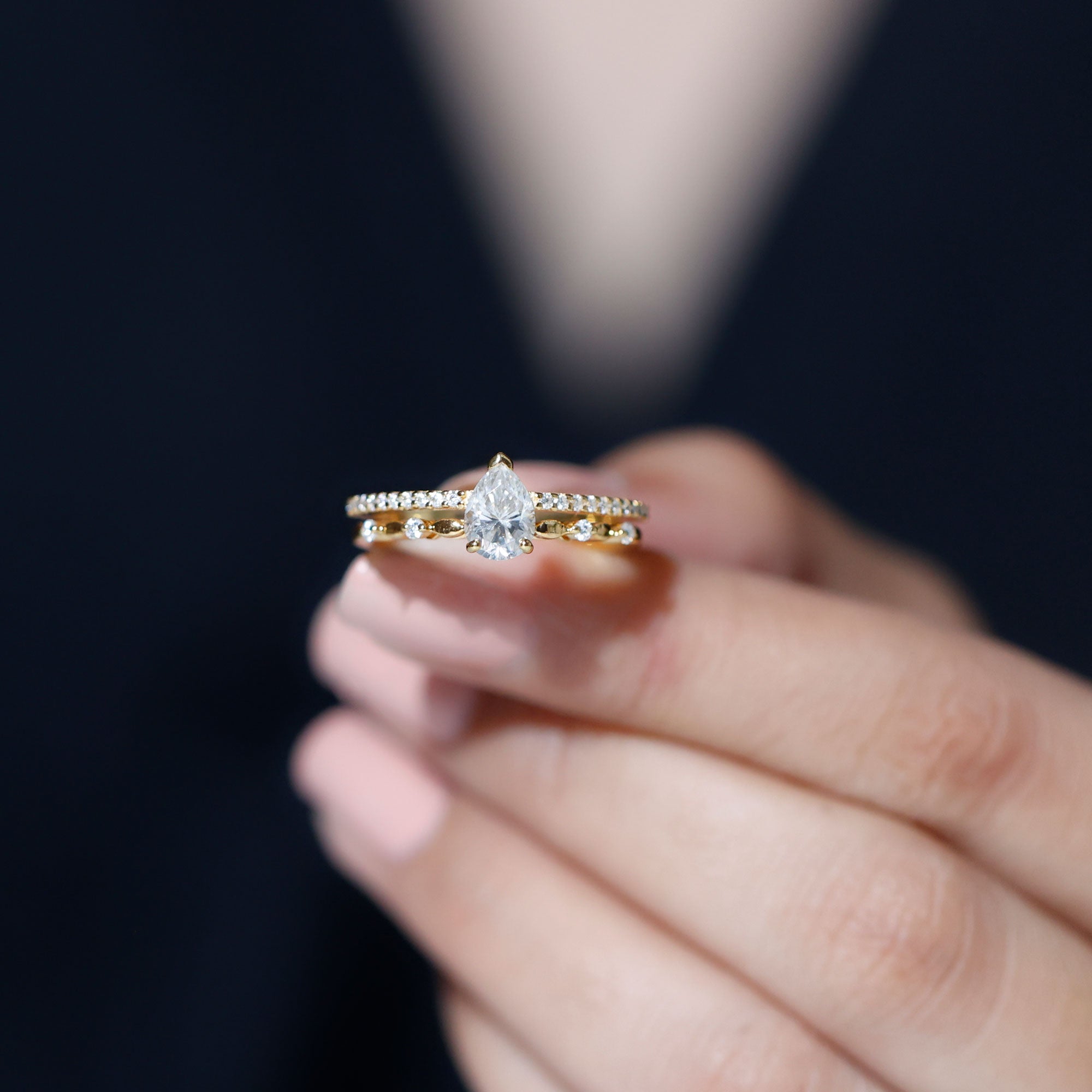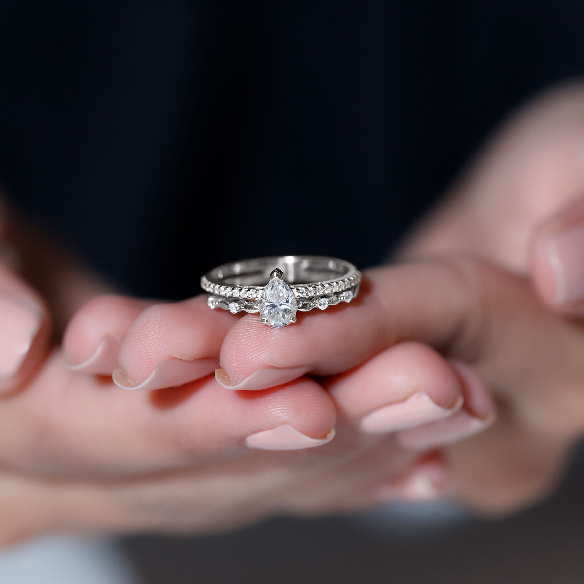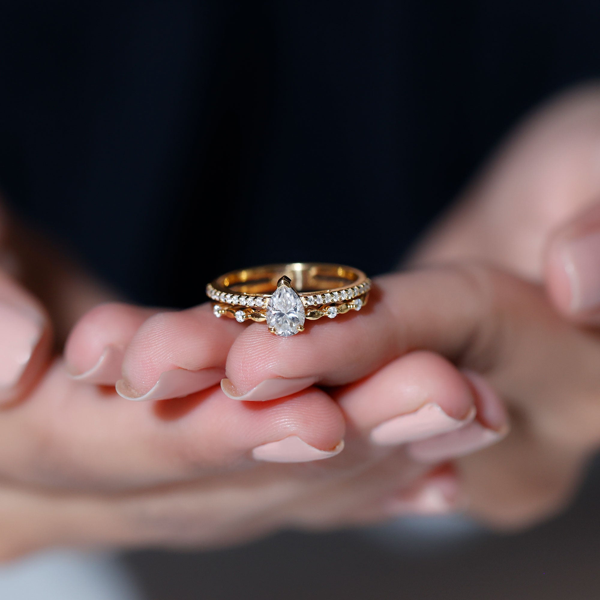 Certified Lab Grown Diamond 5X7 MM Teardrop Double Band Engagement Ring