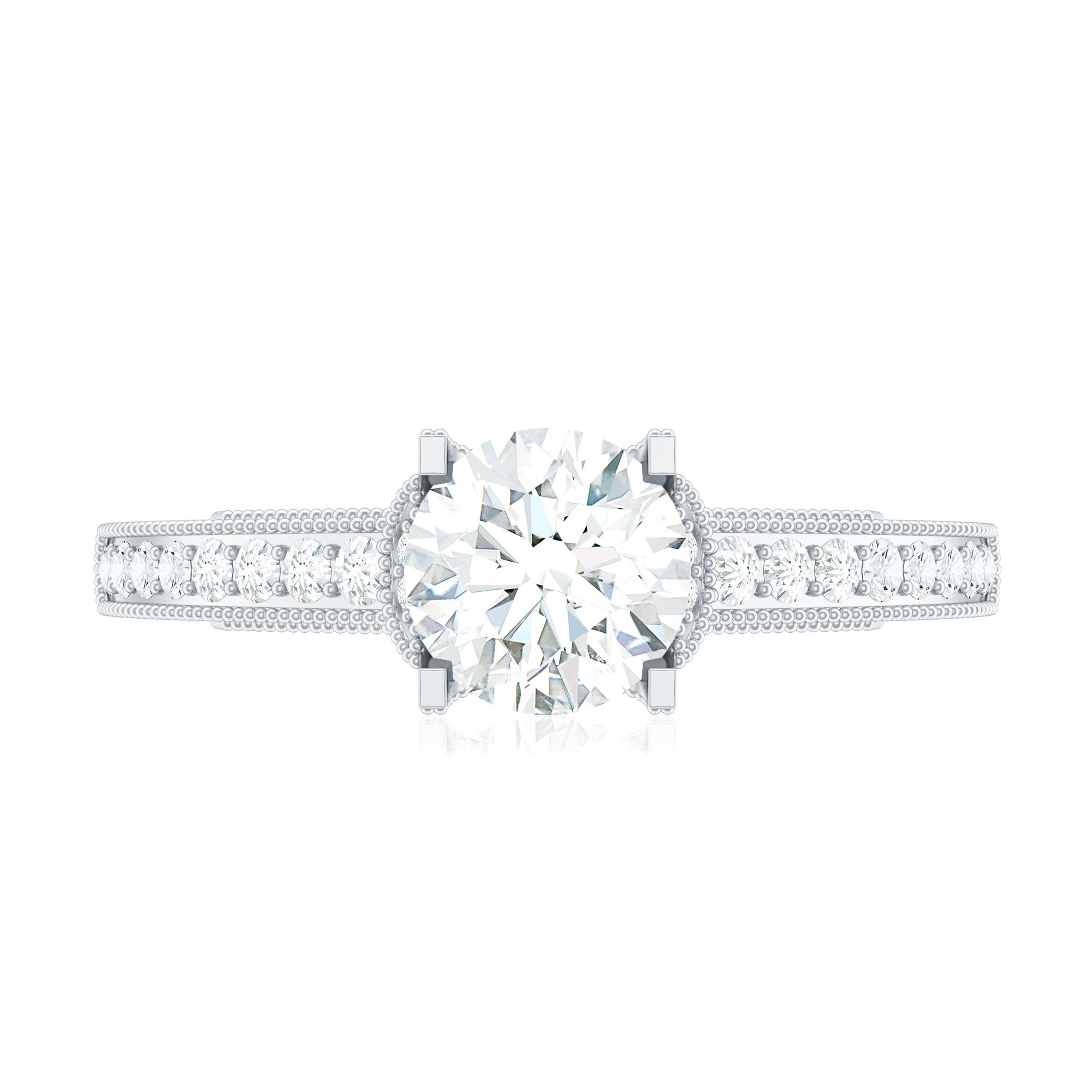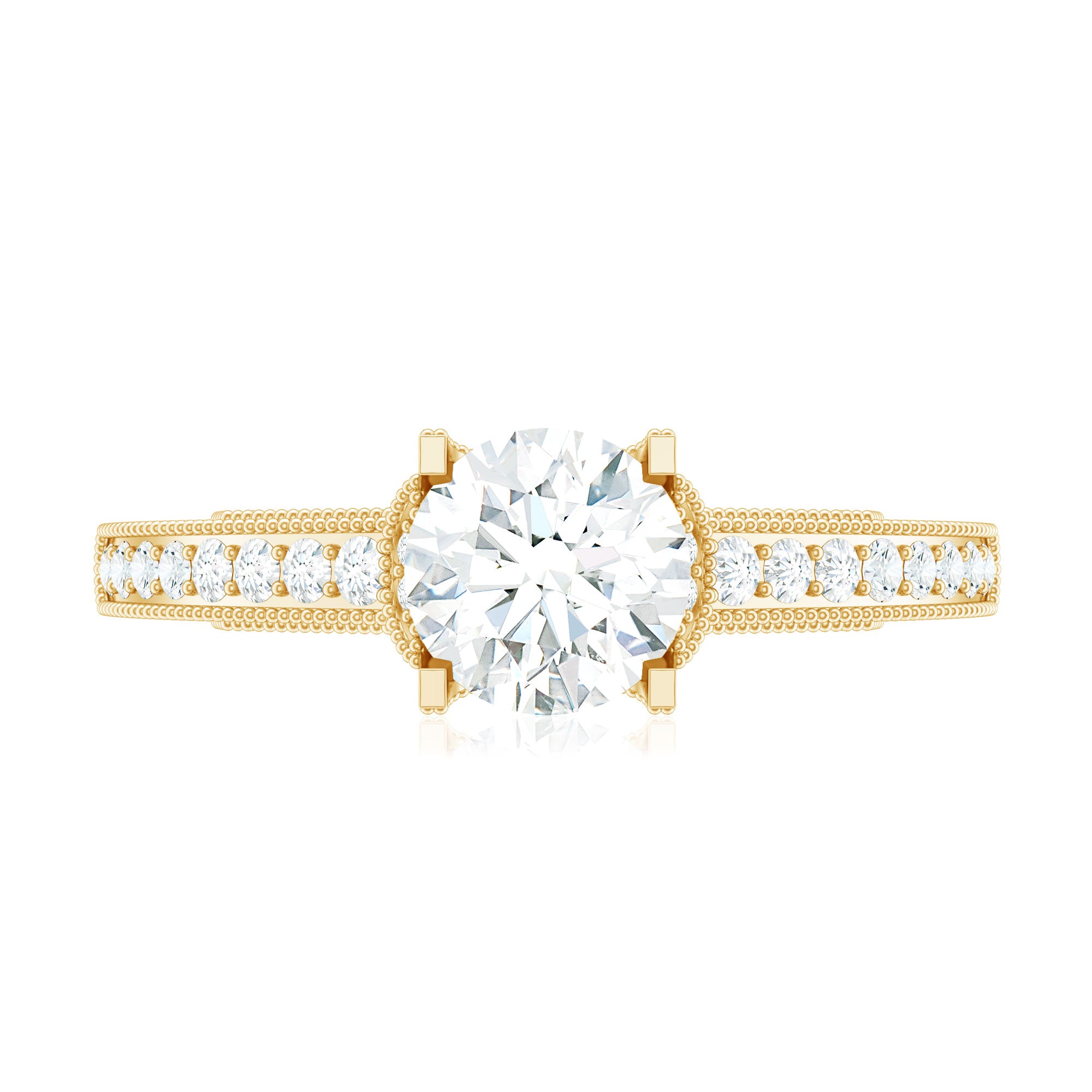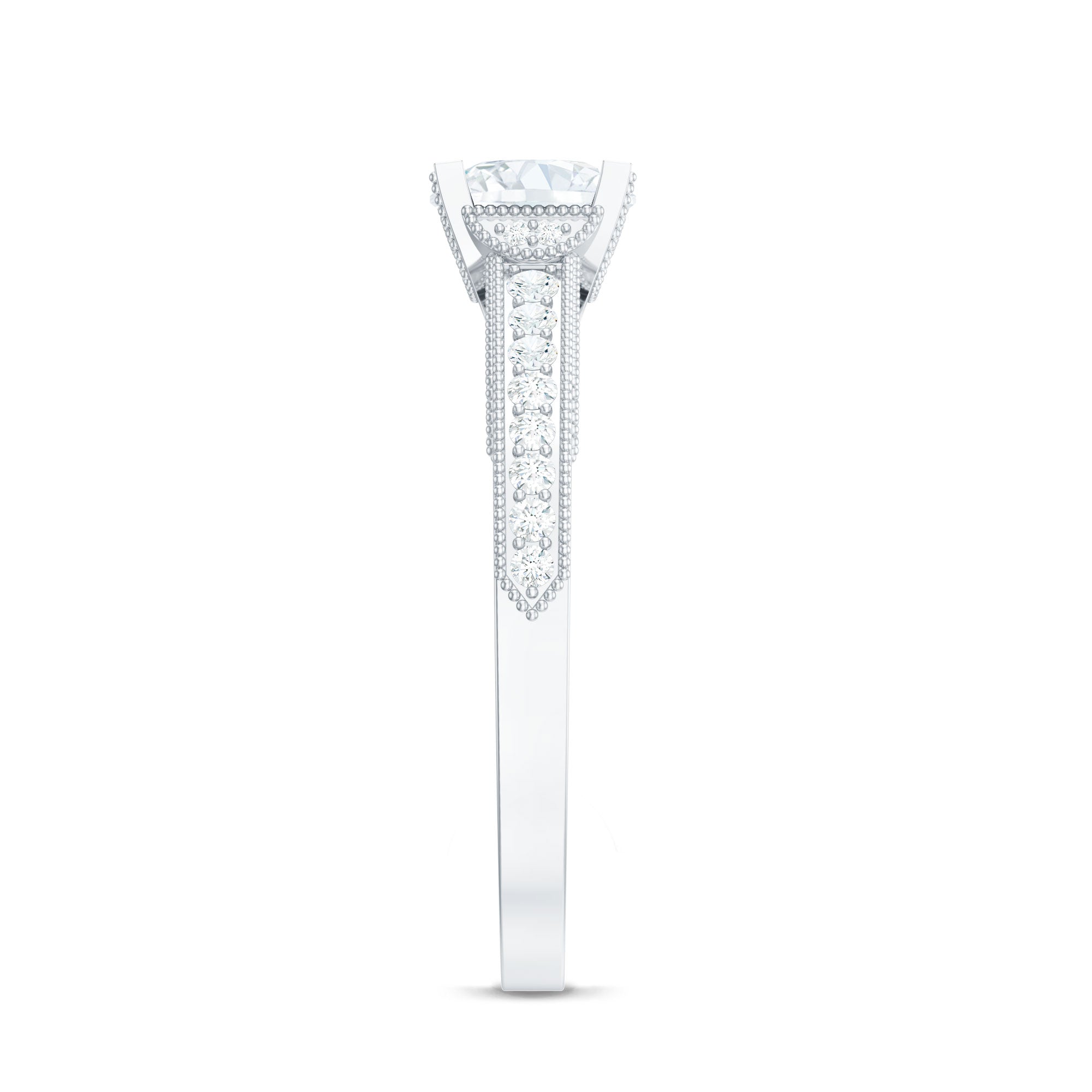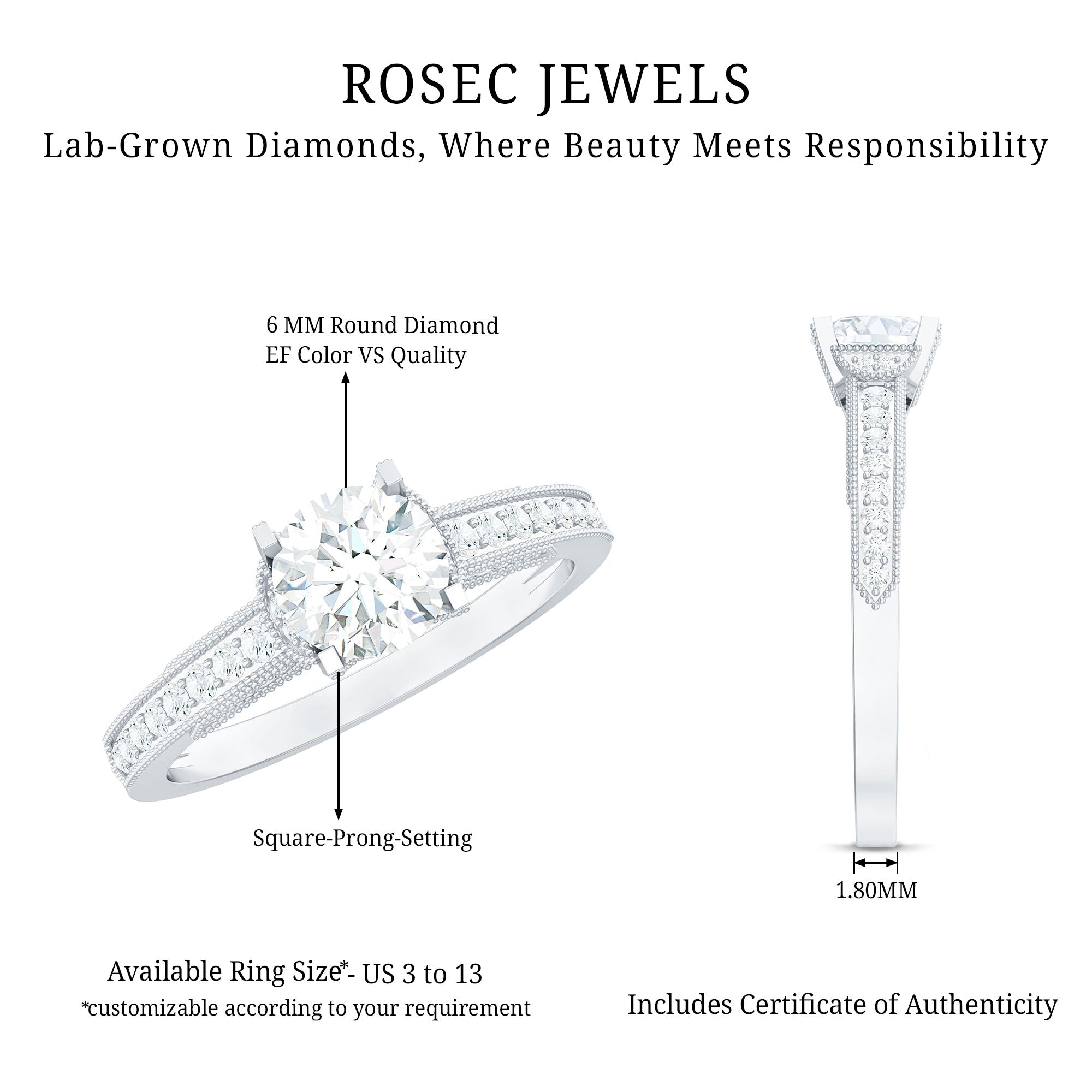 As a radiant celebration of love and commitment, this Lab Grown Diamond Ring has a classic shape and unmatched sparkle that discovers timeless elegance. This stunning piece features with 6 MM Round Shaped Lab Grown Diamond in Prong Setting along with the Side Stones and beaded details, creating a breathtaking display that will leave you spellbound. This Diamond Engagement Ring has a subtle, sophisticated appeal which is quintessential, and has a glamorous style that lets the focus solely on the design. Say yes to forever with this Solitaire Engagement Ring that encapsulates your heart as your love deserves more than extraordinary.