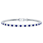 Wrap the wrist in the aura of light with this Lab Grown Diamond Tennis Bracelet, which is a stunning choice to complement your outfit. Simple and versatile, this Wedding Bracelet For Bride has a sophisticated design with a bold burst of color. This bracelet is beautifully adorned with Round Shape Lab Grown Diamond and Lab Blue Sapphire in Prong Setting, with sparkle, making a lasting impression. This Lab Diamond Sapphire Bracelet adds a touch of elegance with the epitome of style. Its attention grabbing design is perfect to suit every occasion and personal taste. Add a touch of intrigue and sophistication with this Bridal Bracelet that has impeccable flair that can be stacked with other bracelet as well or worn alone for a minimalistic look. Exuding grace and sophistication, it creates a classic and timeless look. The EF-VS Quality Lab Grown Diamond and AAAA Quality Lab Blue Sapphire, with a brilliant color and clarity, has the elegance where simplicity speaks volume.