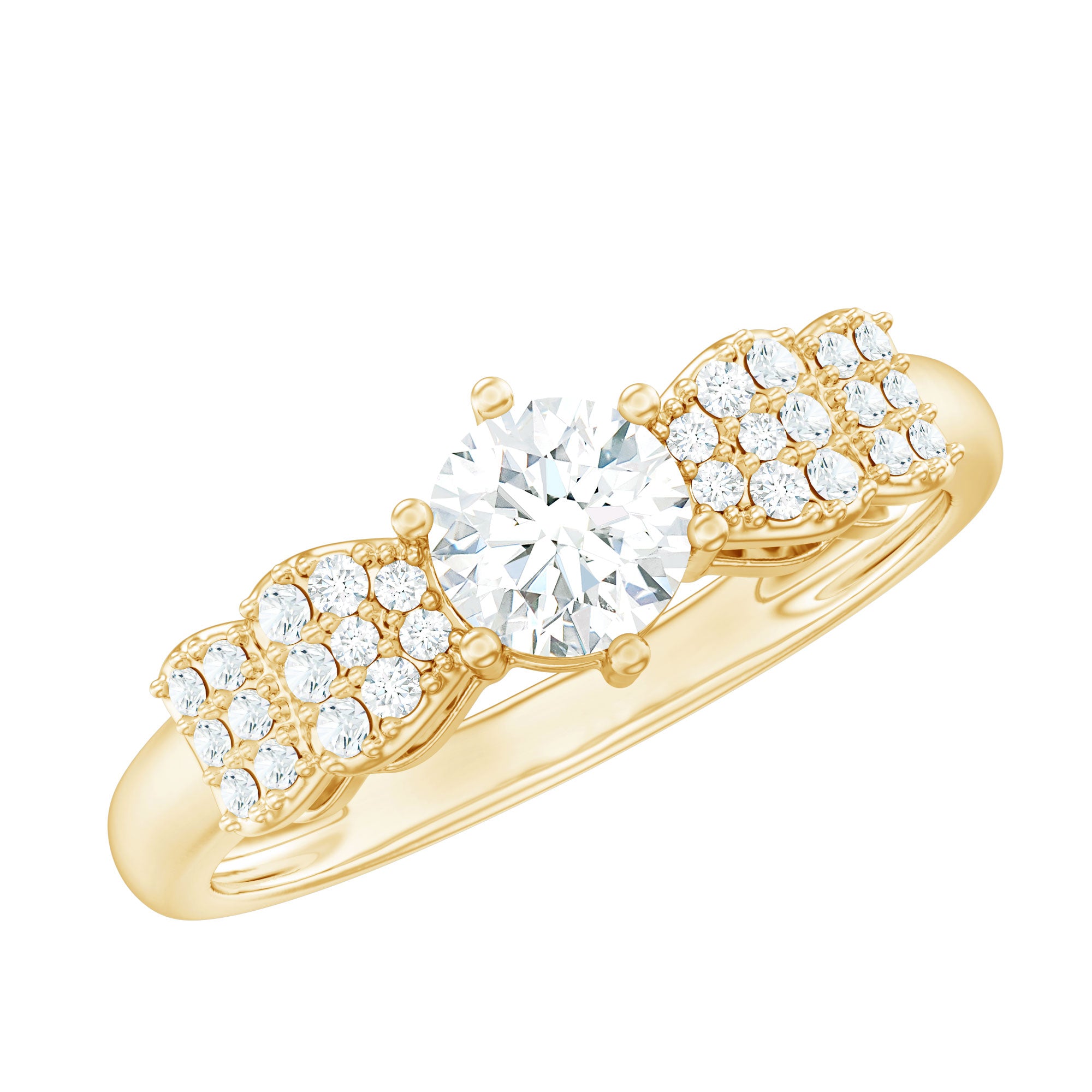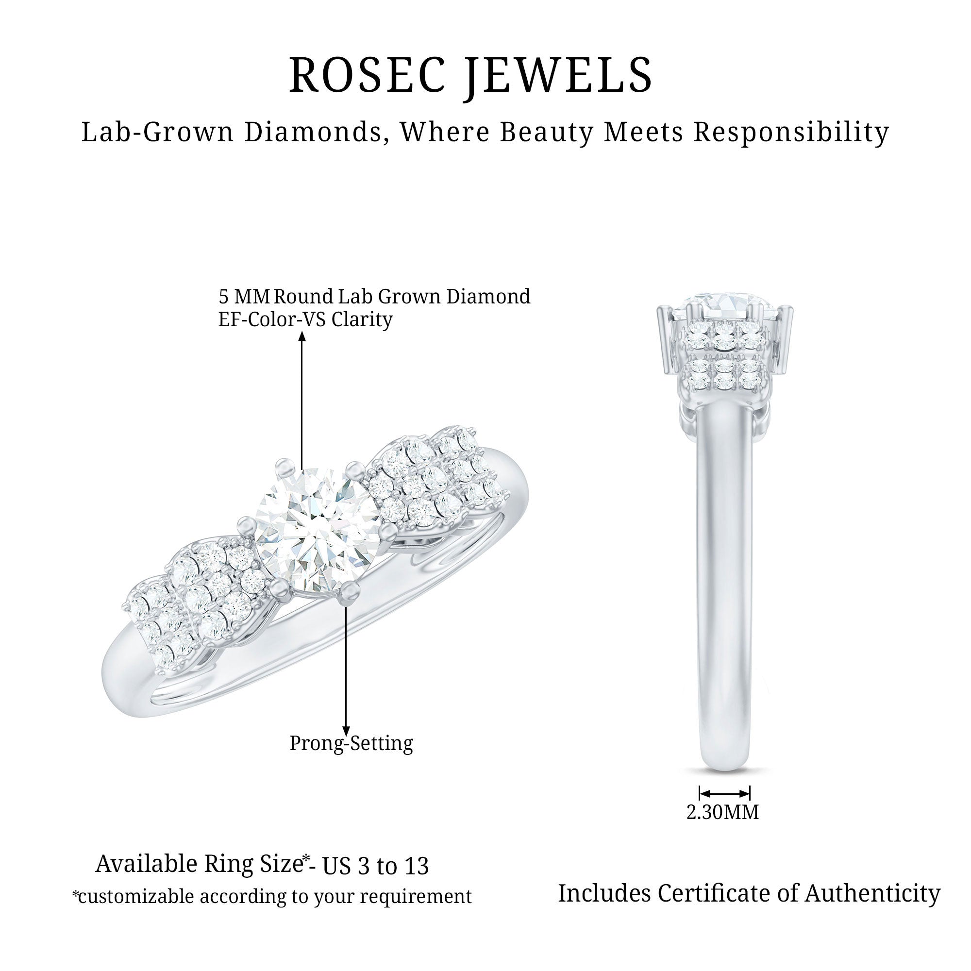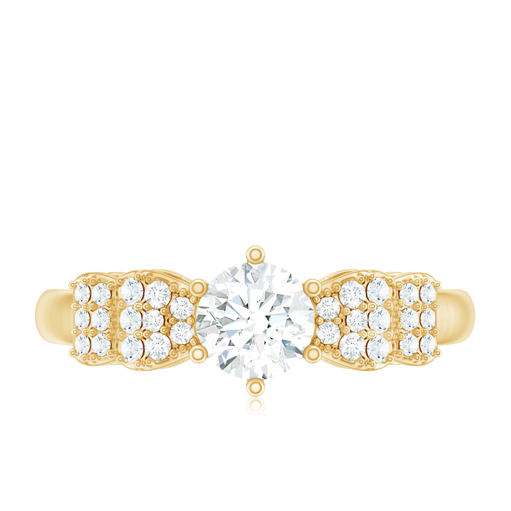 Steal her heart with the breathtaking details of this Solitaire Promise Ring, showcasing a gorgeous 5 MM round diamond of EF-VS quality as the centerpiece in a secure prong setting. Flanking the main stone, sparkling diamonds are elegantly arranged in a lovely bow shape. This Lab Grown Diamond Ring is definitely the perfect pick for her, a piece shell cherish forever. Crafted with care by Rosec Jewels, this Promise Engagement Ring combines contemporary design with timeless elegance, making it a unique and ethically sourced token of your enduring love.